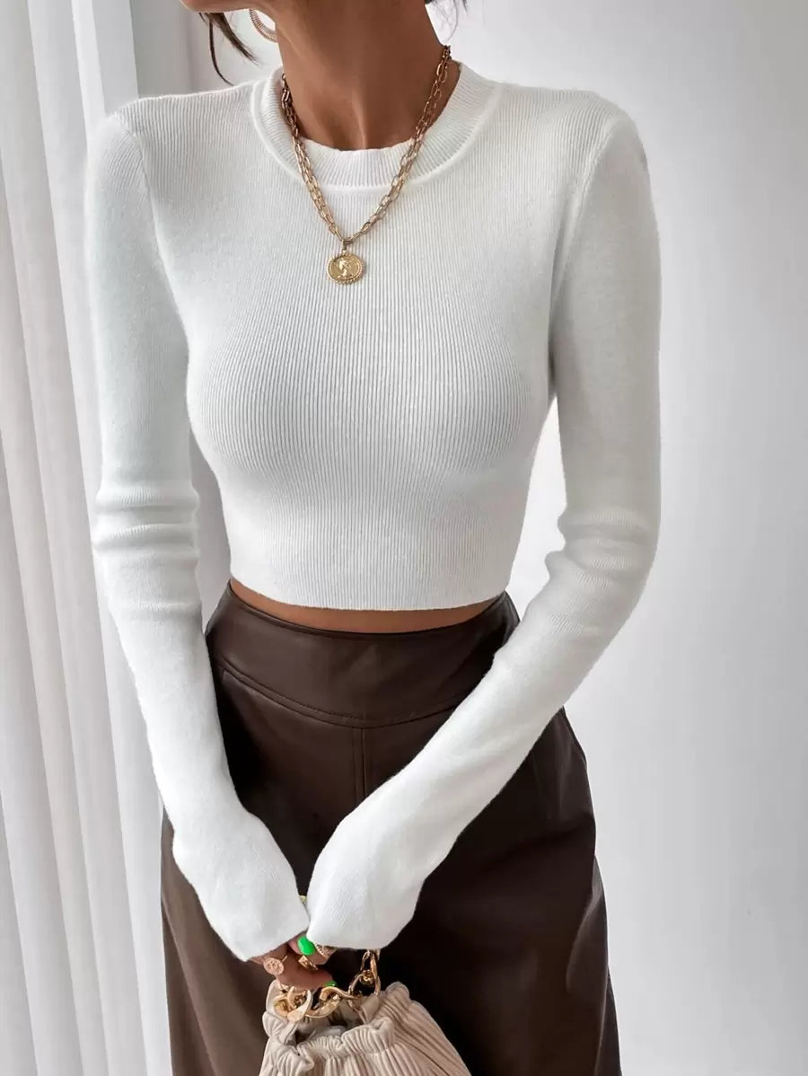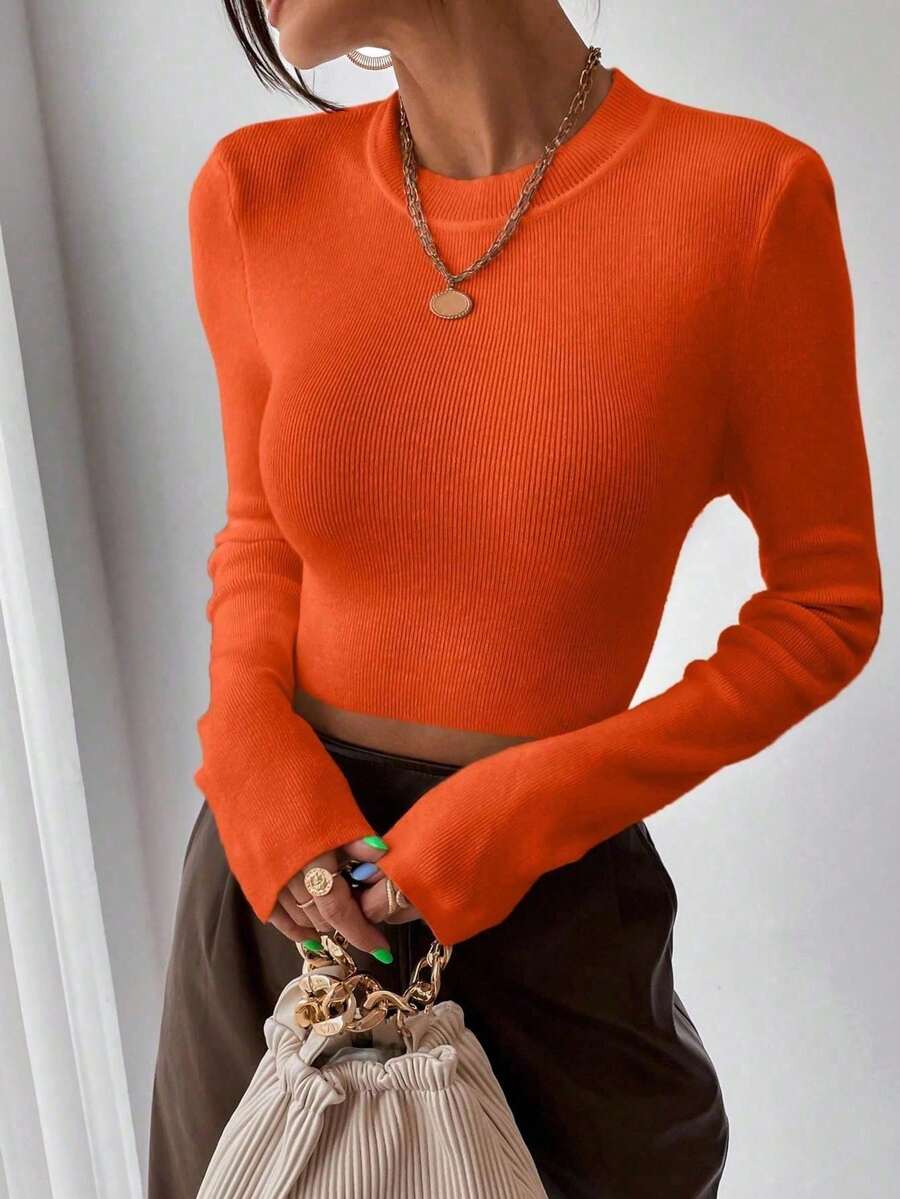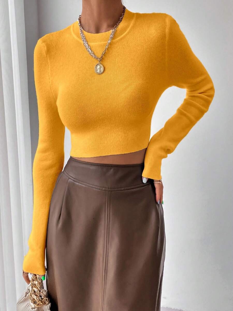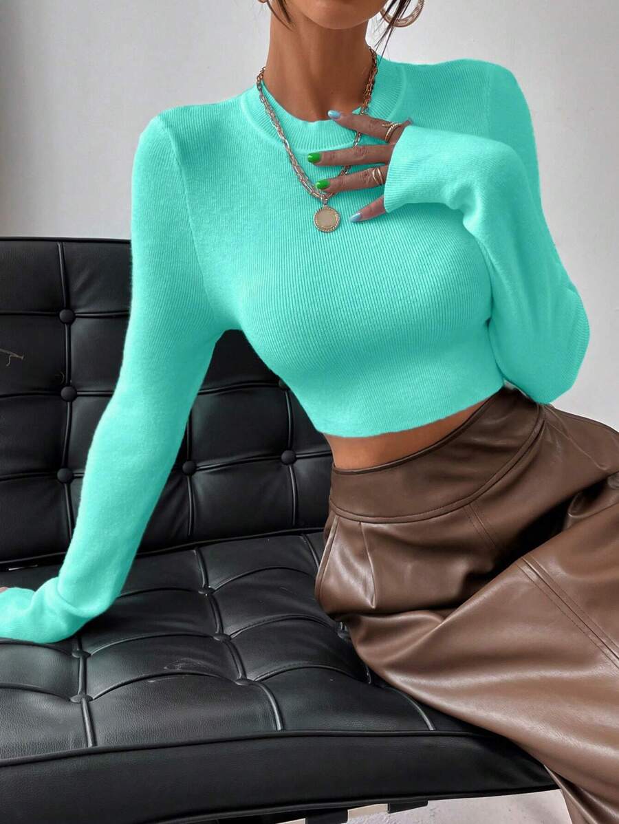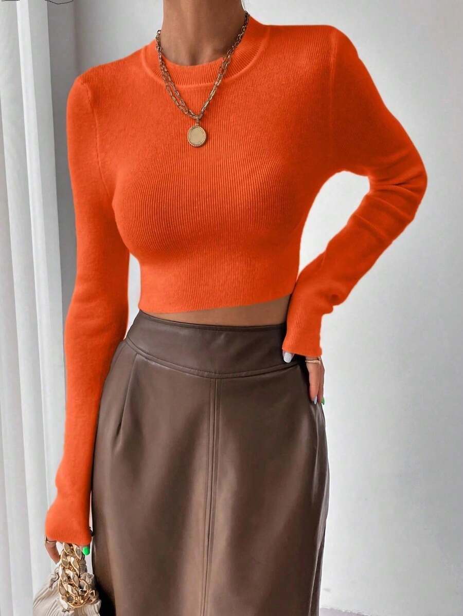 Lumivelle Women's Solid Color Crew Neck Long Sleeve Casual Pullover Sweater Knit Pullover Fall Winter Outfit