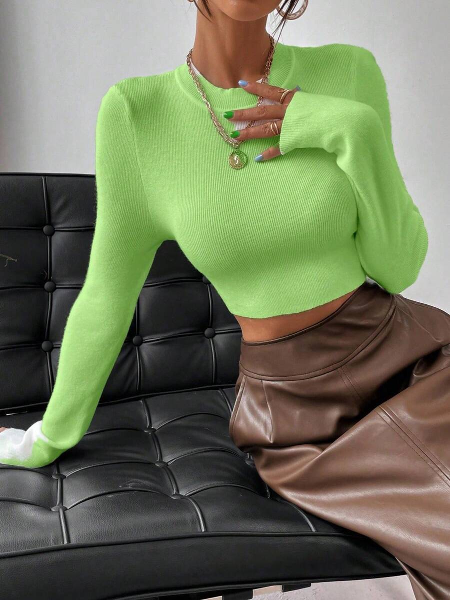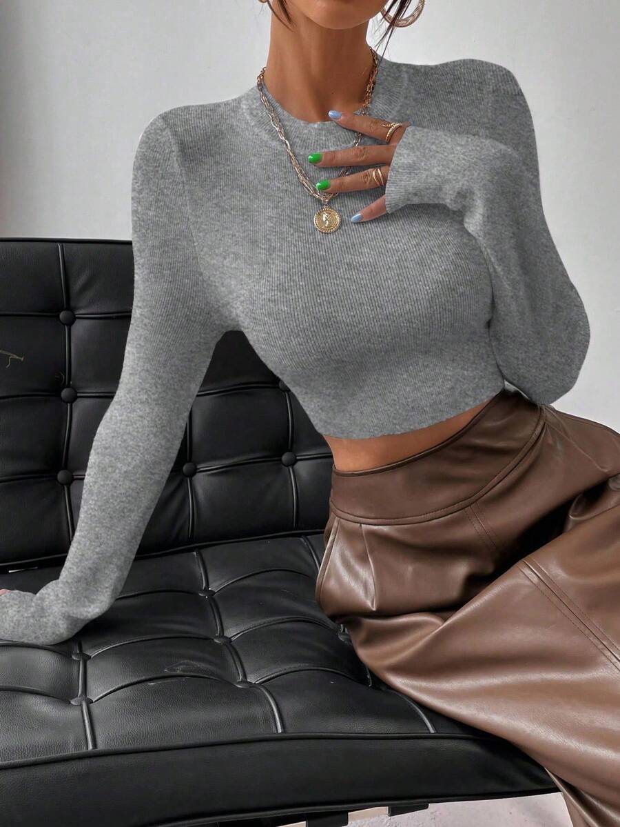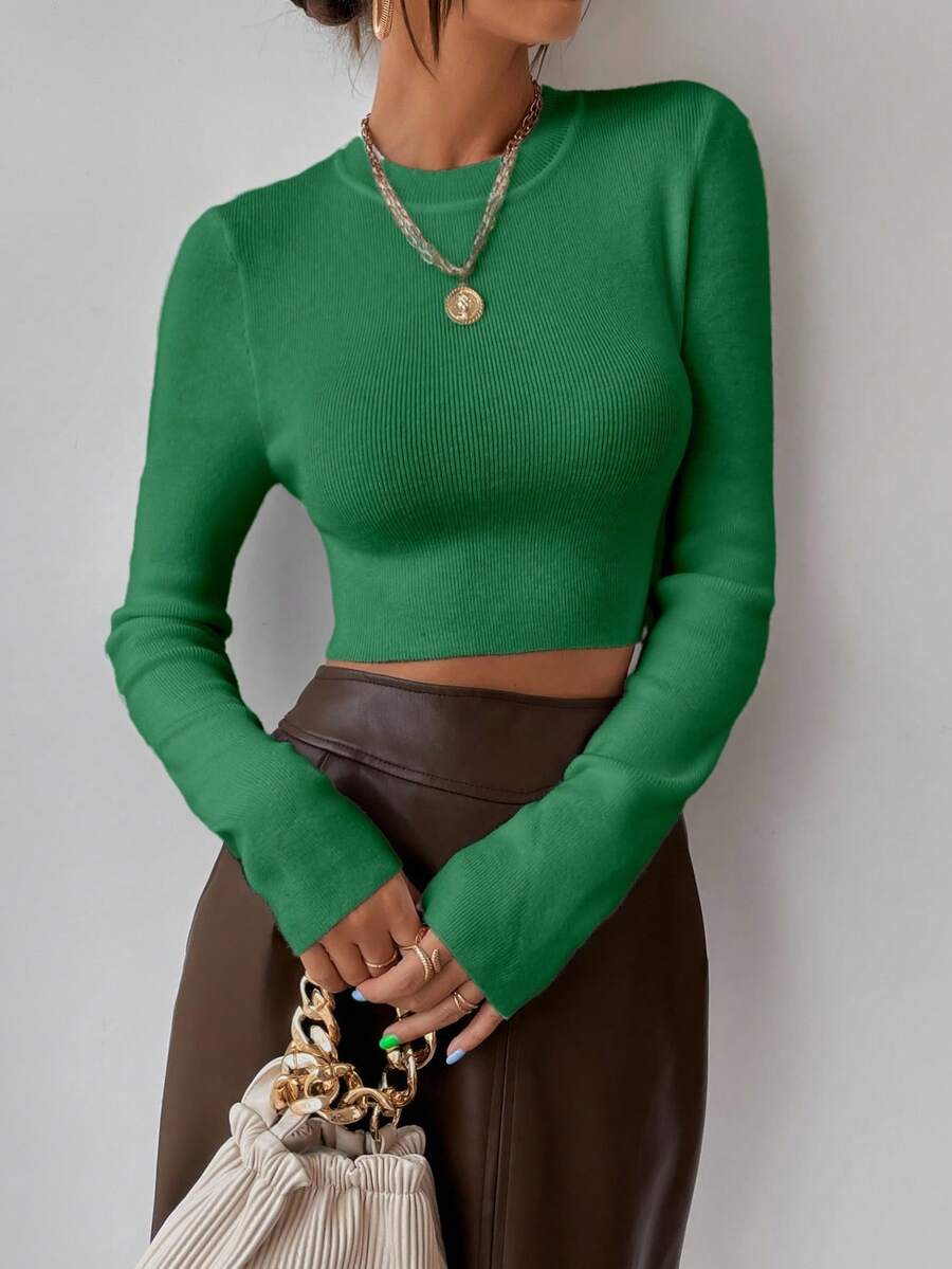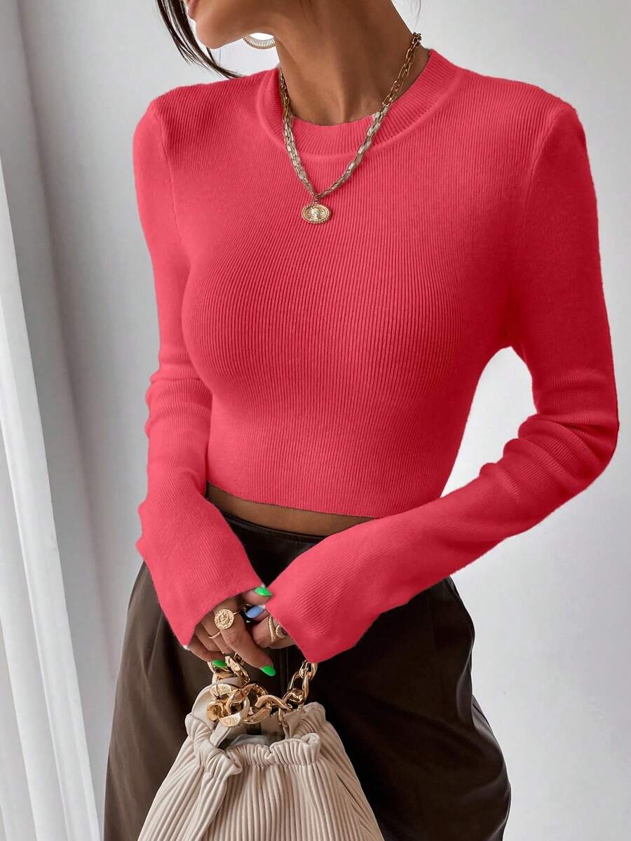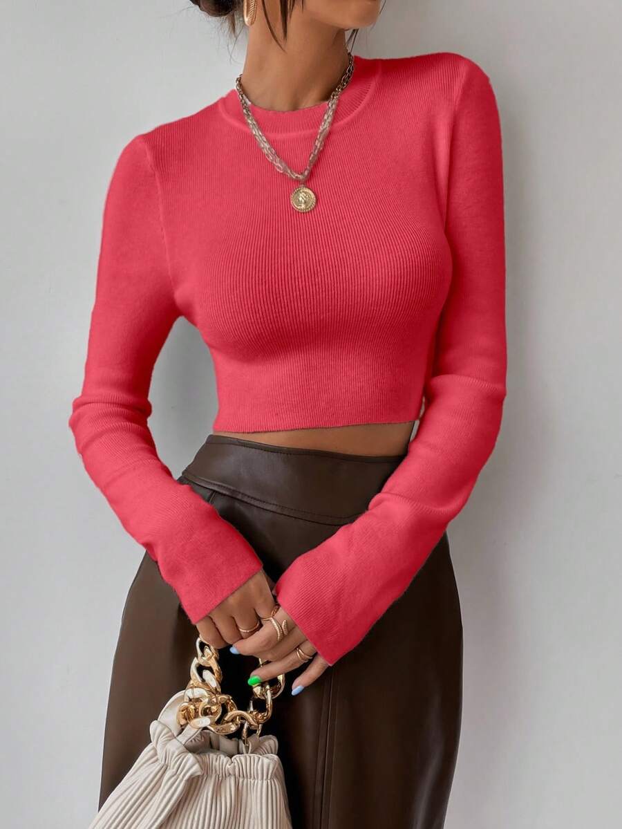 Lumivelle Women's Solid Color Crew Neck Long Sleeve Casual Pullover Sweater Knit Pullover Fall Winter Outfit