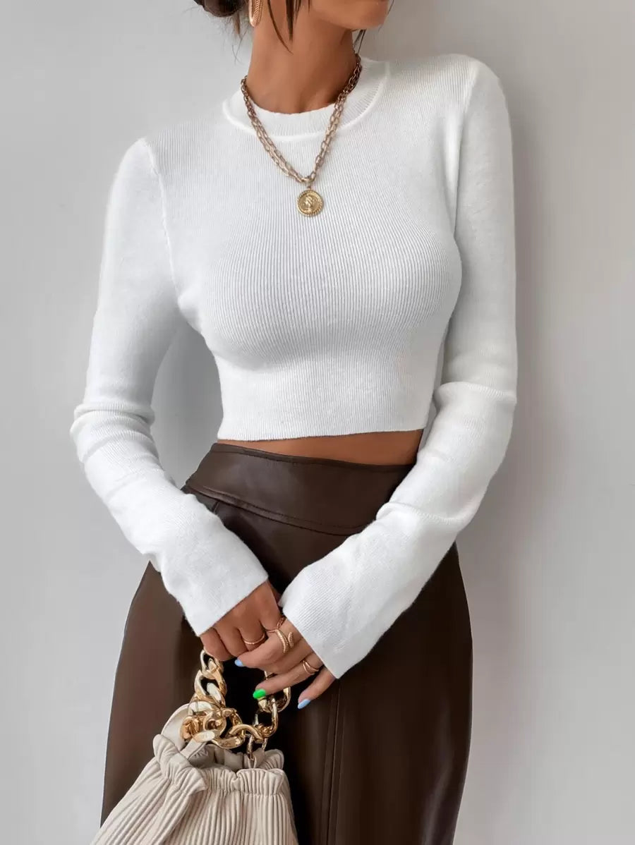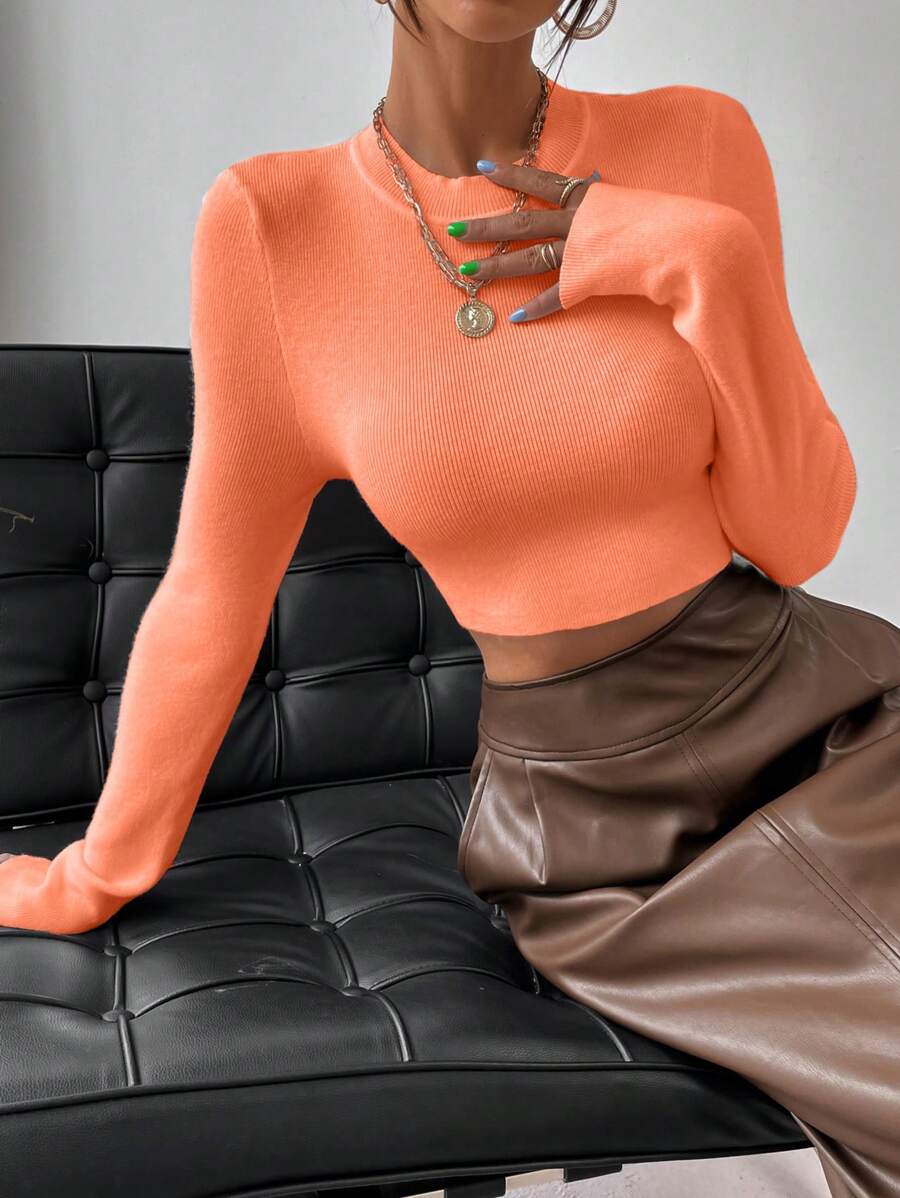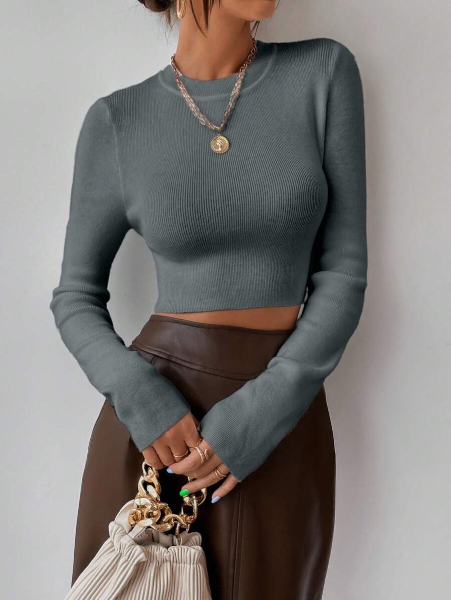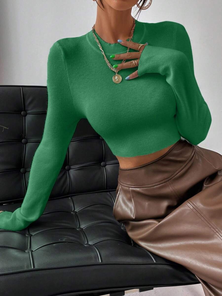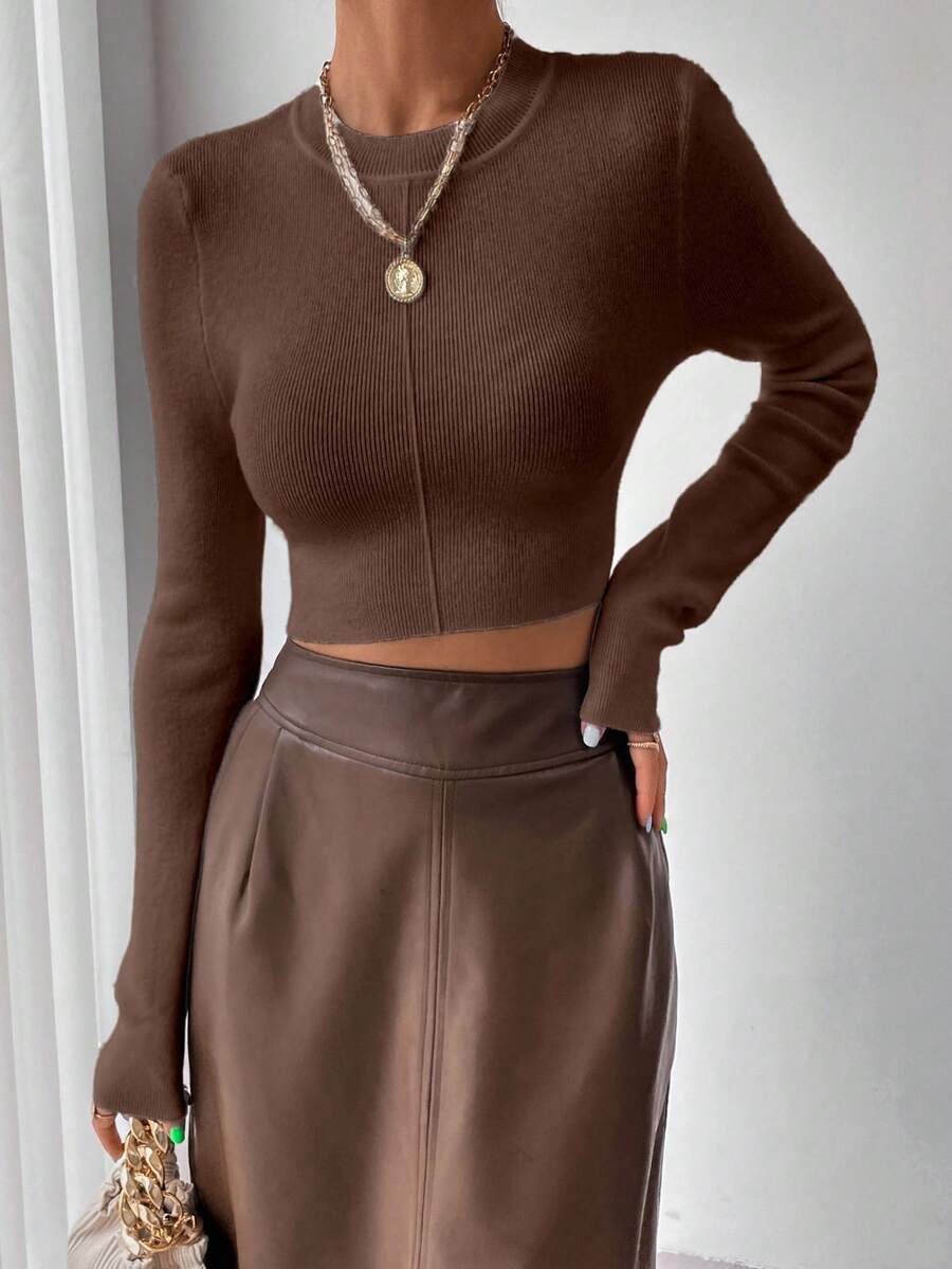 Lumivelle Women's Solid Color Crew Neck Long Sleeve Casual Pullover Sweater Knit Pullover Fall Winter Outfit