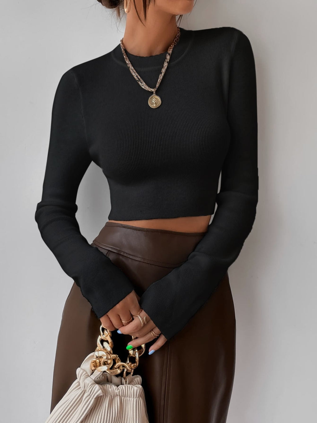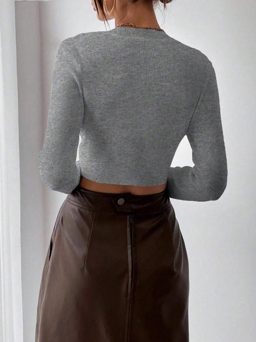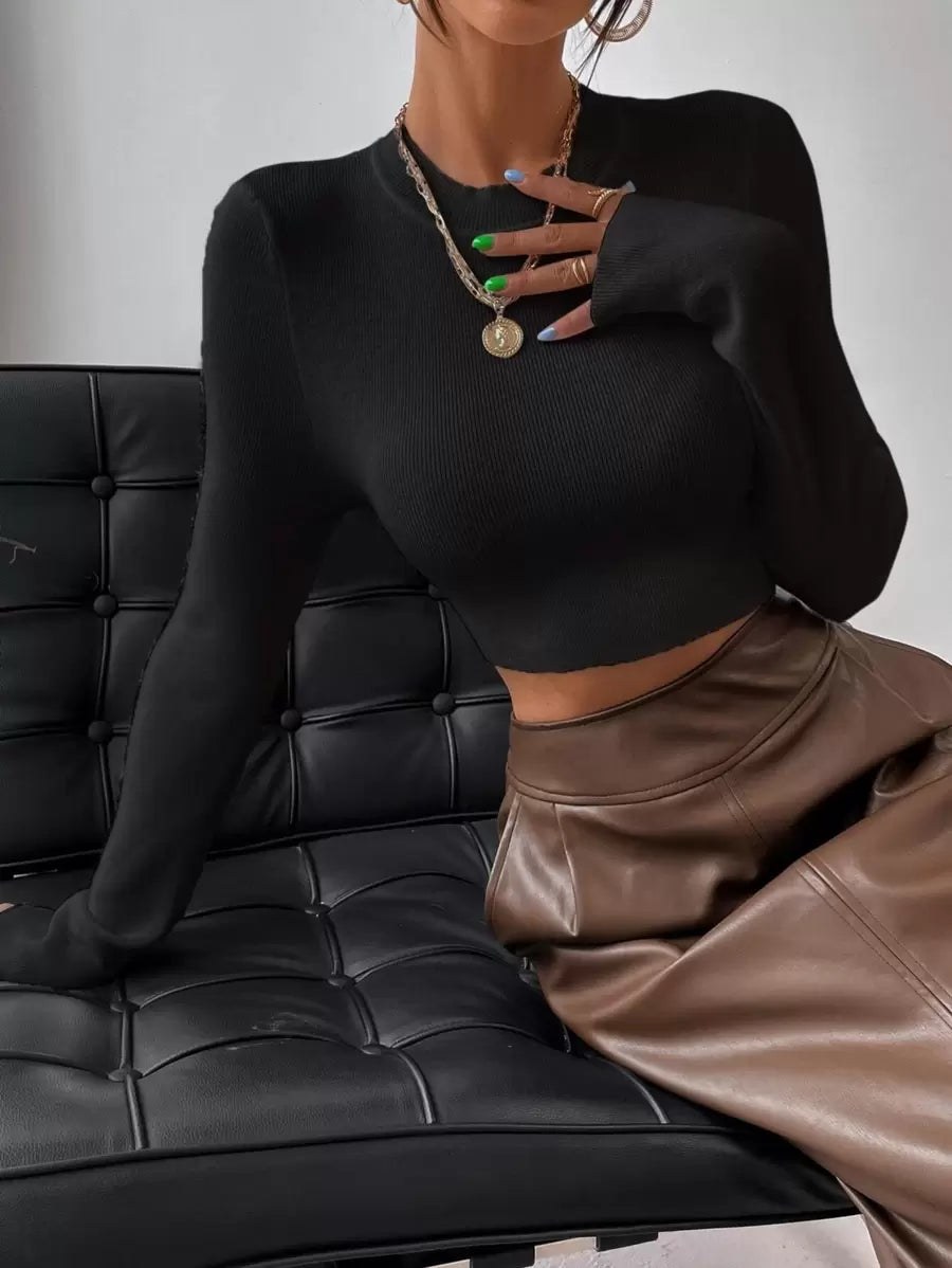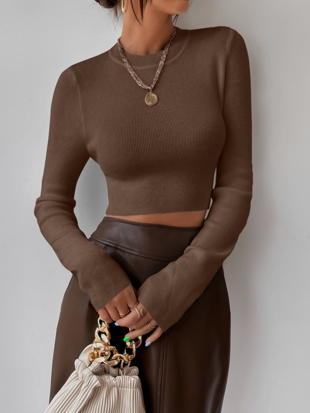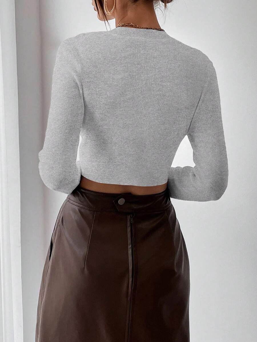 Lumivelle Women's Solid Color Crew Neck Long Sleeve Casual Pullover Sweater Knit Pullover Fall Winter Outfit