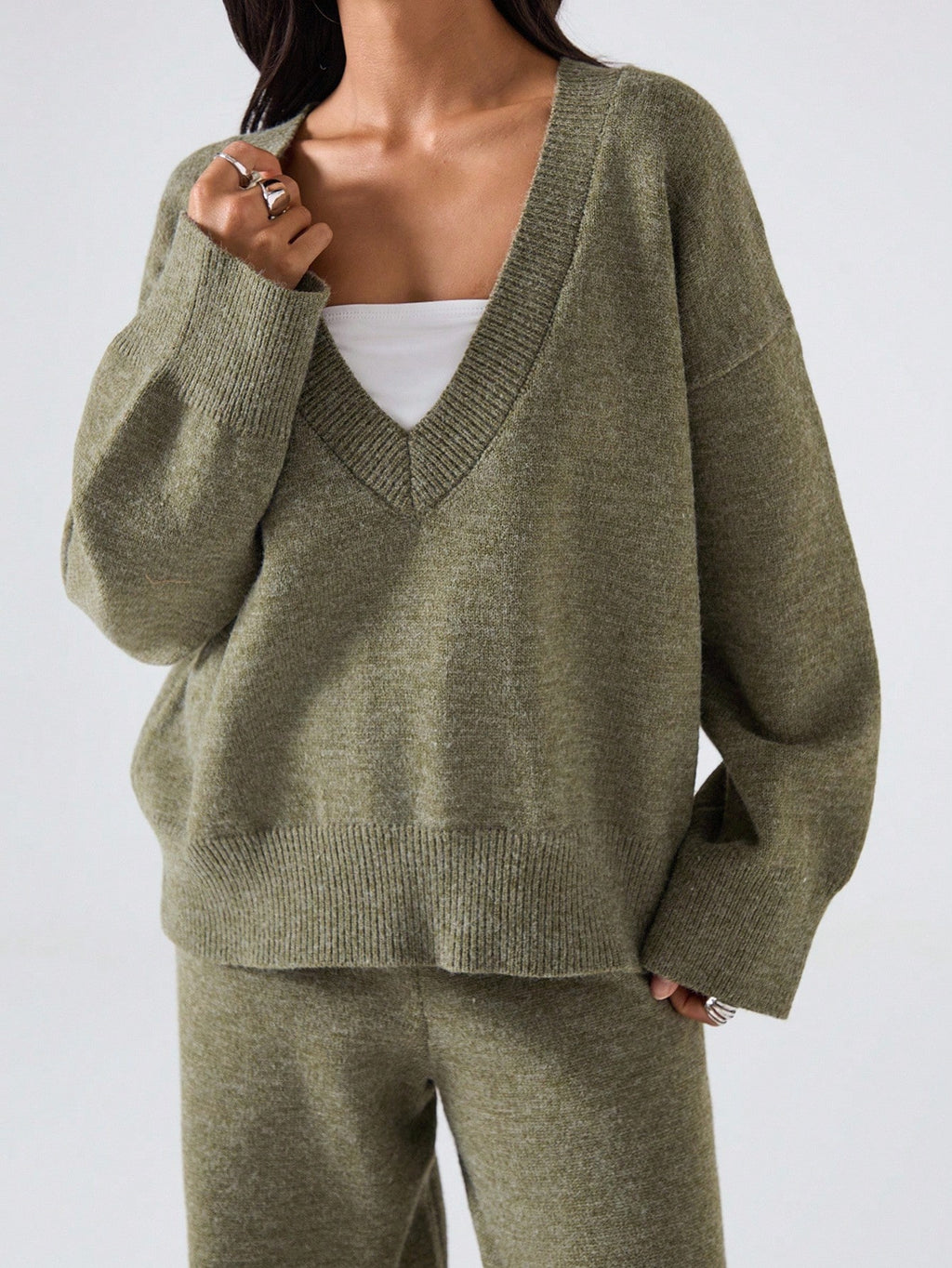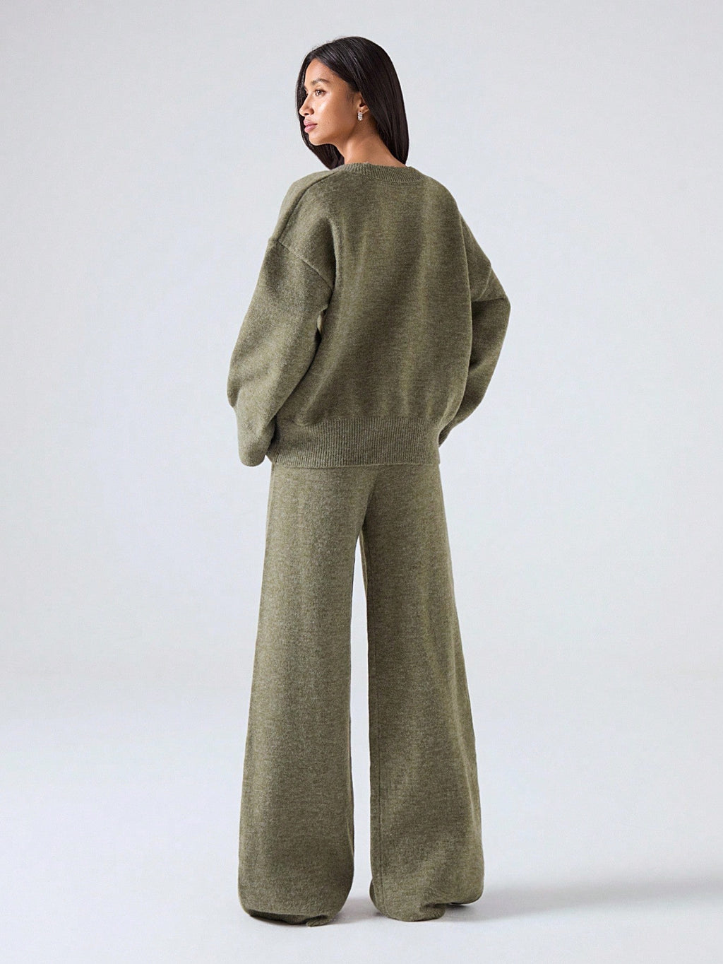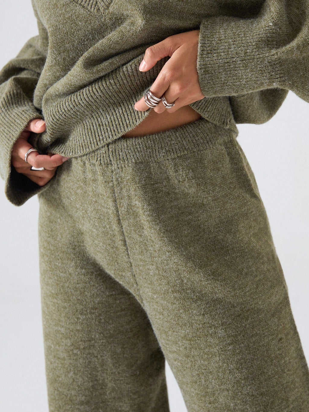 LYSMO 2025 novi minimalistički jesenji ženski pleteni set — zeleni džemper i pantalone od mekane pletenine, savršen za svakodnevne i moderne kombinacije. Idealan za izlaske