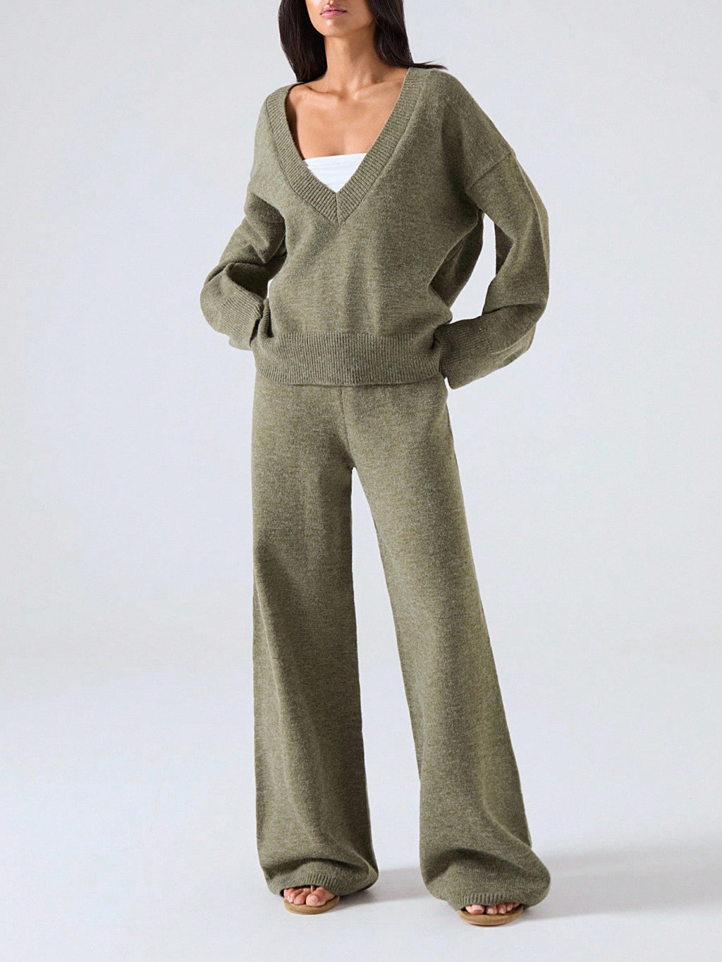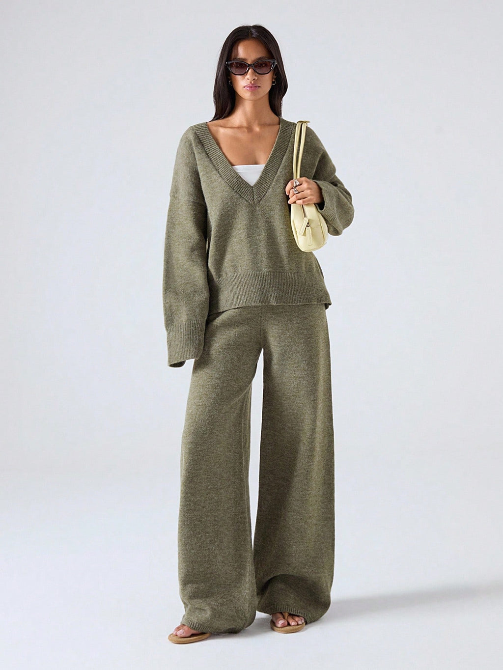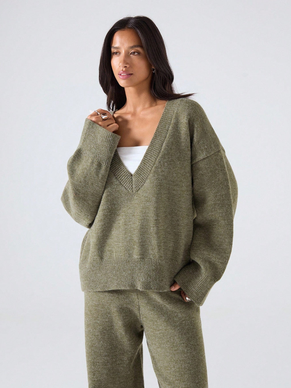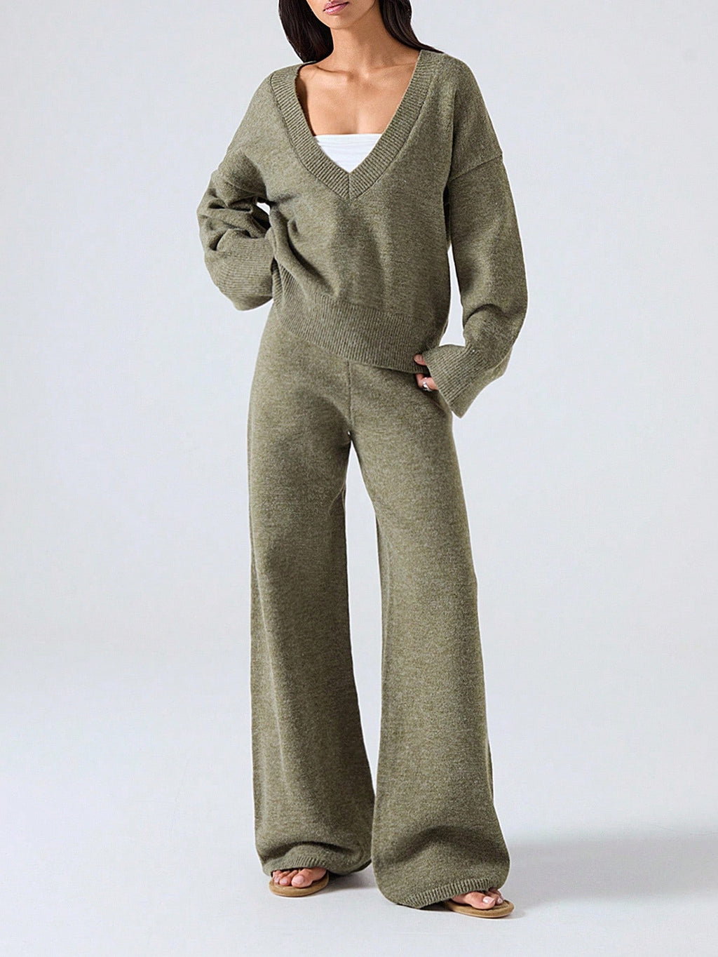 LYSMO 2025 novi minimalistički jesenji ženski pleteni set — zeleni džemper i pantalone od mekane pletenine, savršen za svakodnevne i moderne kombinacije. Idealan za izlaske
