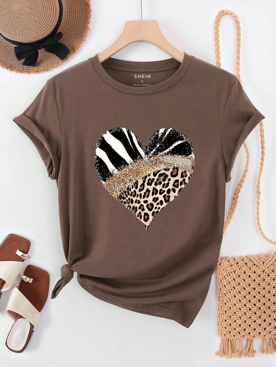 MAJA Ženska T-Shirt sa printsom leoparda i srca
