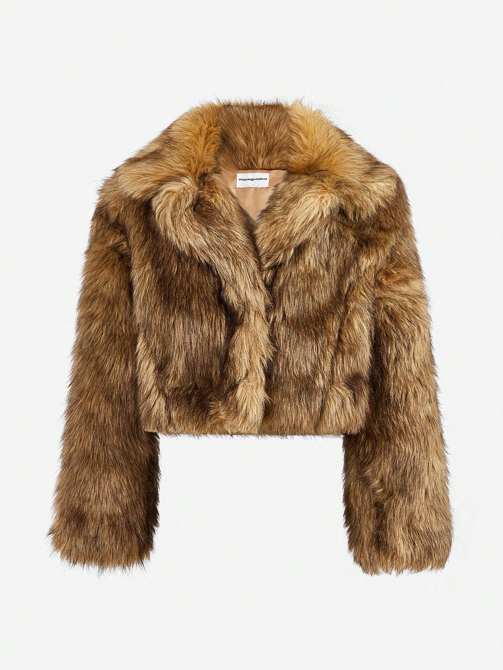 MISSGUIDED ženska kratka zimska jakna od umjetnog krzna s dugom kragnom i pahuljastom teksturom, idealna za zimske modne kombinacije