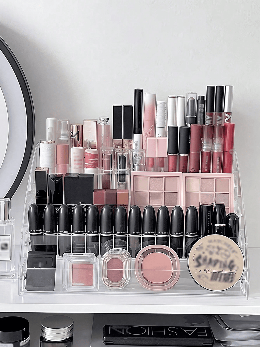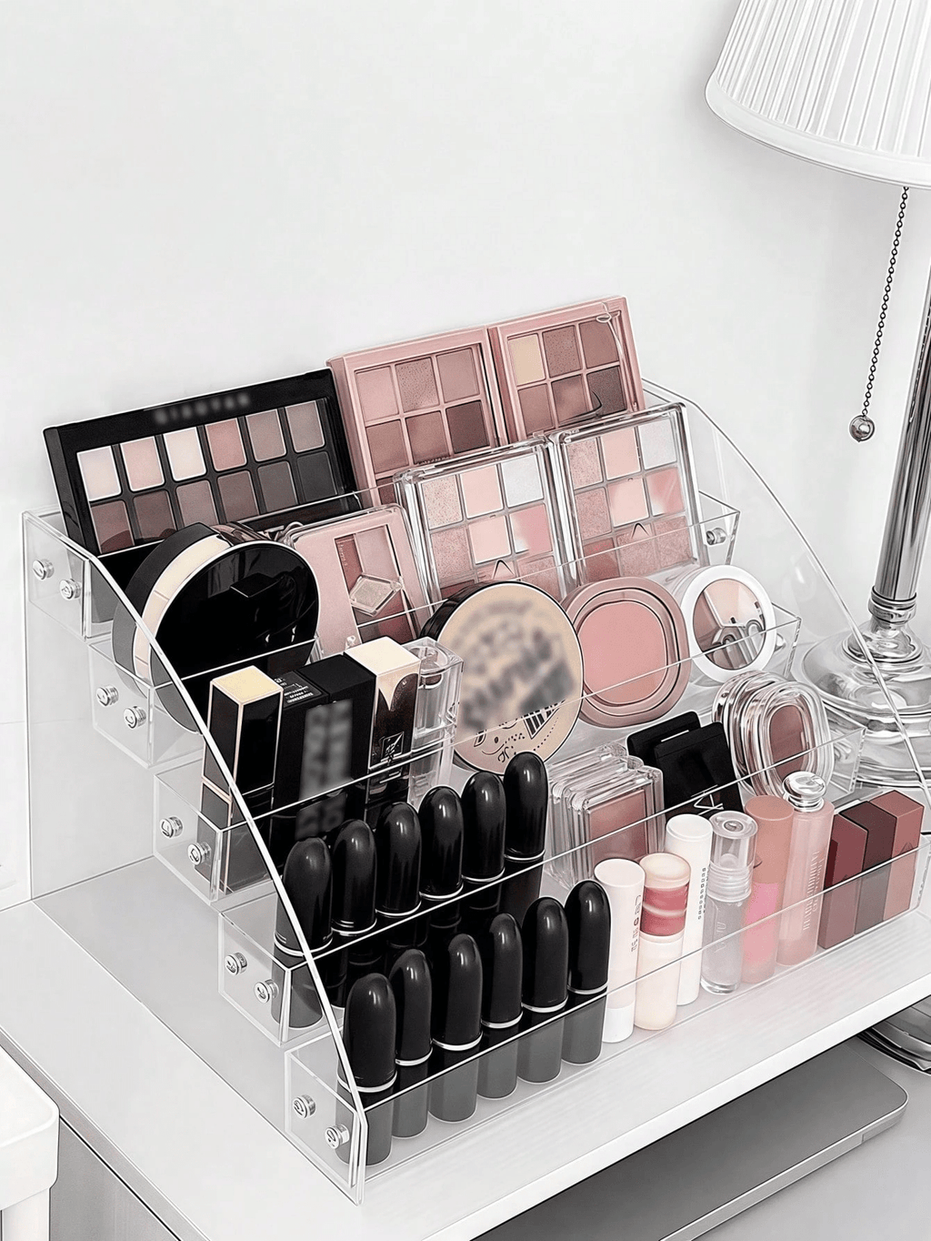 MIU 1pc Makeup Storage Rack, Clear Organizer For Cosmetics, Modernist Design For Home, Transparent, Ideal For Vanity Table, Bathroom Countertop, Keep Makeup Neat
