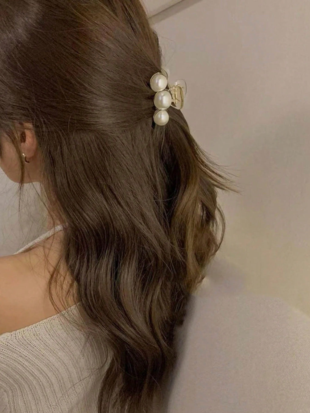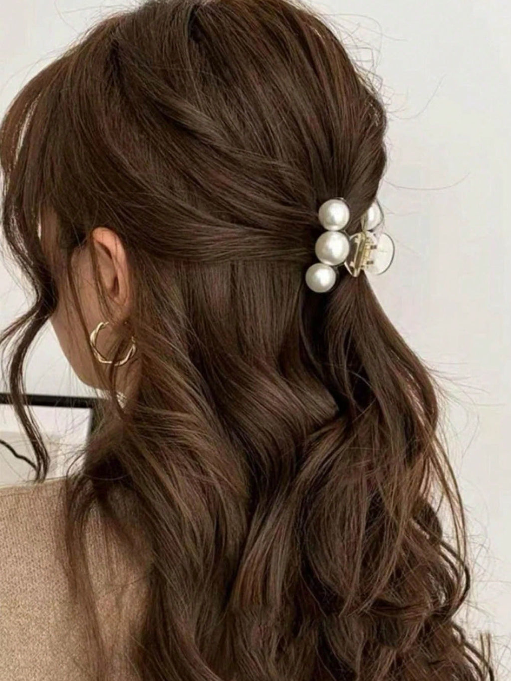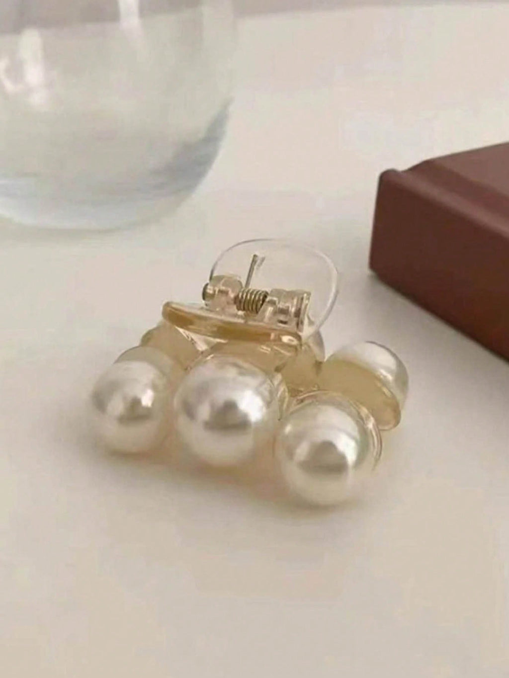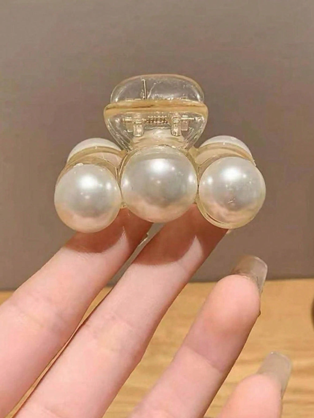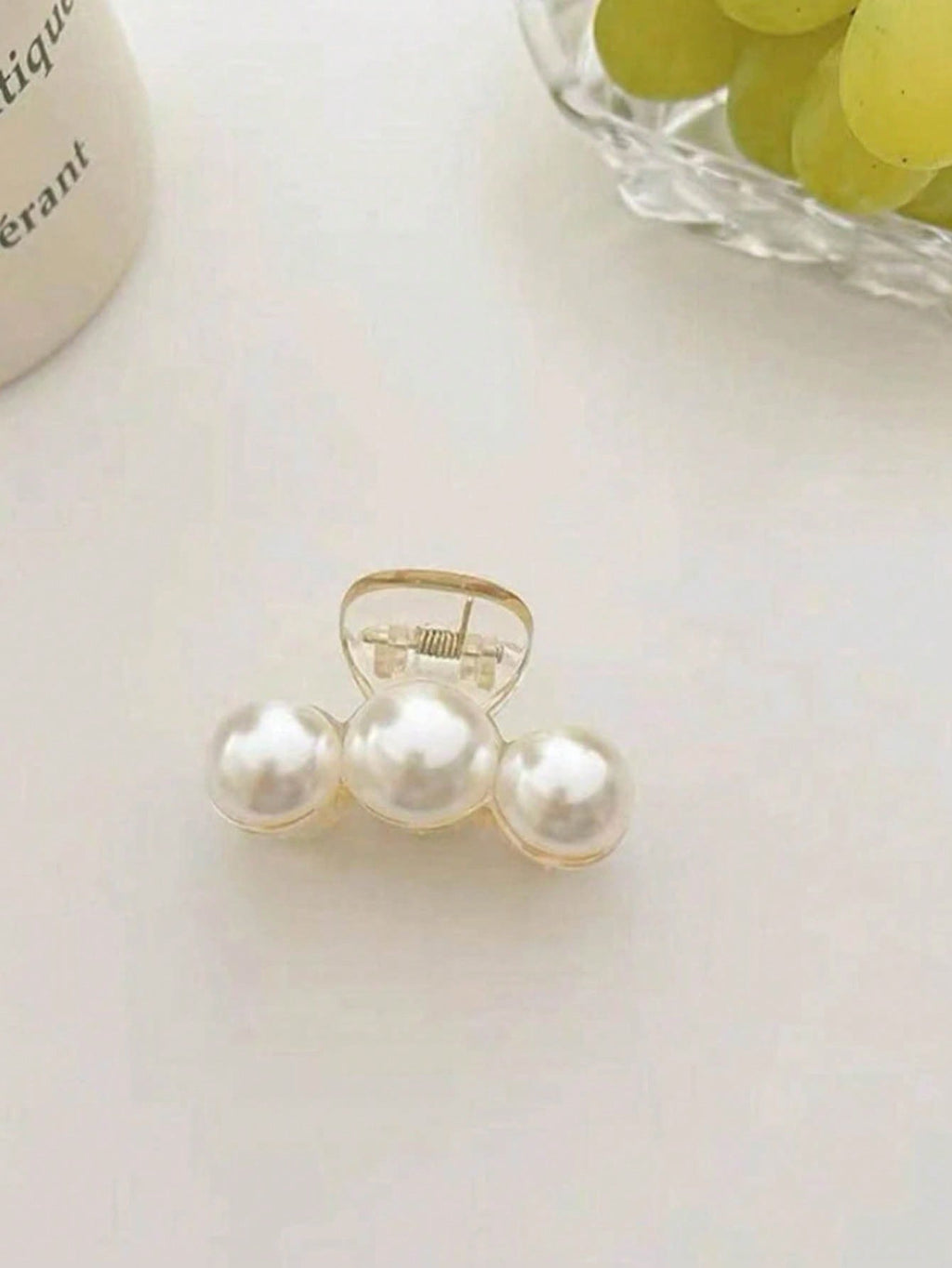 MIU 1pc Women White Faux Pearl Decor Hair Claw Clips Hair Clips Hair Jaw Clip Hair Clamps Hair Clutch Hair Catcher Clip
