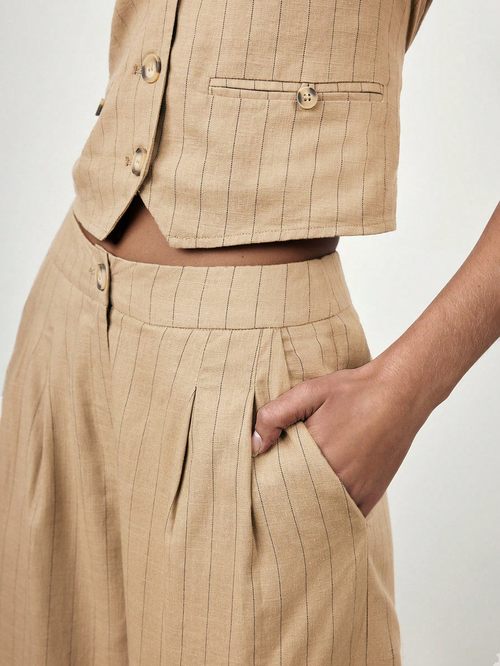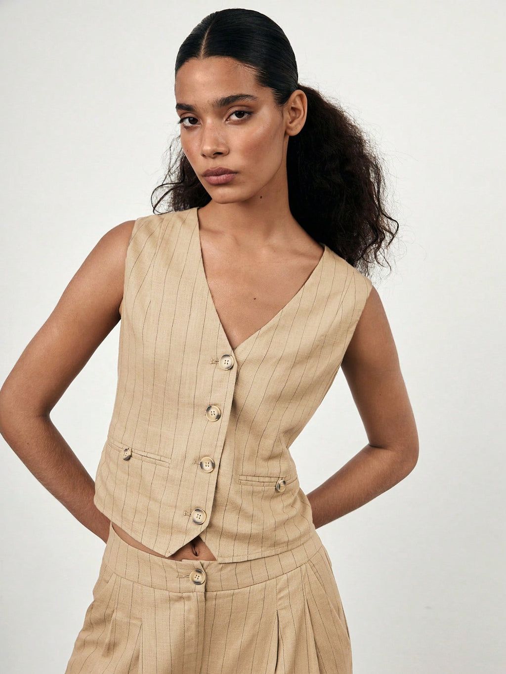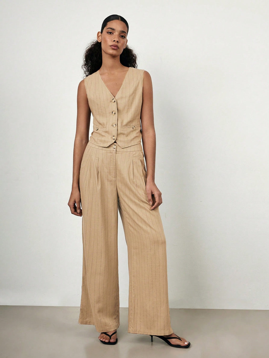 MIU 2025 Spring/Summer New Fashion Casual Vacation Comfortable Women Striped Single-Breasted Vest And Pants Suit Set