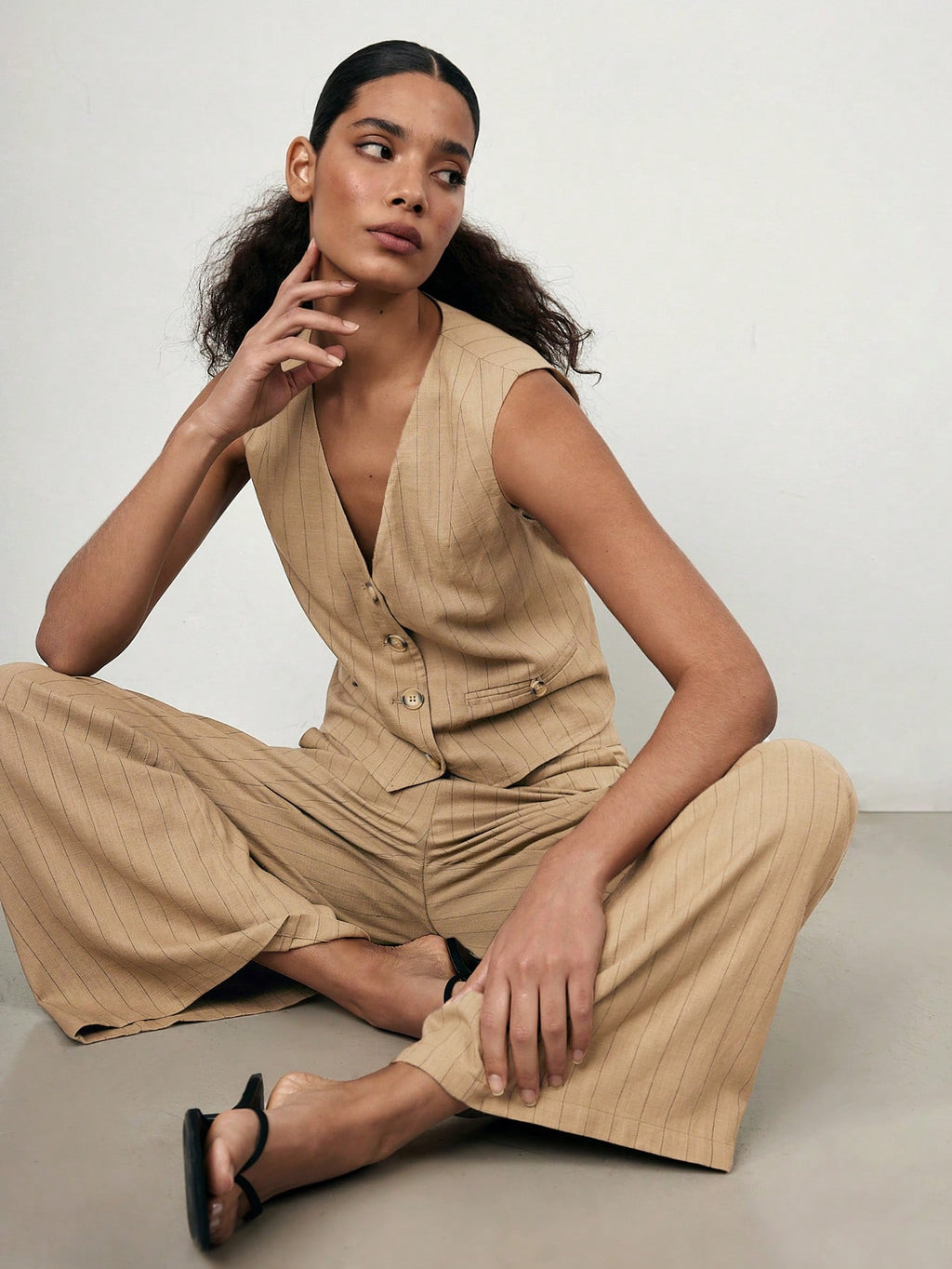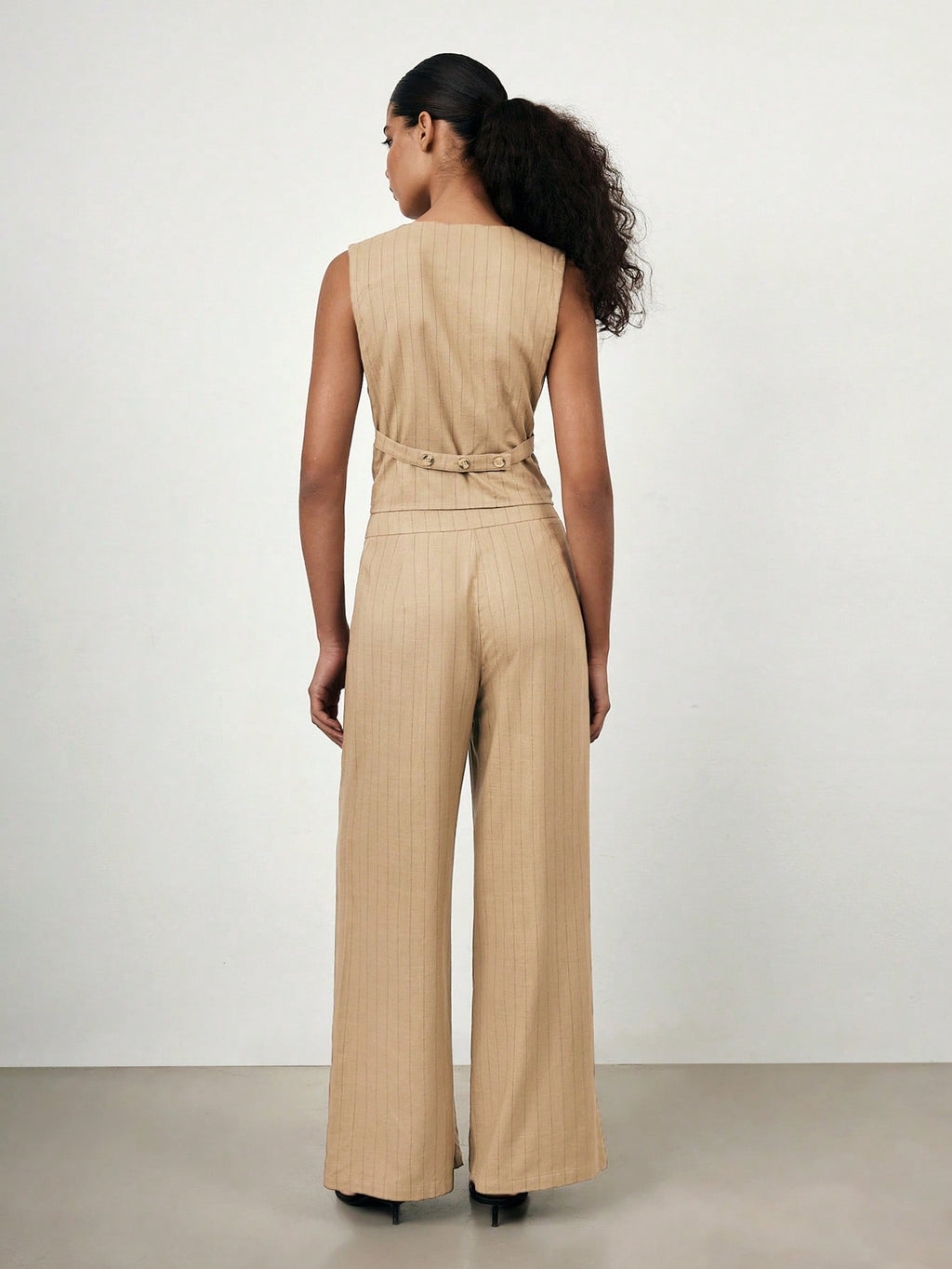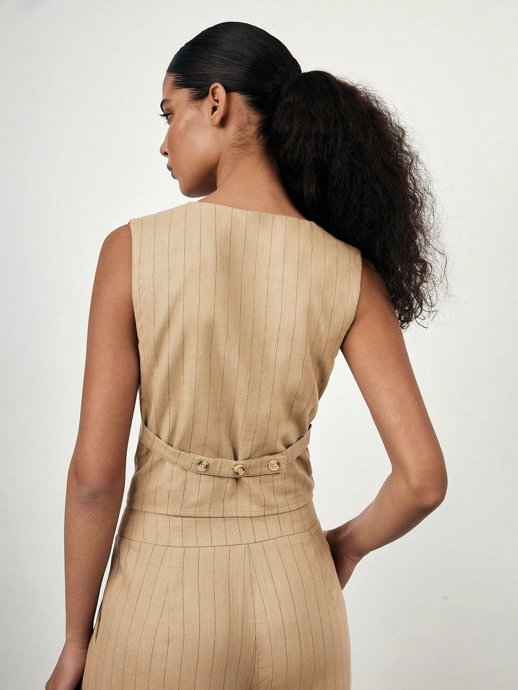 MIU 2025 Spring/Summer New Fashion Casual Vacation Comfortable Women Striped Single-Breasted Vest And Pants Suit Set