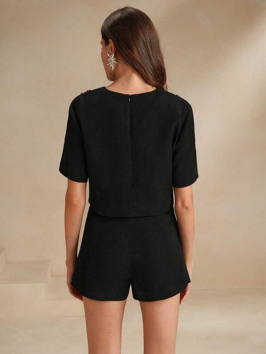 MIU 2pcs Set Elegant Embroidered Floral Bead Detailed Outfit For Christmas