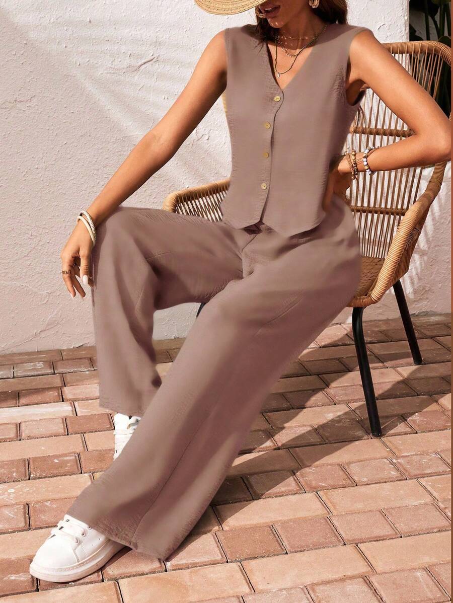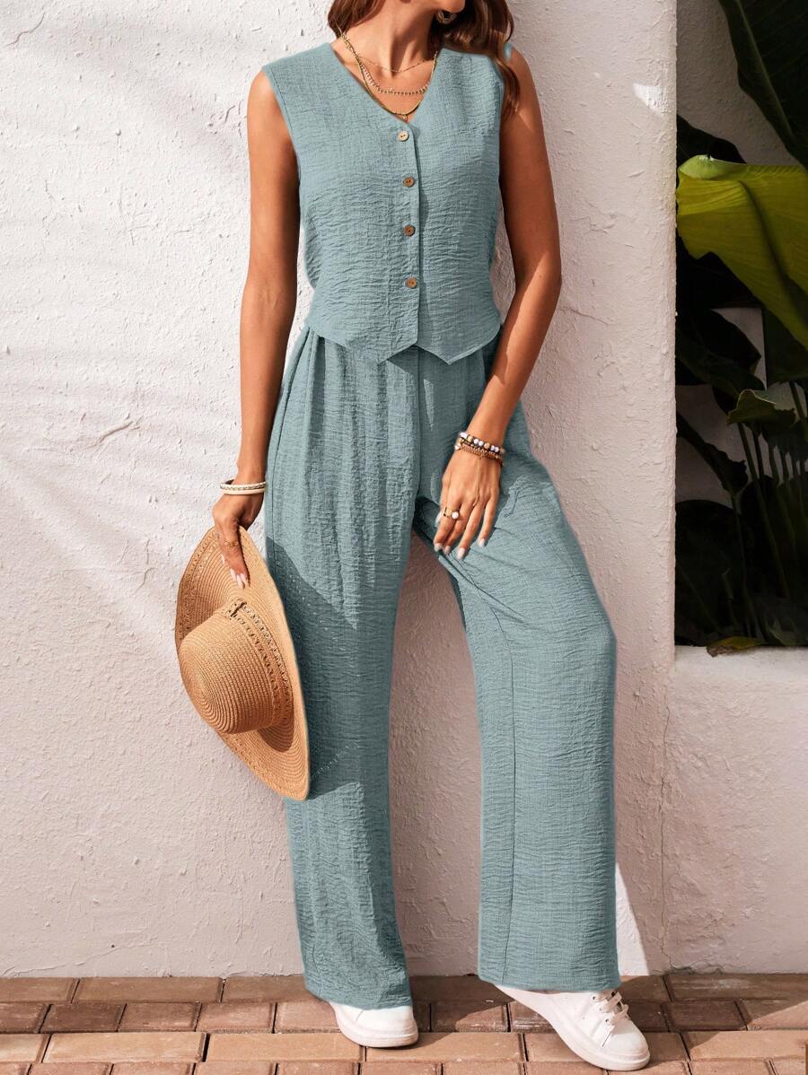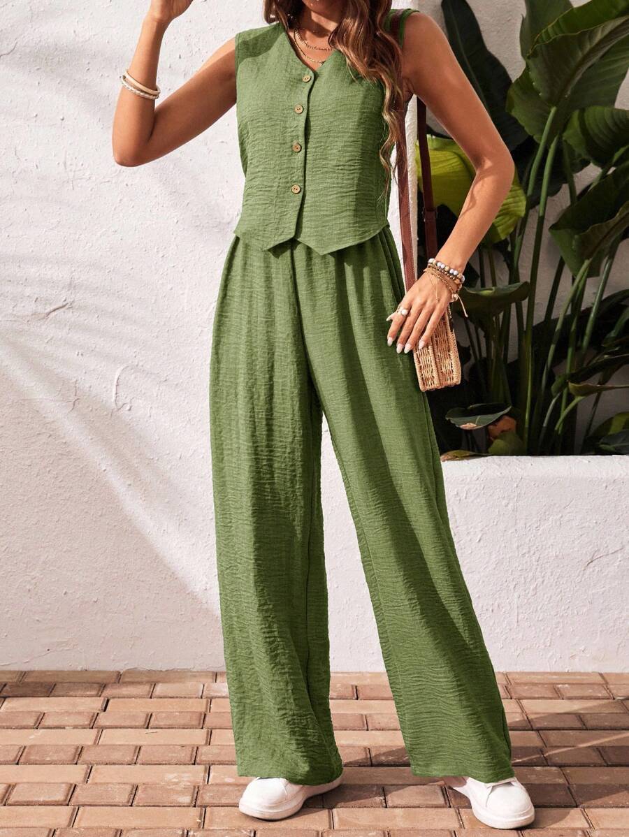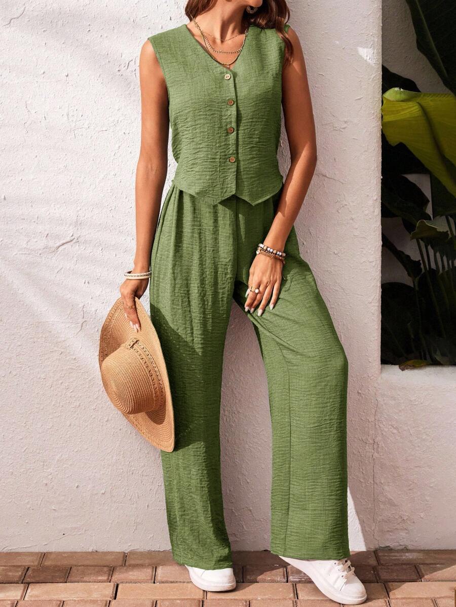 MIU 2pcs/Set Women's Casual Single-Breasted Vest And Pants, Summer