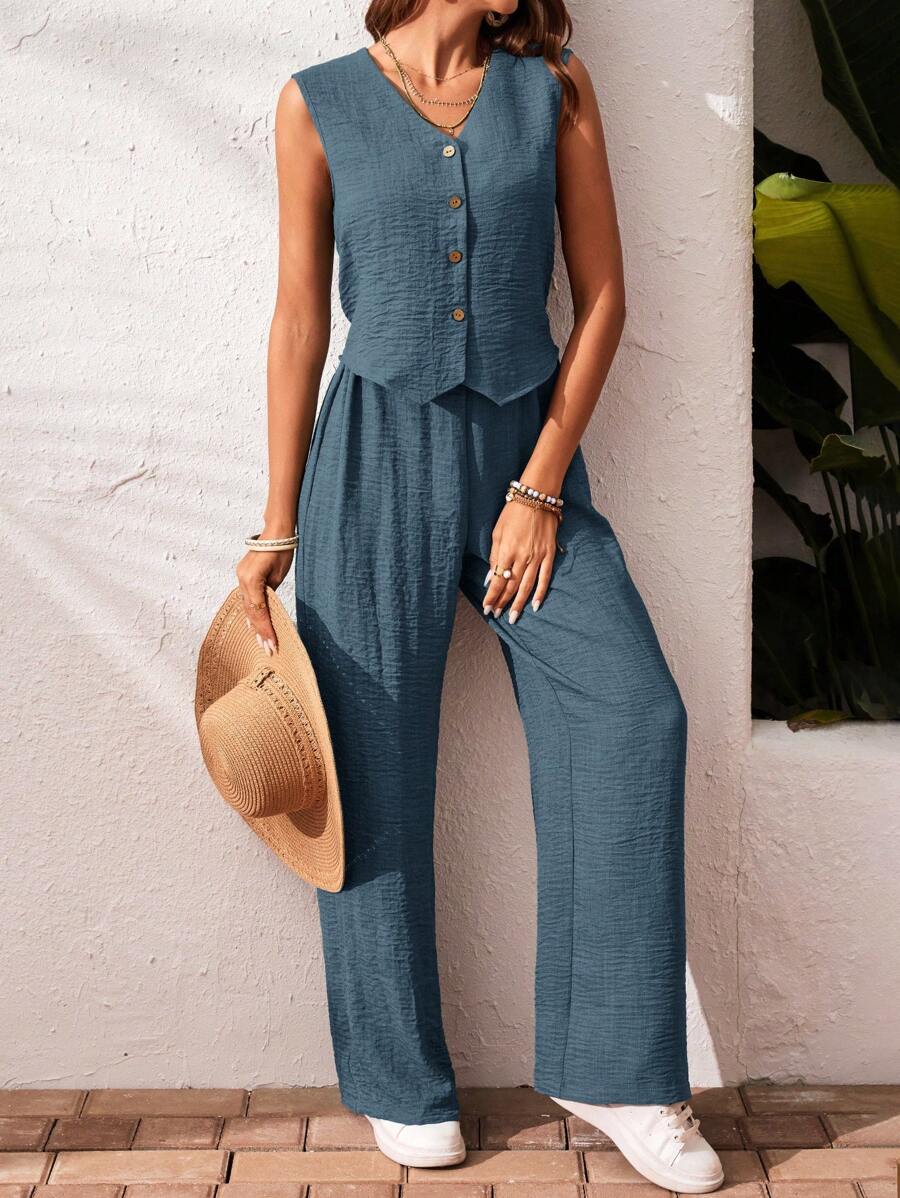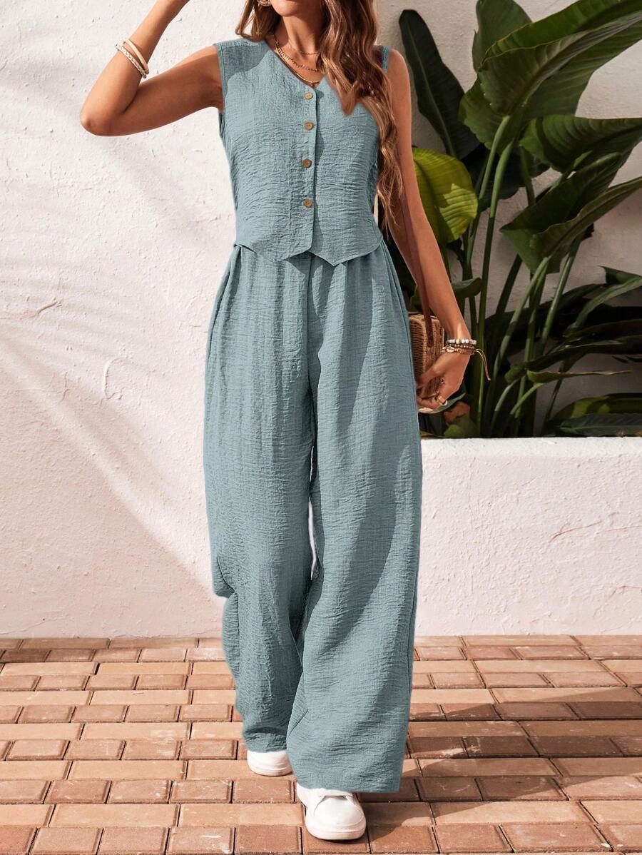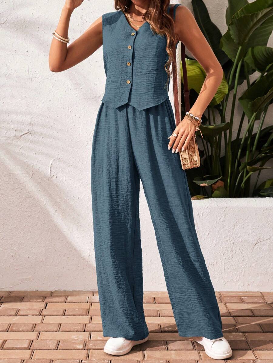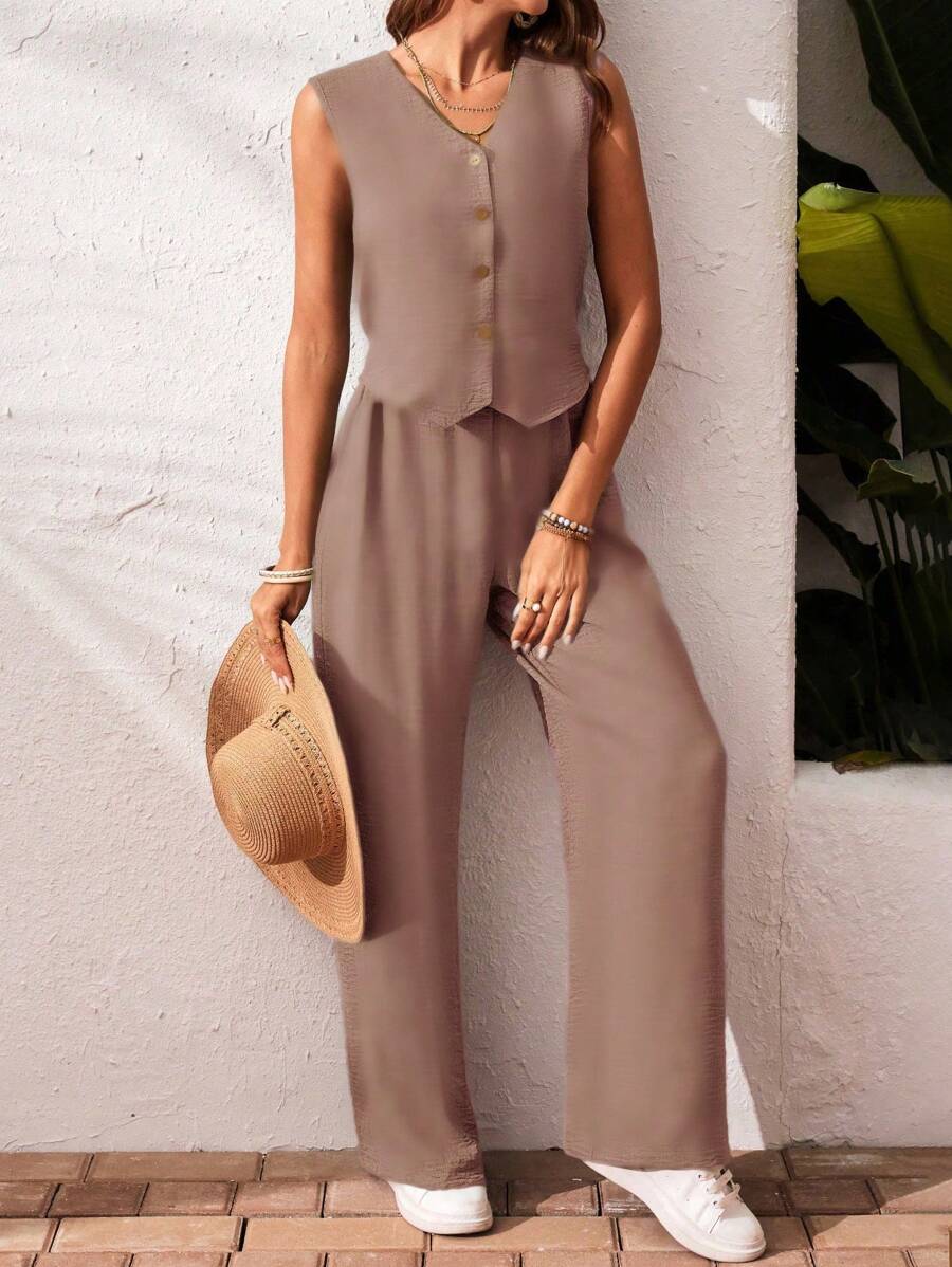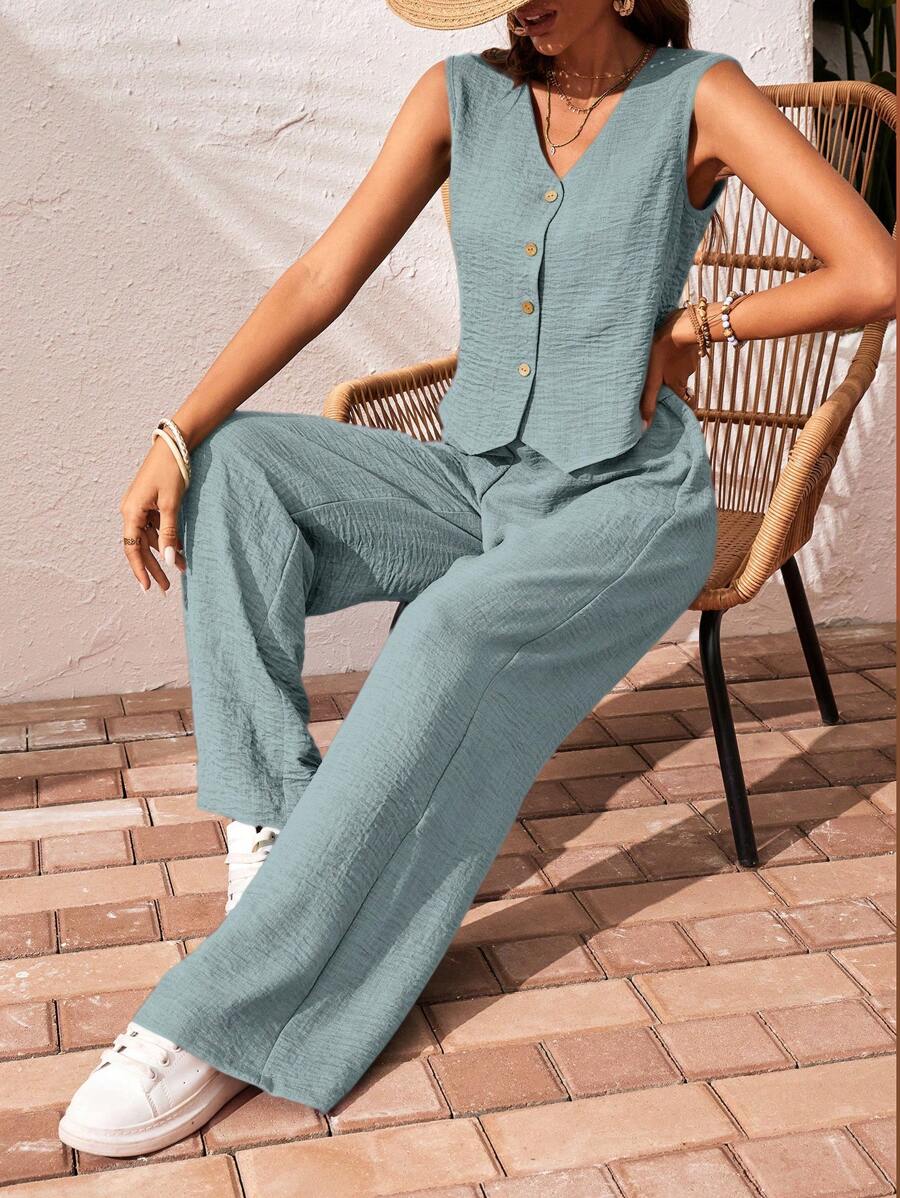 MIU 2pcs/Set Women's Casual Single-Breasted Vest And Pants, Summer