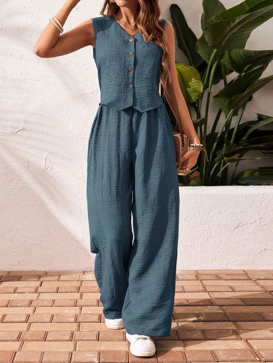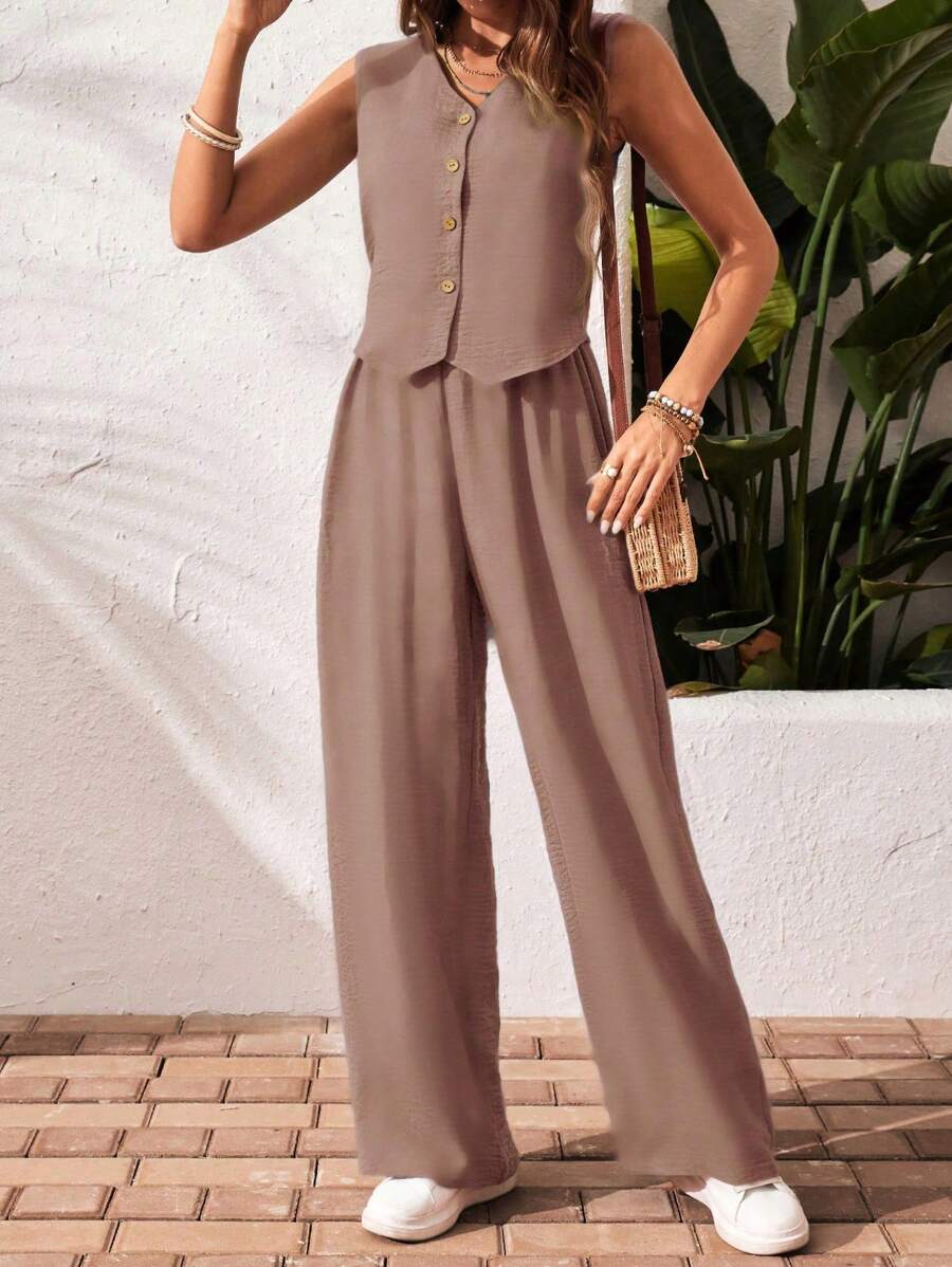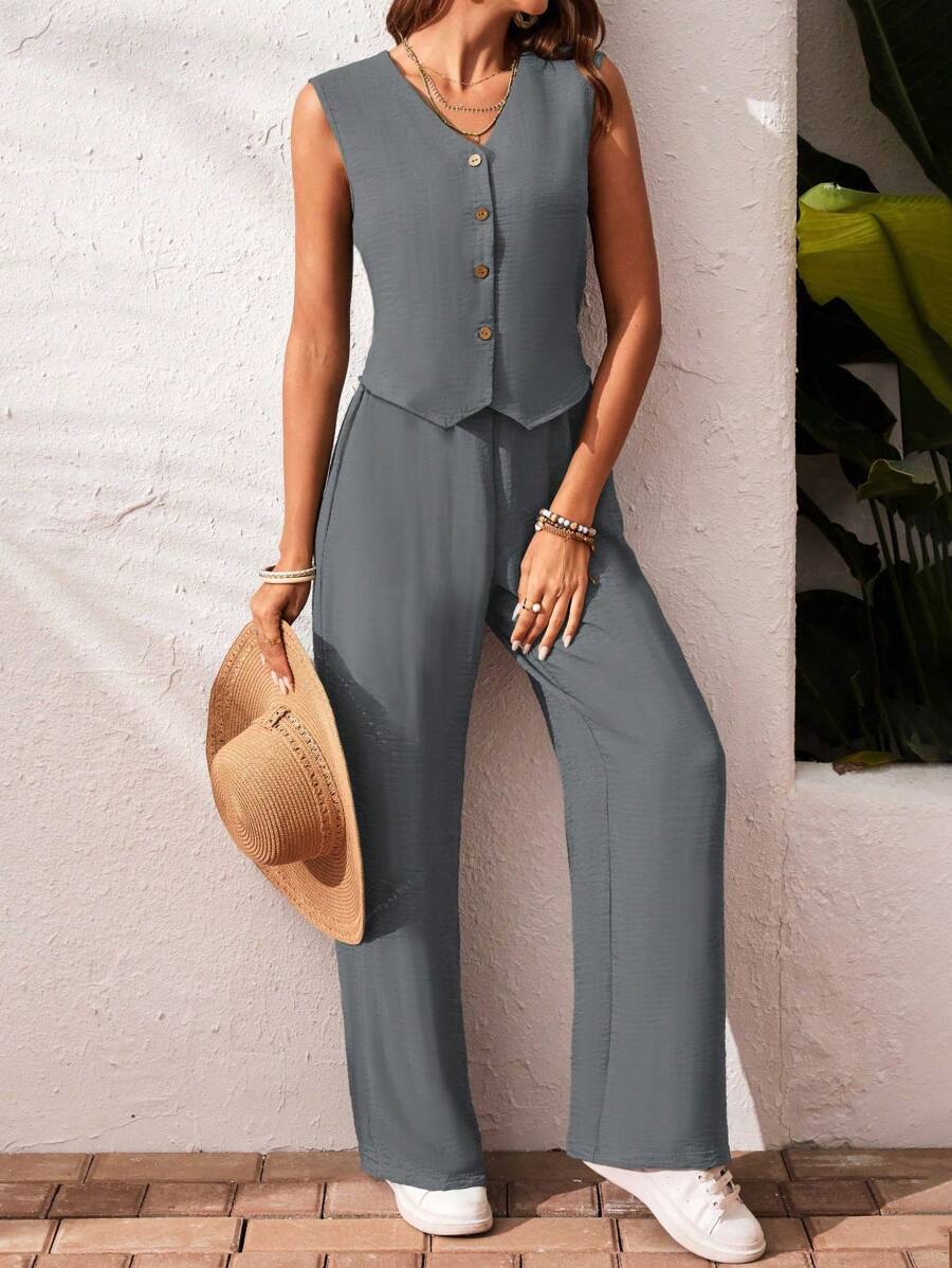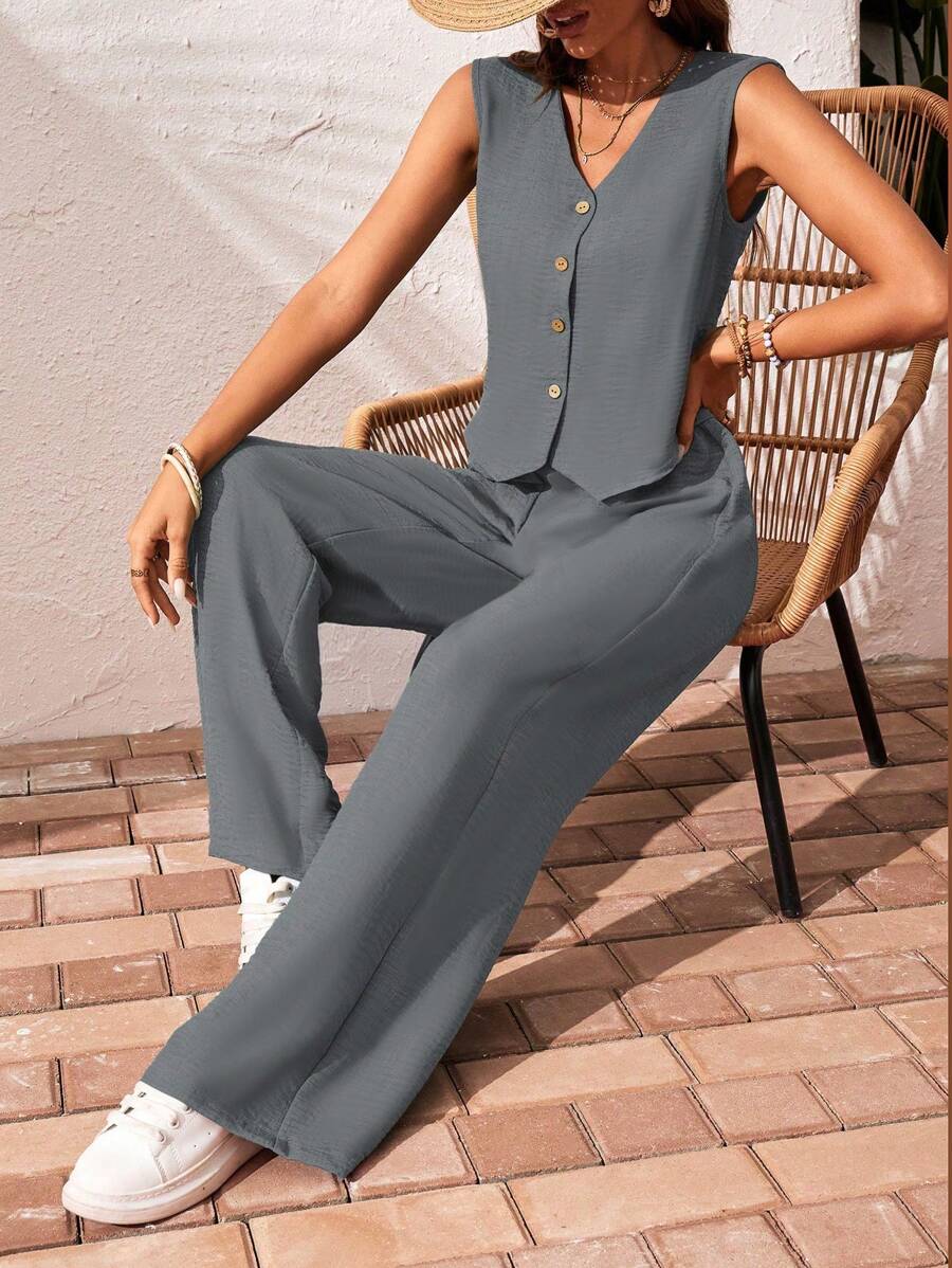 MIU 2pcs/Set Women's Casual Single-Breasted Vest And Pants, Summer