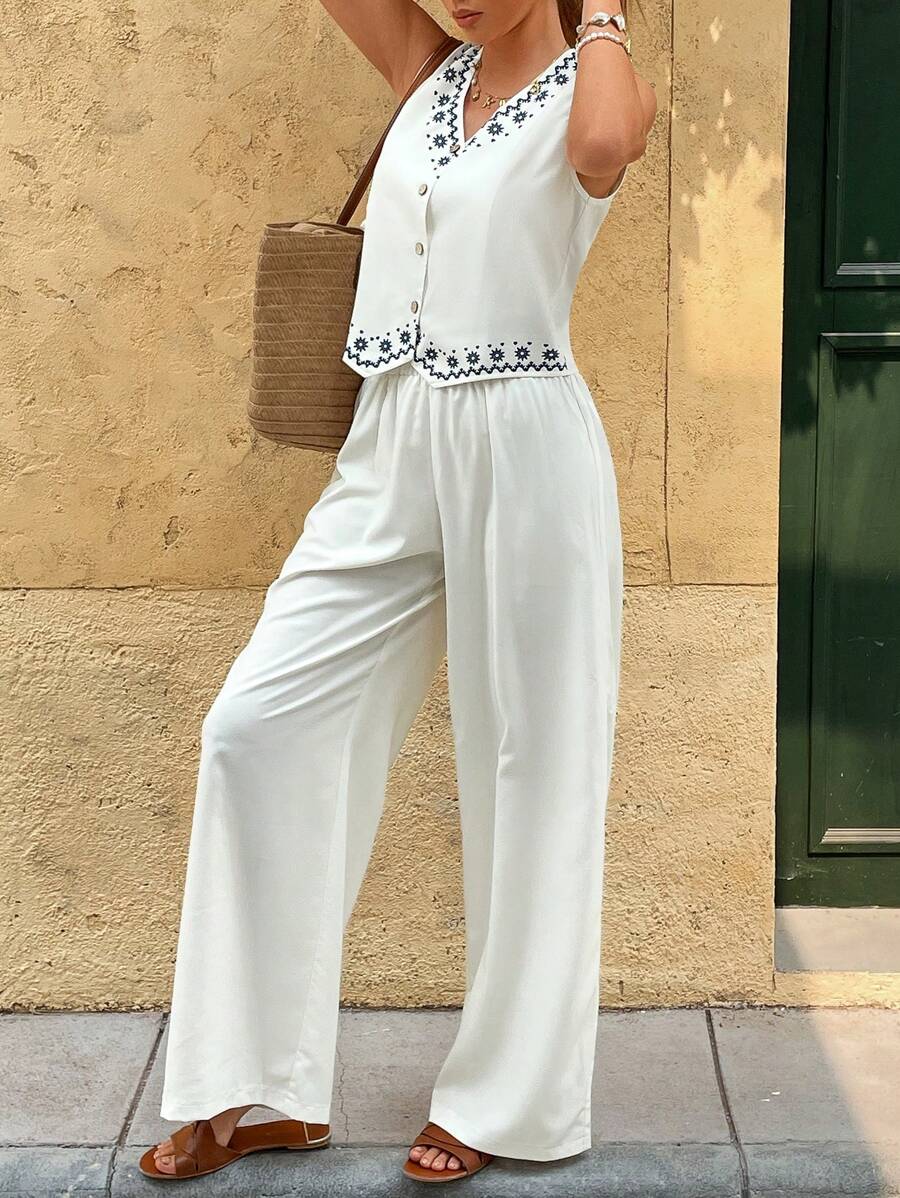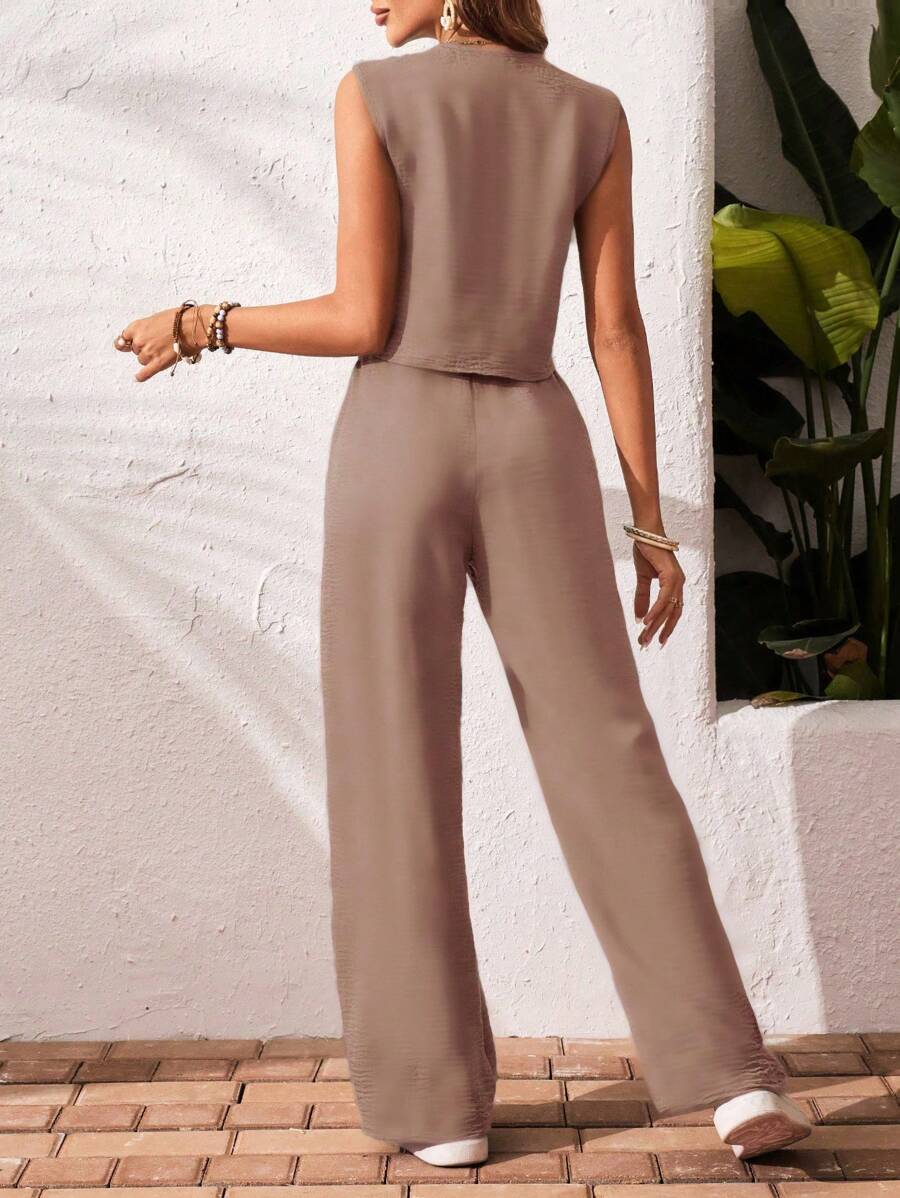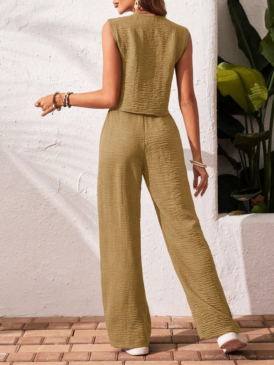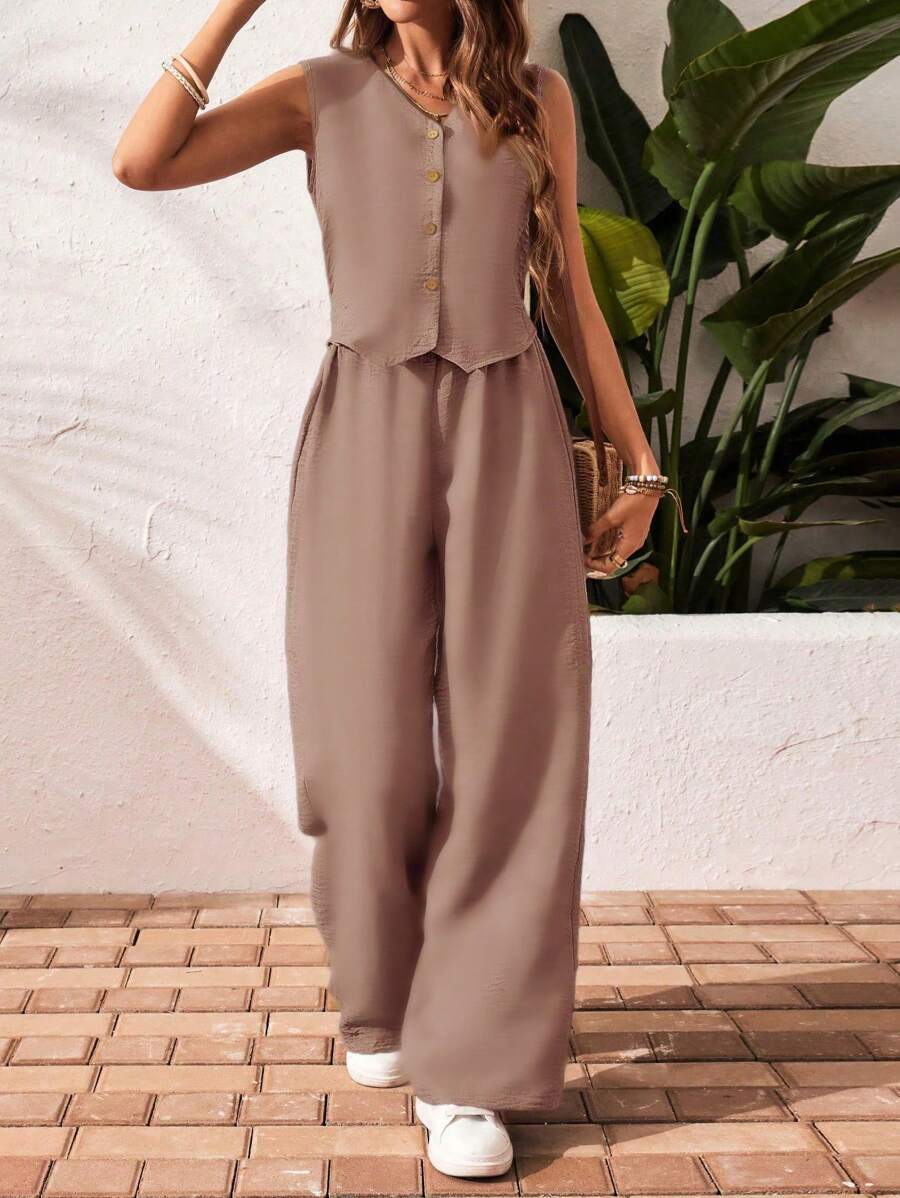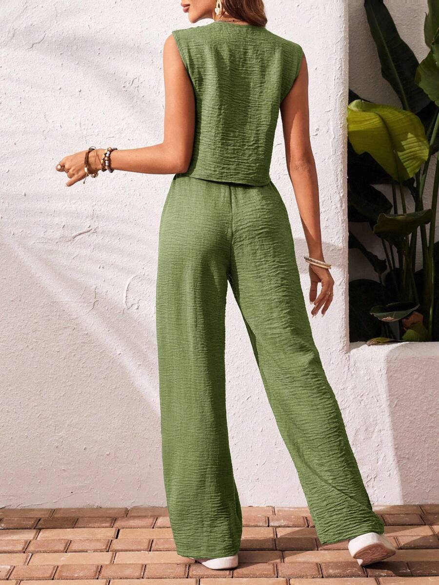 MIU 2pcs/Set Women's Casual Single-Breasted Vest And Pants, Summer