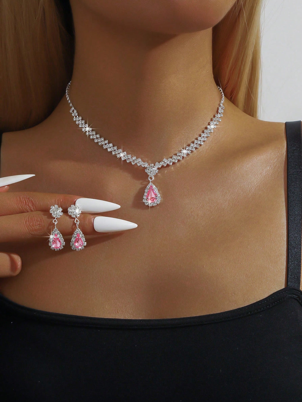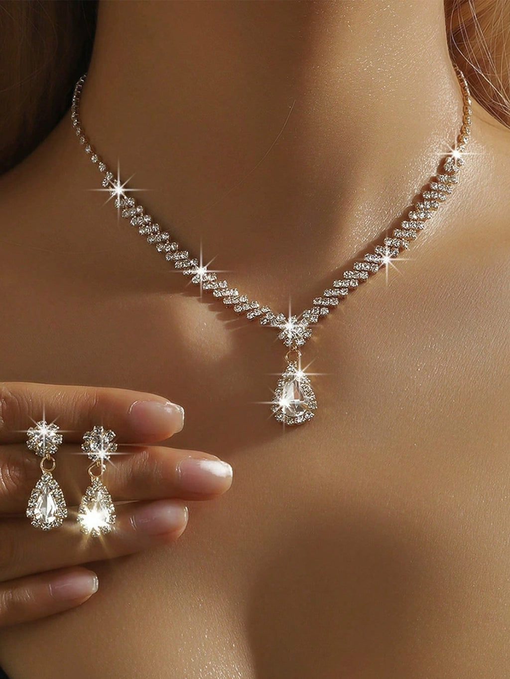 MIU 3 Pieces/Set, Minimalist Fashion Diamond Necklace And Earrings Set, Versatile Jewelry For Weddings And Brides, Holiday Gifts For Others, Suitable For Wedding Parties