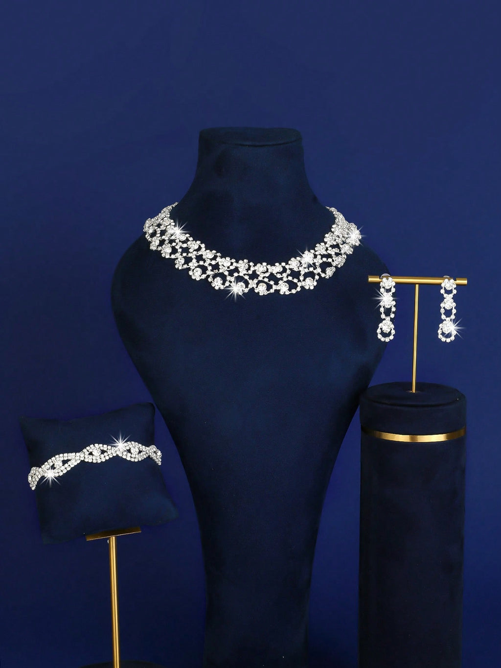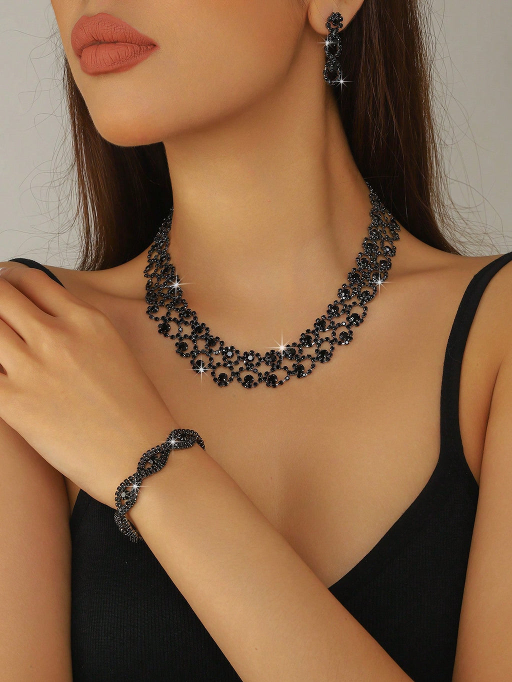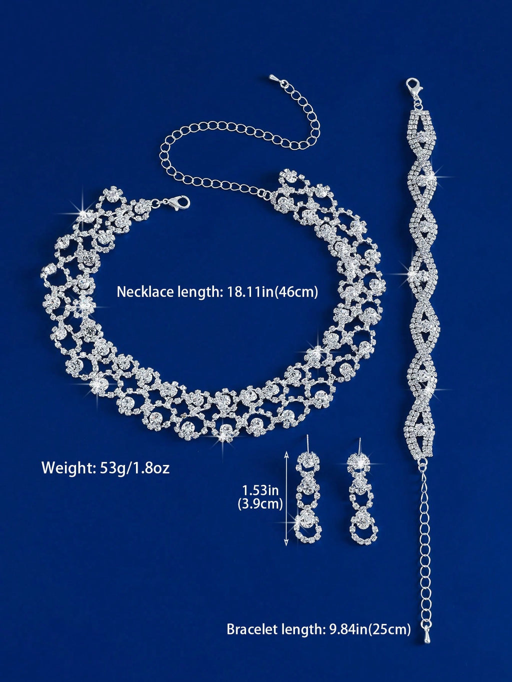 MIU 3 Pieces/Set Women's Party Banquet Wedding Rhinestone Decorative Necklace, Pendant Earrings And Bracelet - Suitable For Women's Daily Wear, Wedding, Party, Etc.