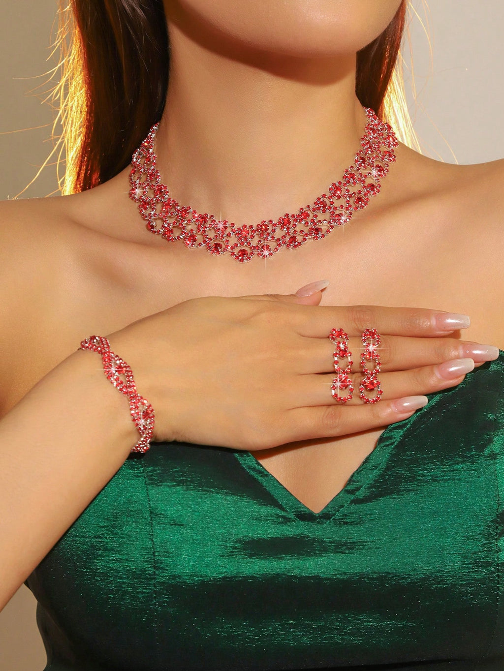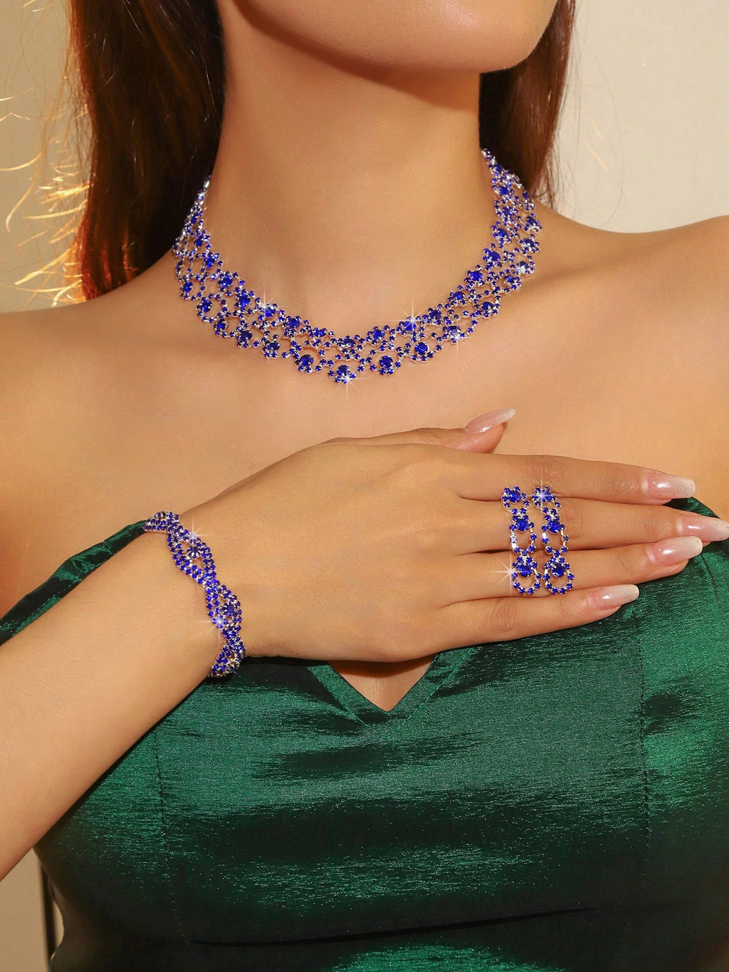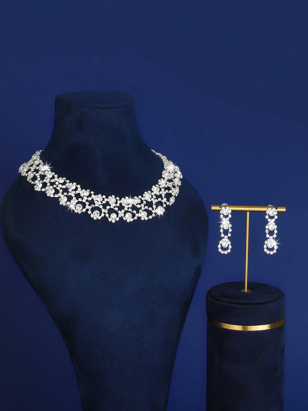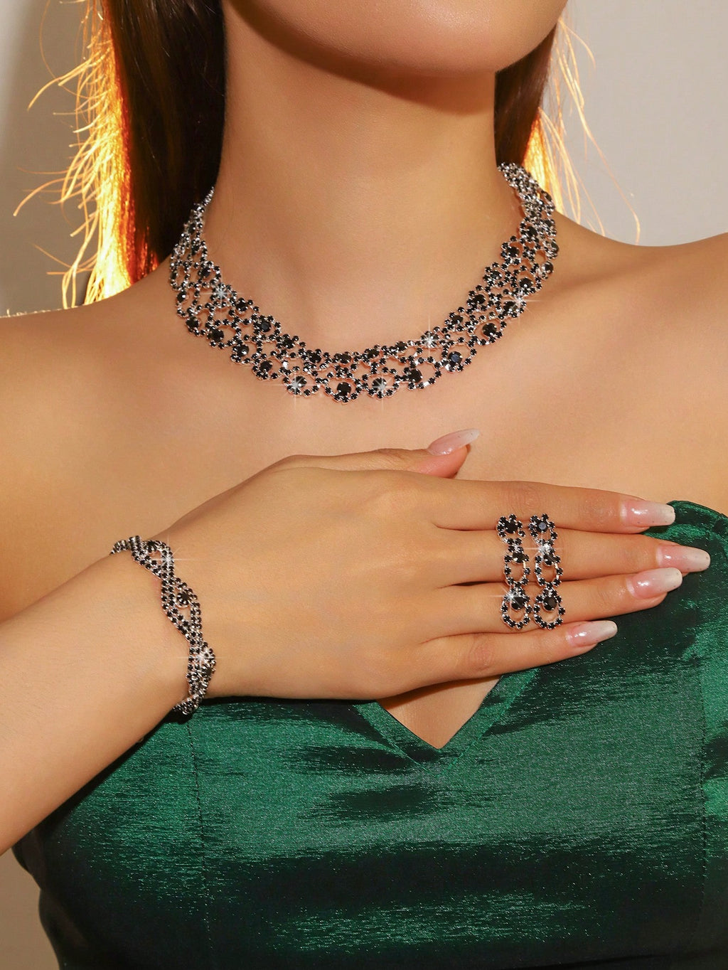 MIU 3 Pieces/Set Women's Party Banquet Wedding Rhinestone Decorative Necklace, Pendant Earrings And Bracelet - Suitable For Women's Daily Wear, Wedding, Party, Etc.