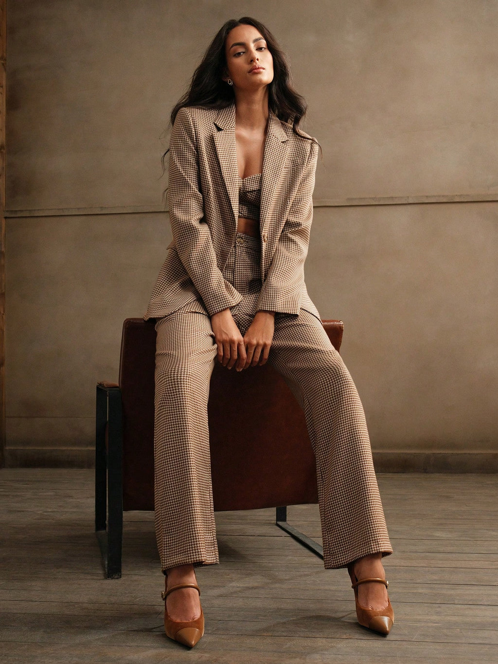 MIU 3pcs Set: Plaid Blazer, Sexy Tube Top