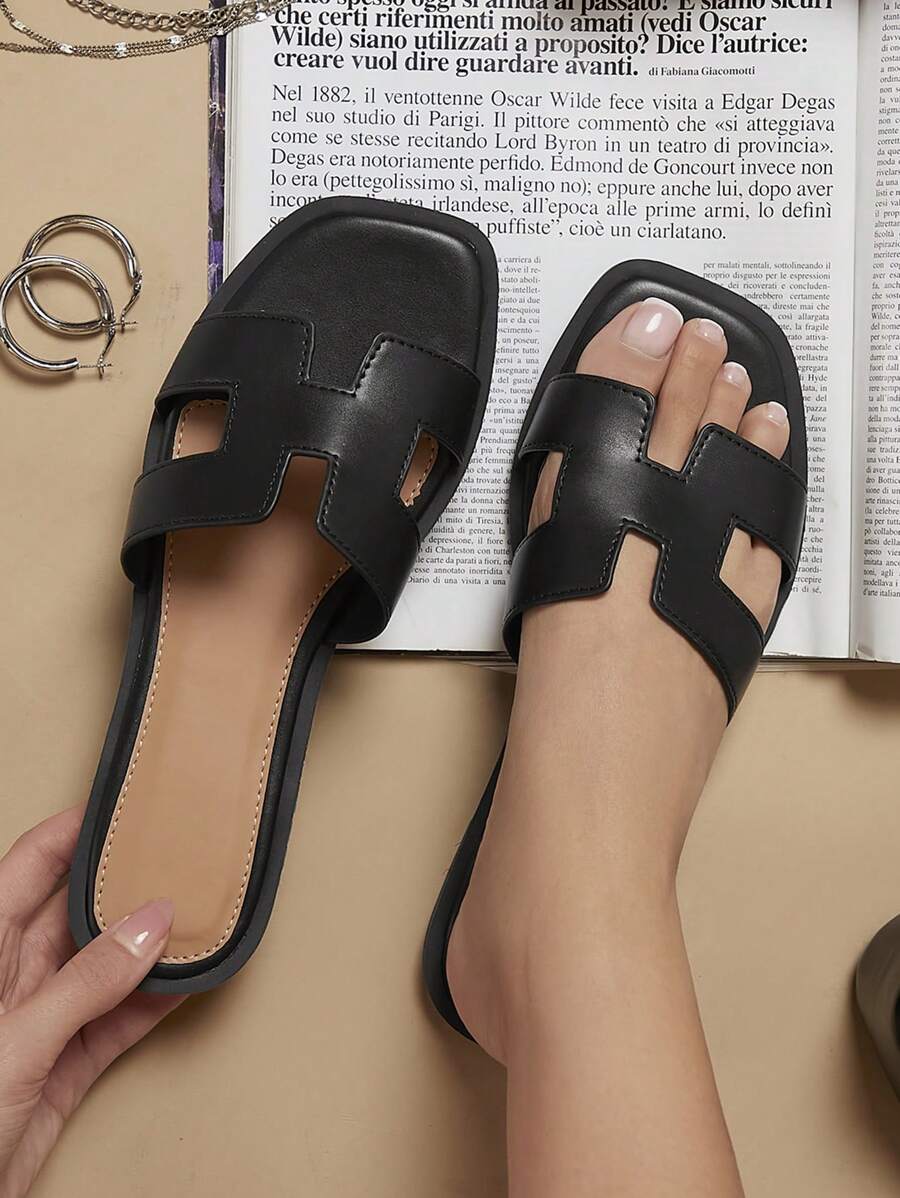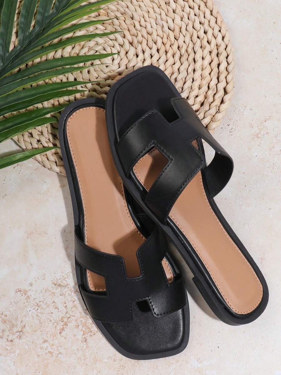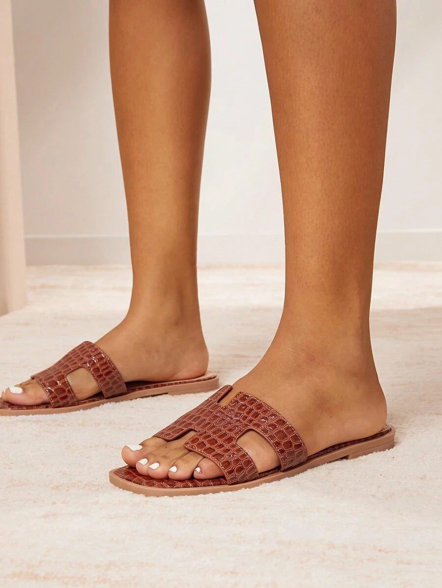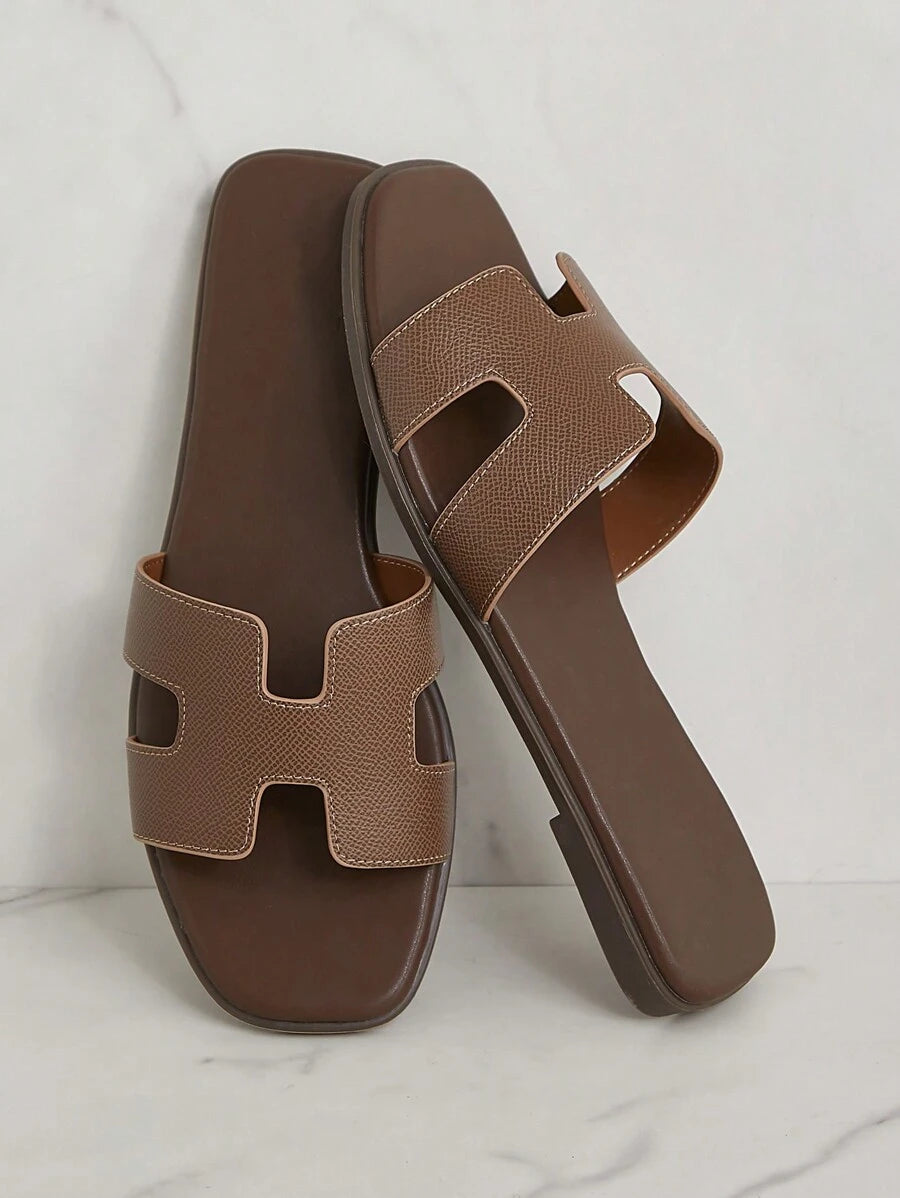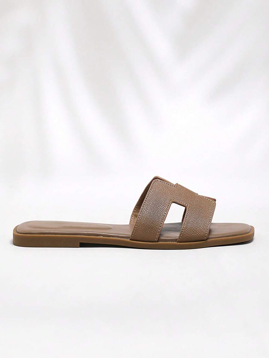 MIU All-Time Bestseller Women's Luxe-Inspired Harness Cutout Open Toe Minimalist Palm Print Pu Dark Olive Slides Spring Shoes Vacation Shoes Casual Shoes Beach Shoes Mother's Day Present
