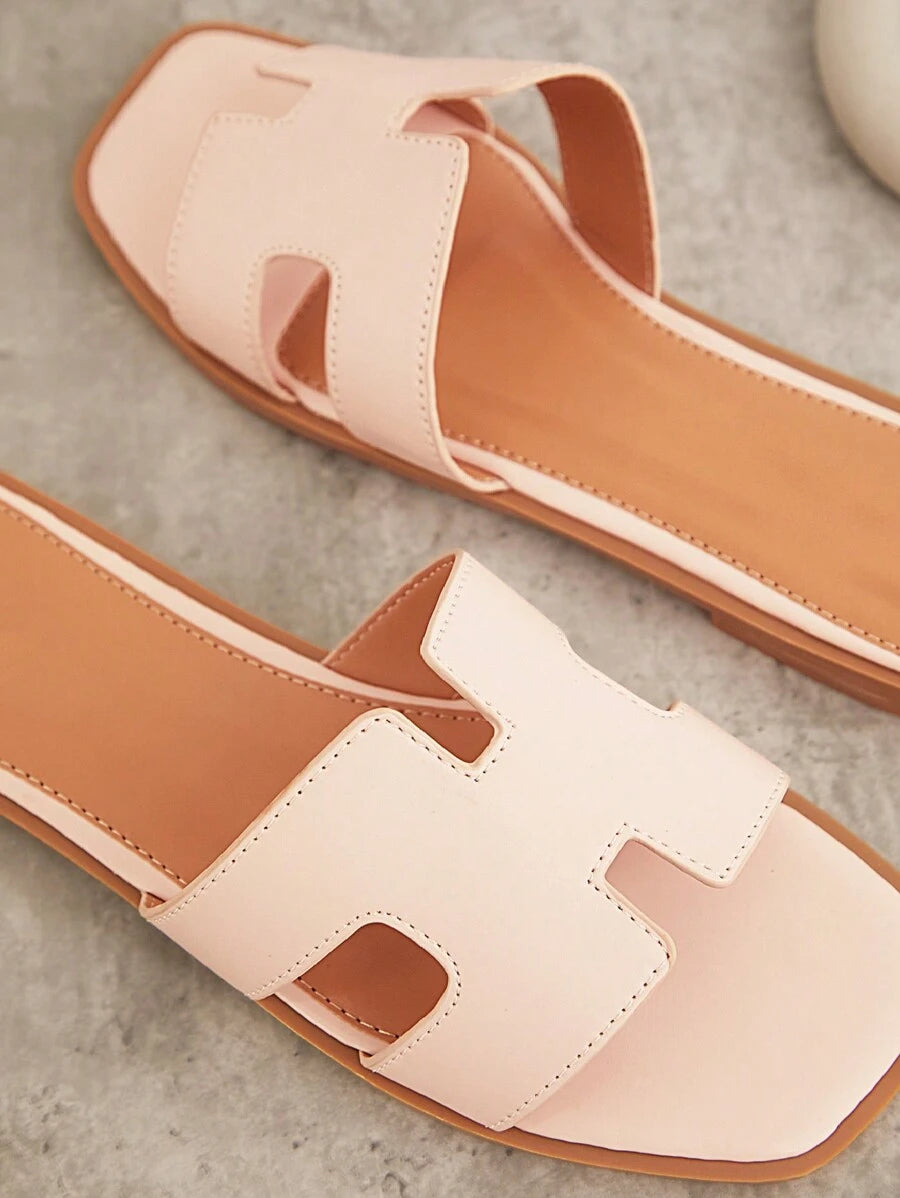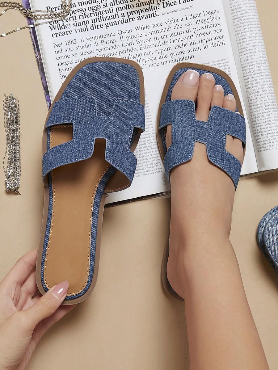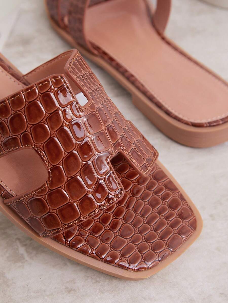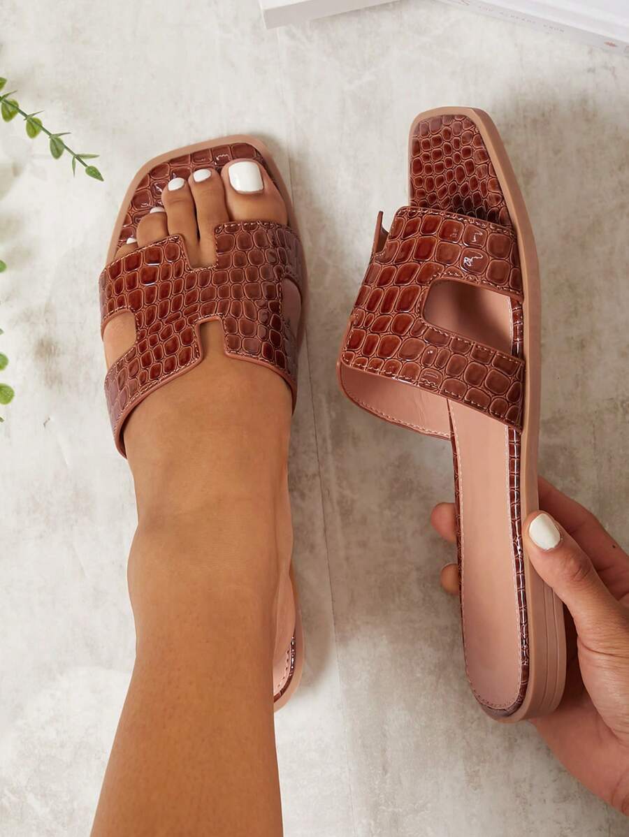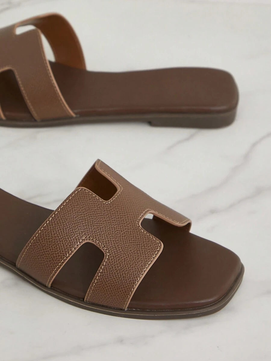 MIU All-Time Bestseller Women's Luxe-Inspired Harness Cutout Open Toe Minimalist Palm Print Pu Dark Olive Slides Spring Shoes Vacation Shoes Casual Shoes Beach Shoes Mother's Day Present