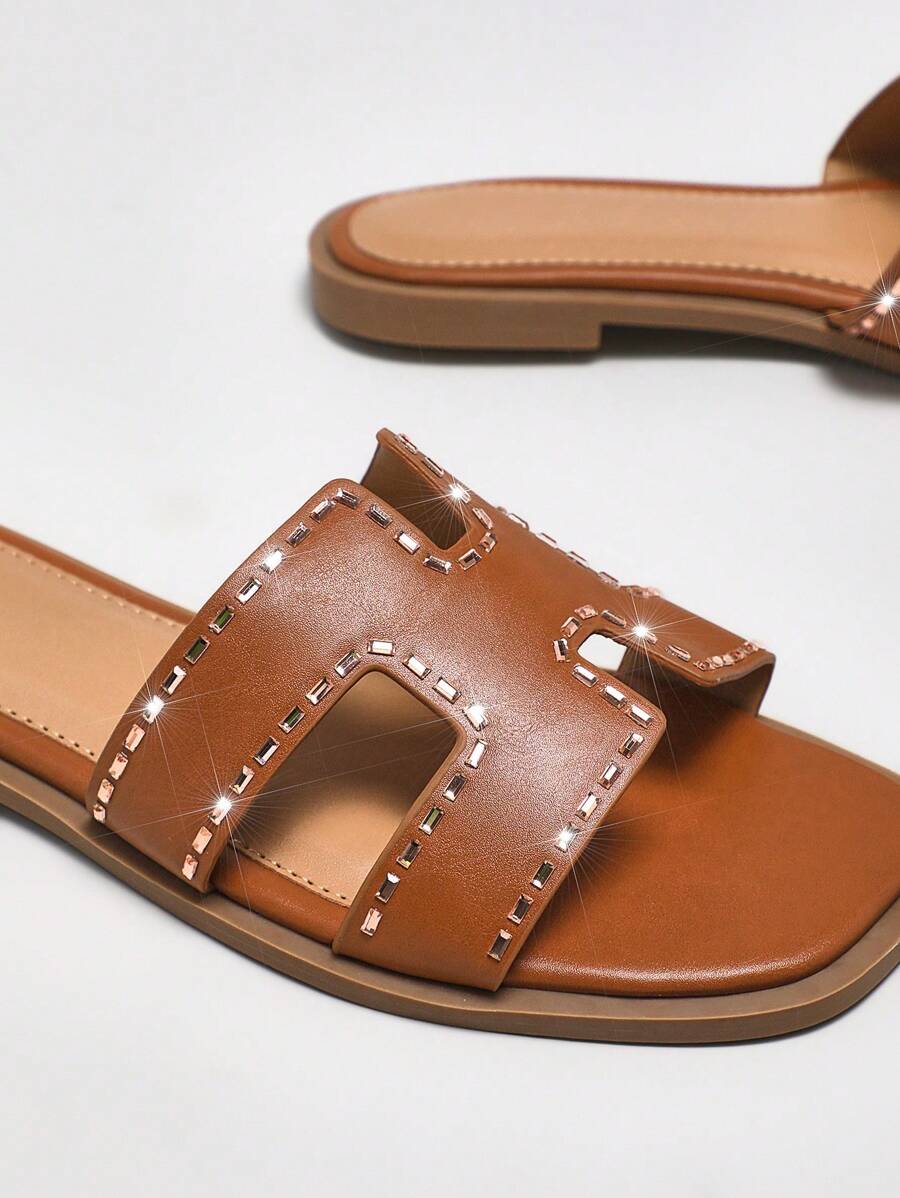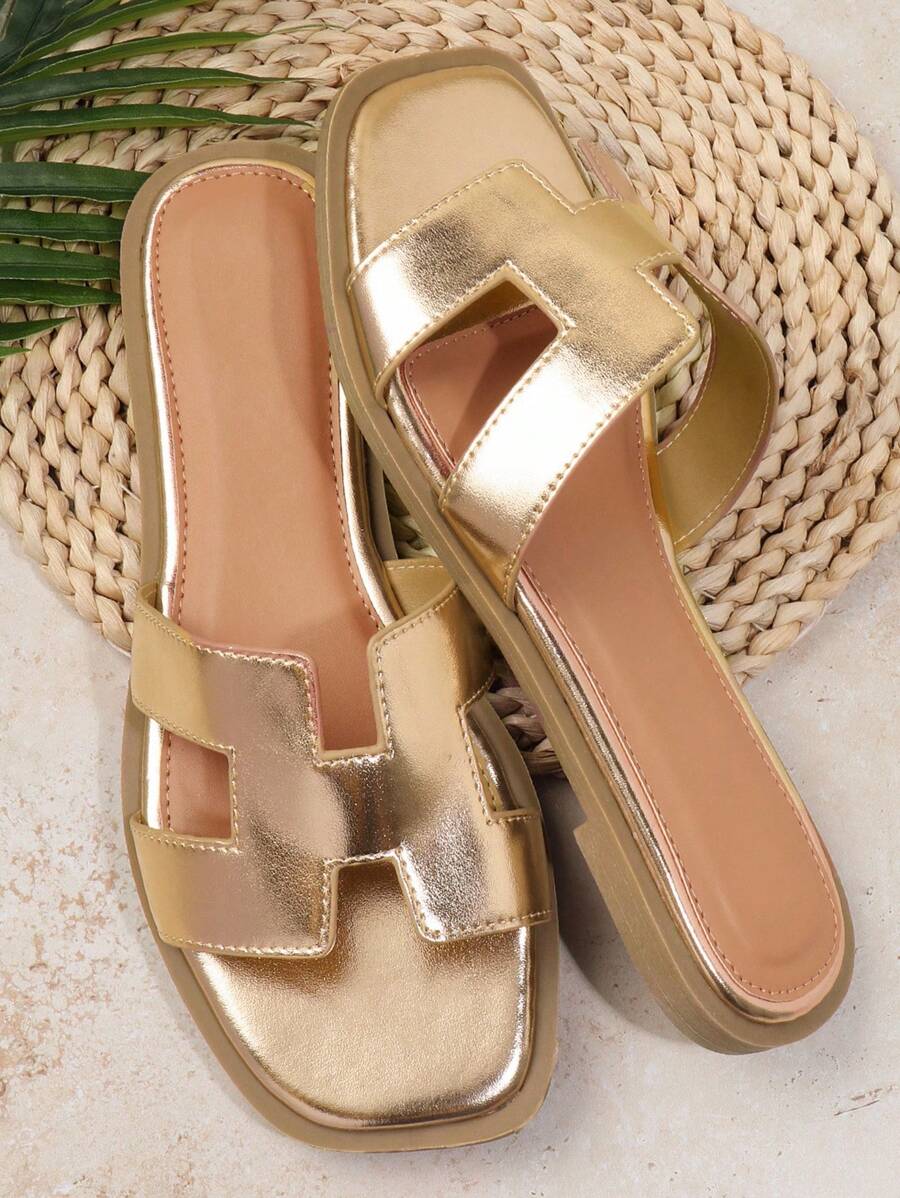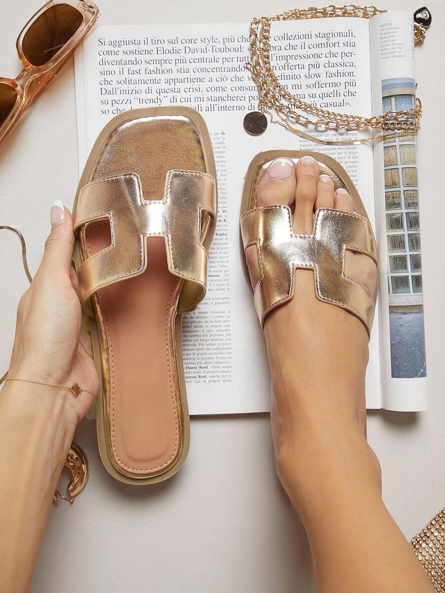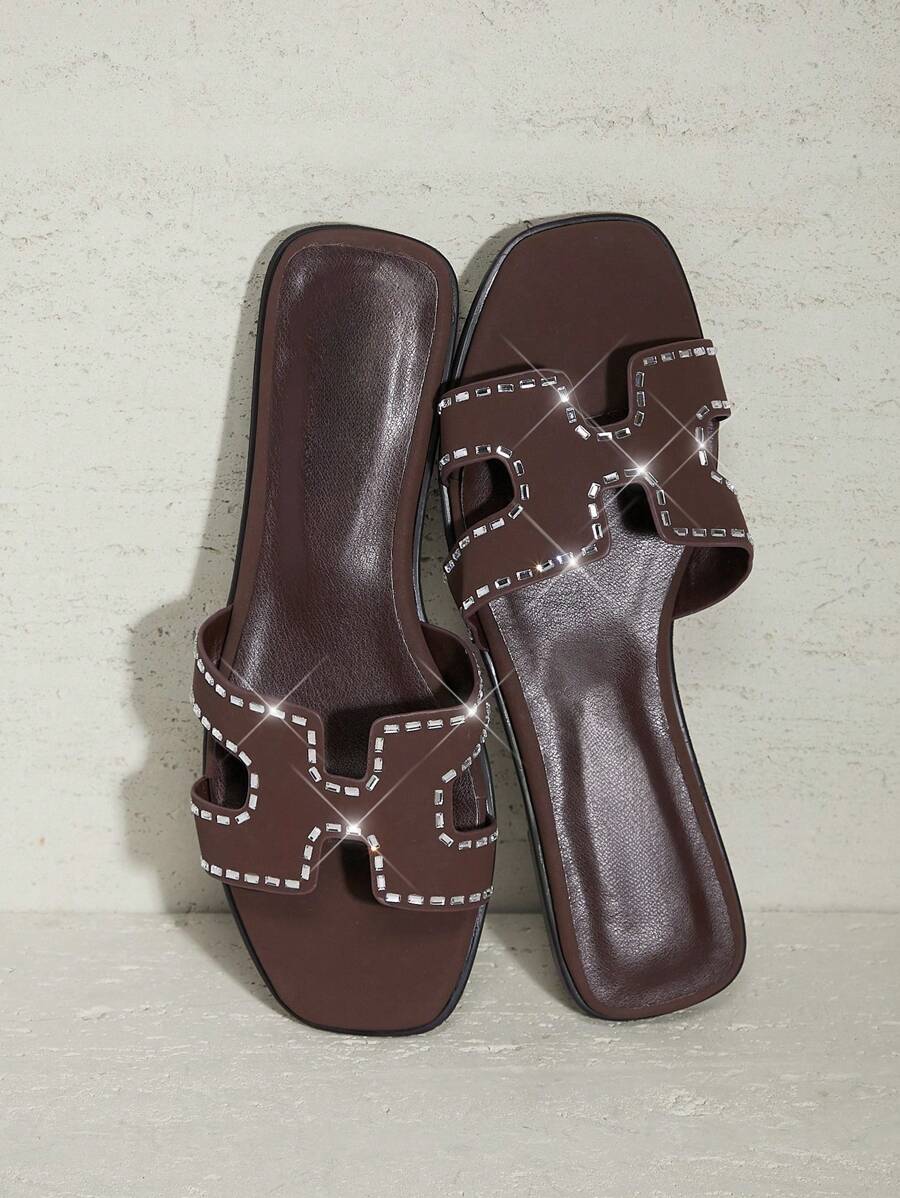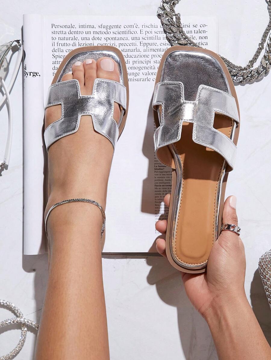 MIU All-Time Bestseller Women's Luxe-Inspired Harness Cutout Open Toe Minimalist Palm Print Pu Dark Olive Slides Spring Shoes Vacation Shoes Casual Shoes Beach Shoes Mother's Day Present