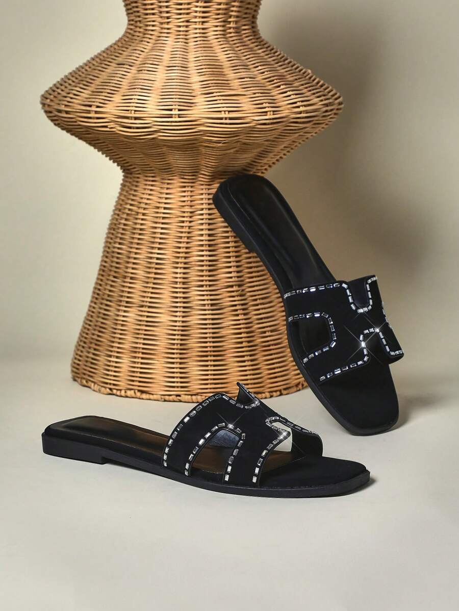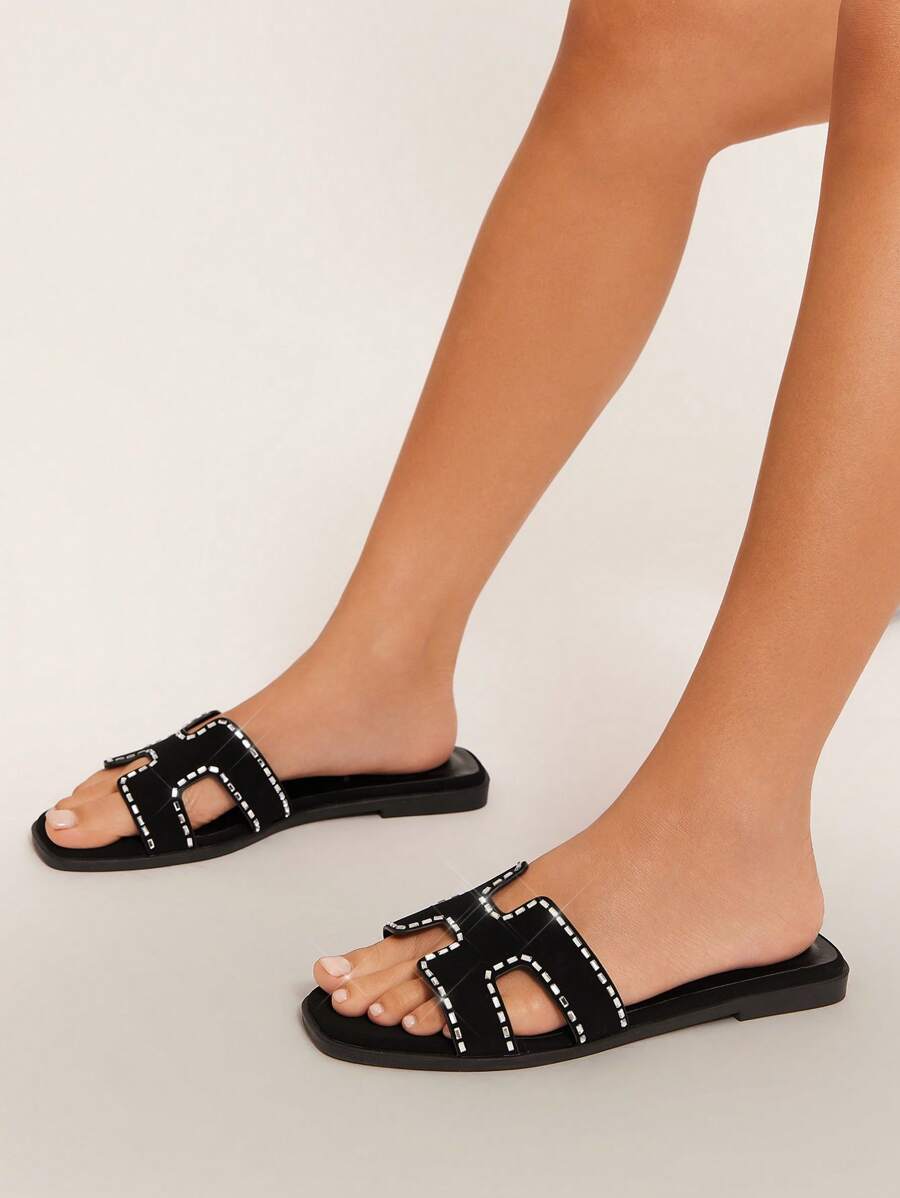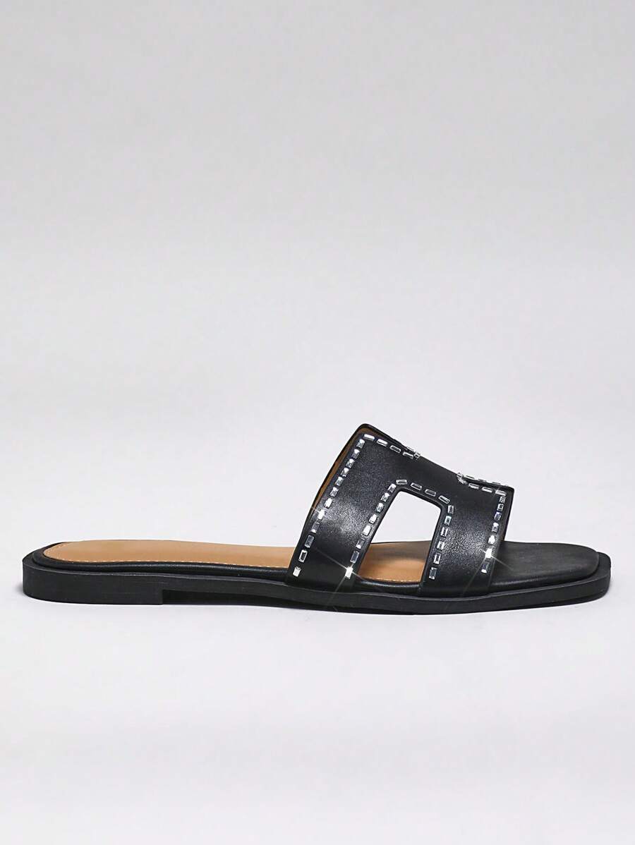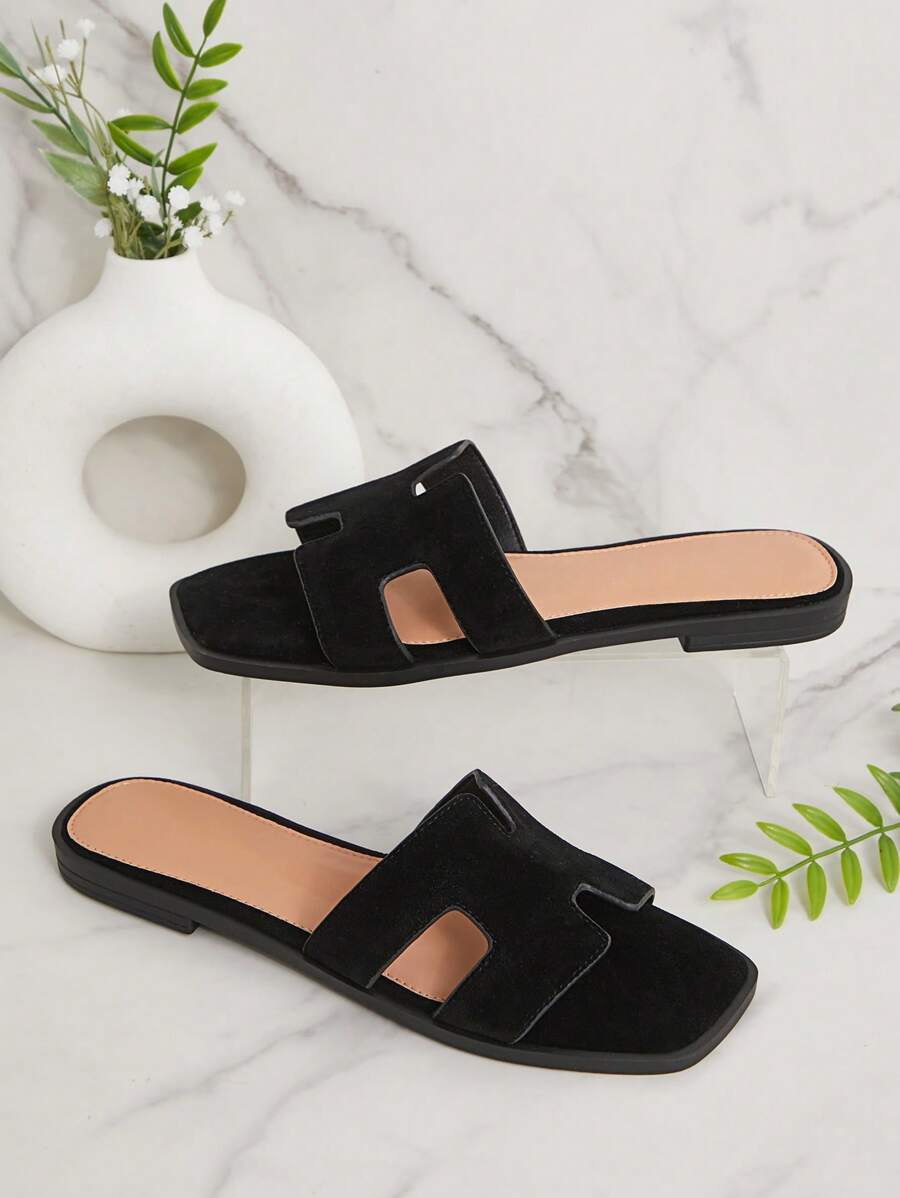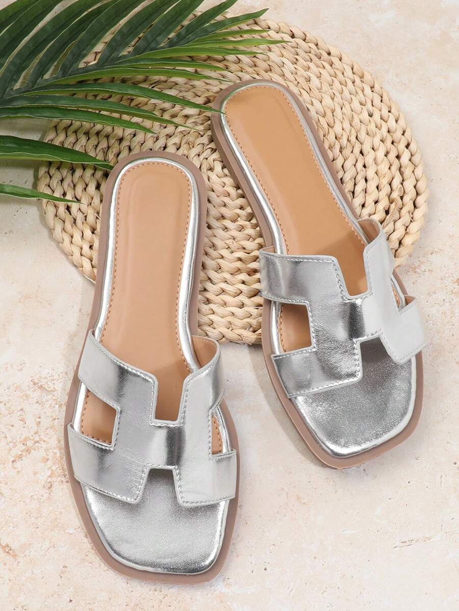 MIU All-Time Bestseller Women's Luxe-Inspired Harness Cutout Open Toe Minimalist Palm Print Pu Dark Olive Slides Spring Shoes Vacation Shoes Casual Shoes Beach Shoes Mother's Day Present