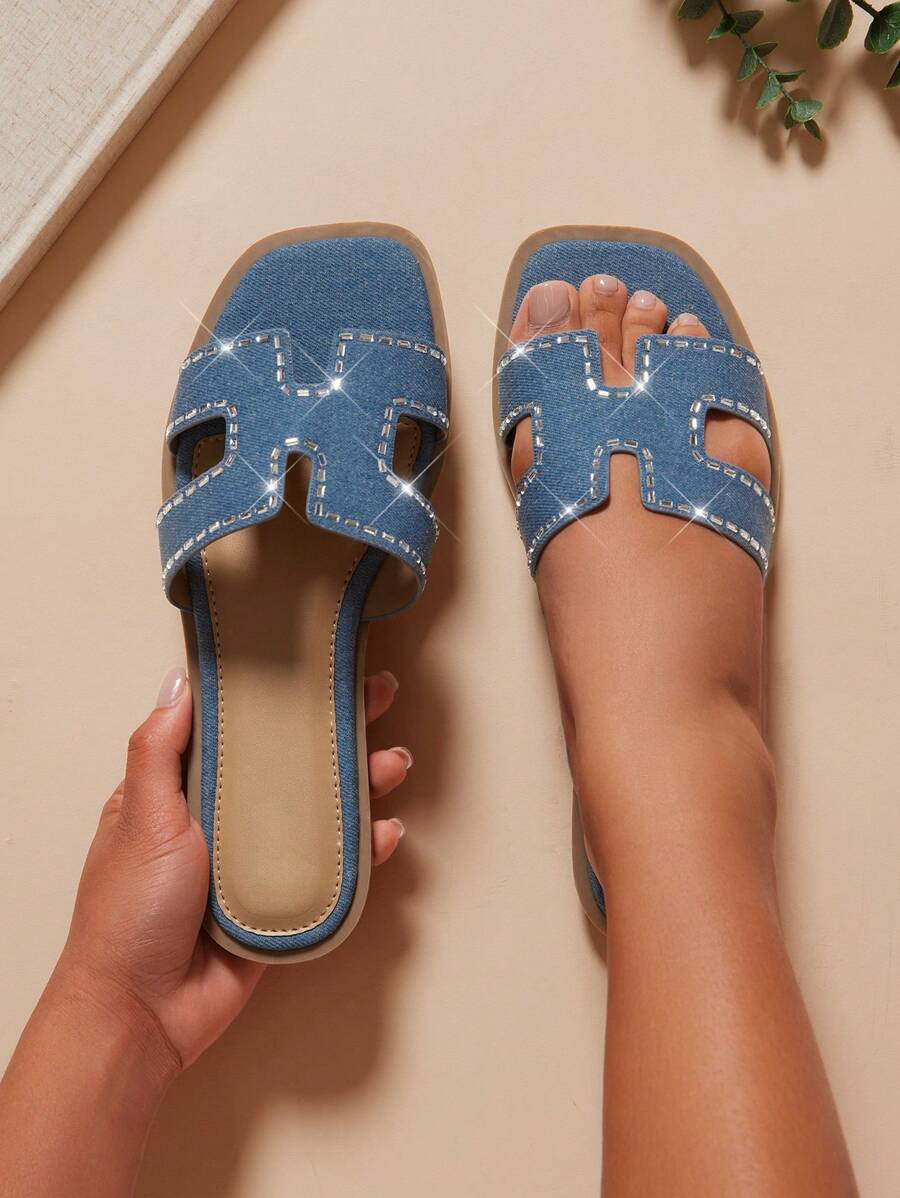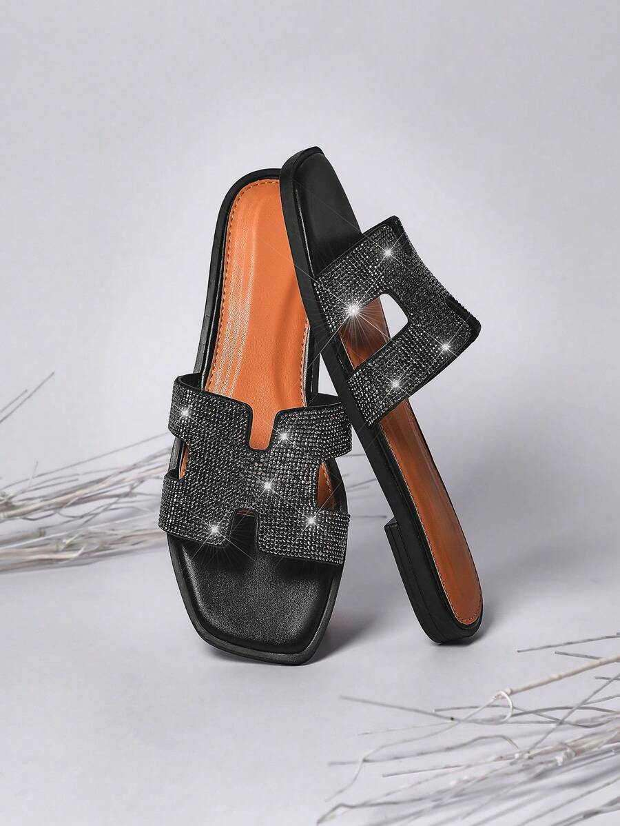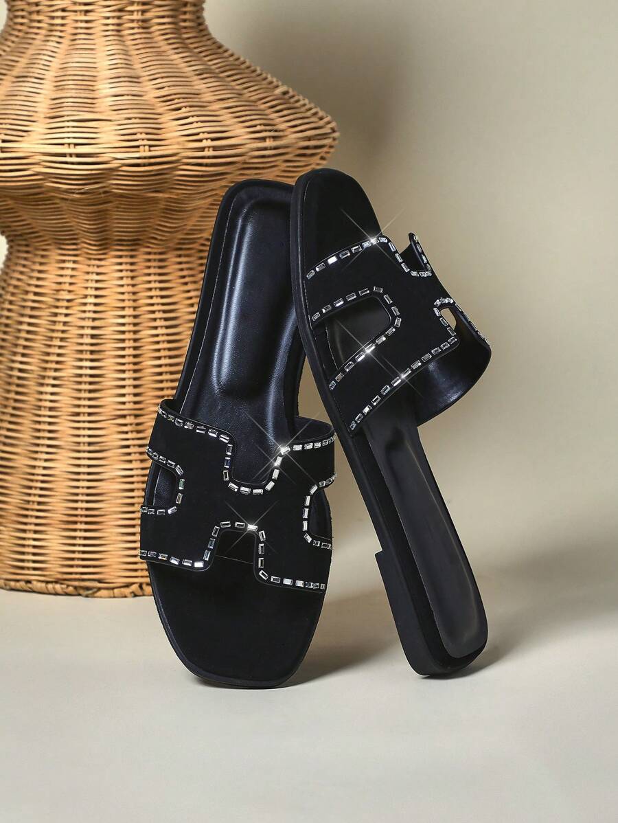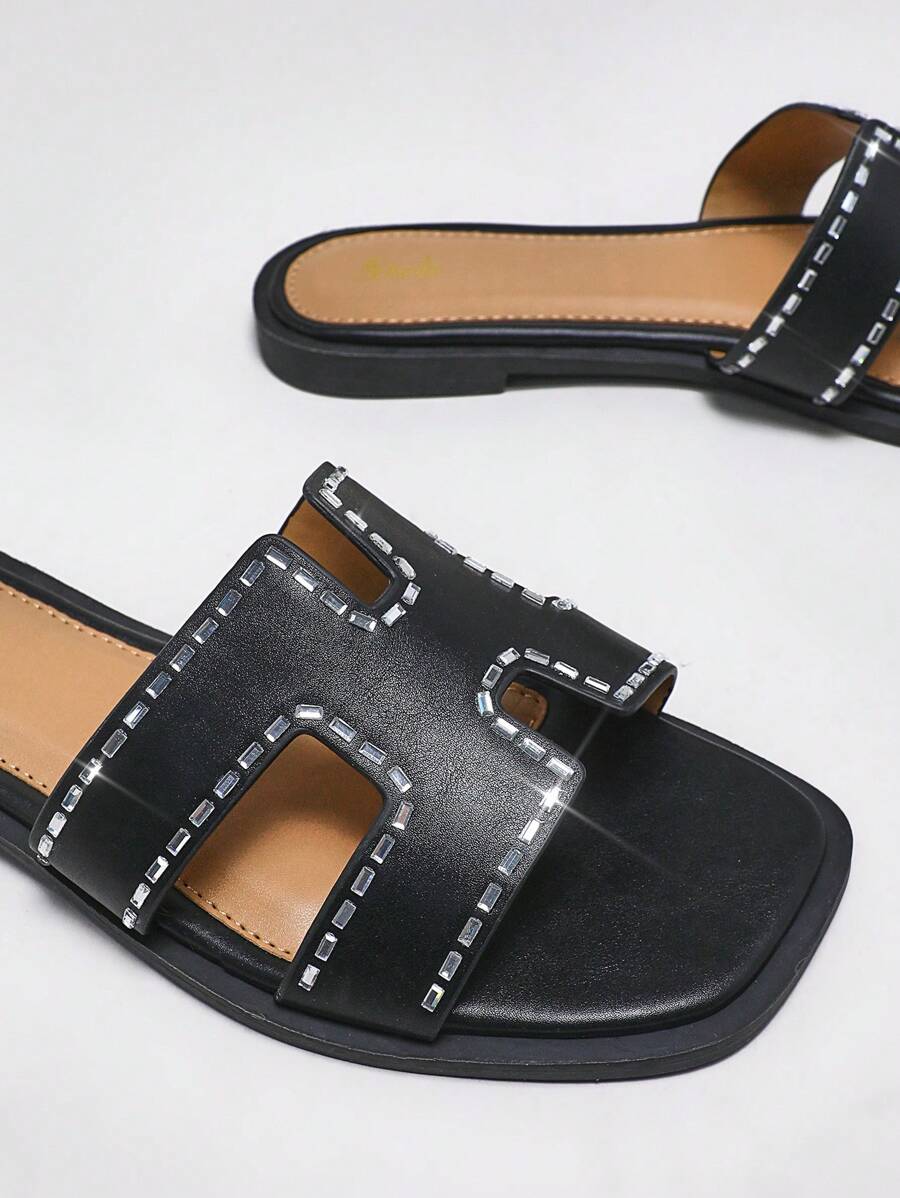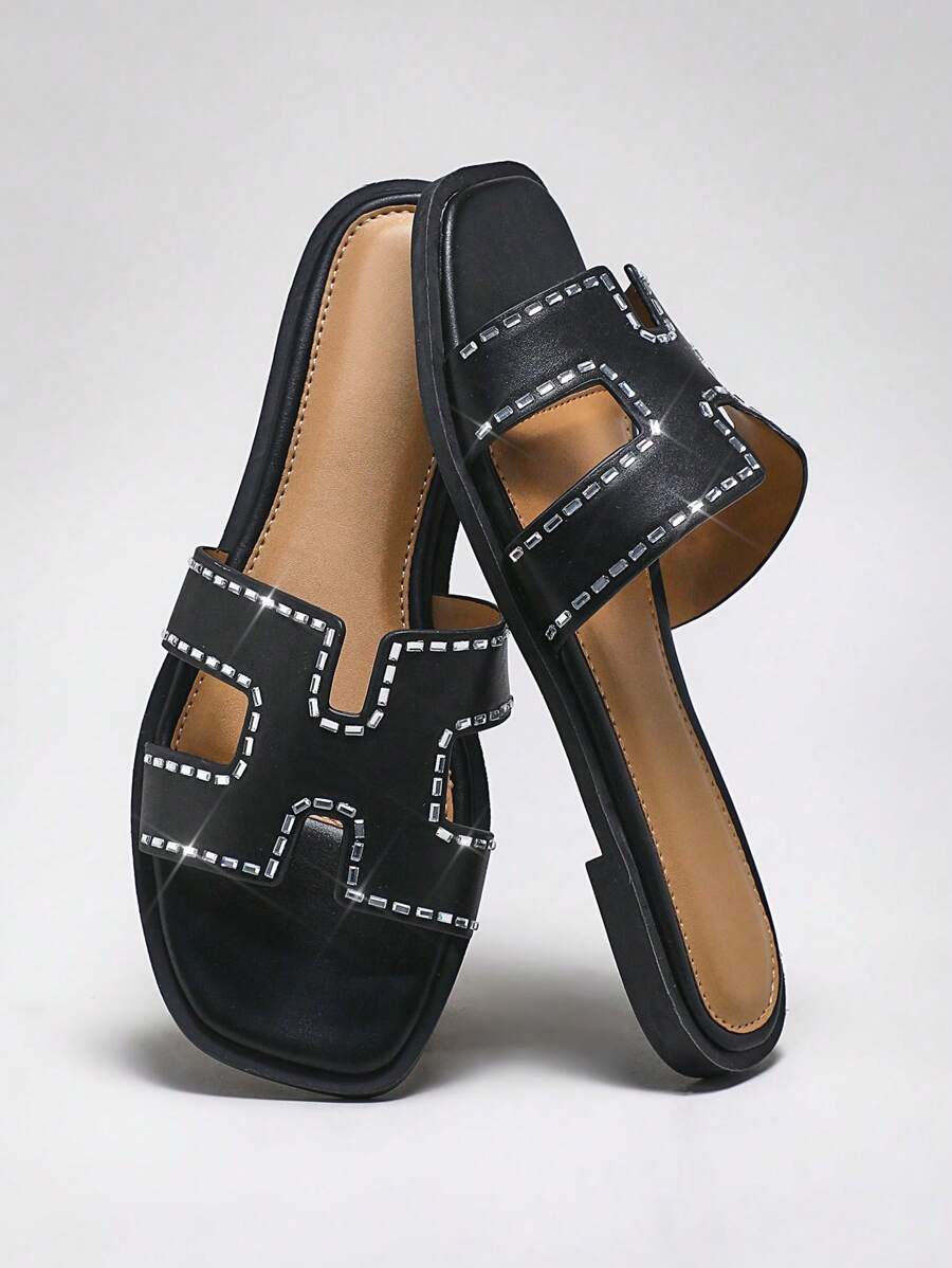 MIU All-Time Bestseller Women's Luxe-Inspired Harness Cutout Open Toe Minimalist Palm Print Pu Dark Olive Slides Spring Shoes Vacation Shoes Casual Shoes Beach Shoes Mother's Day Present