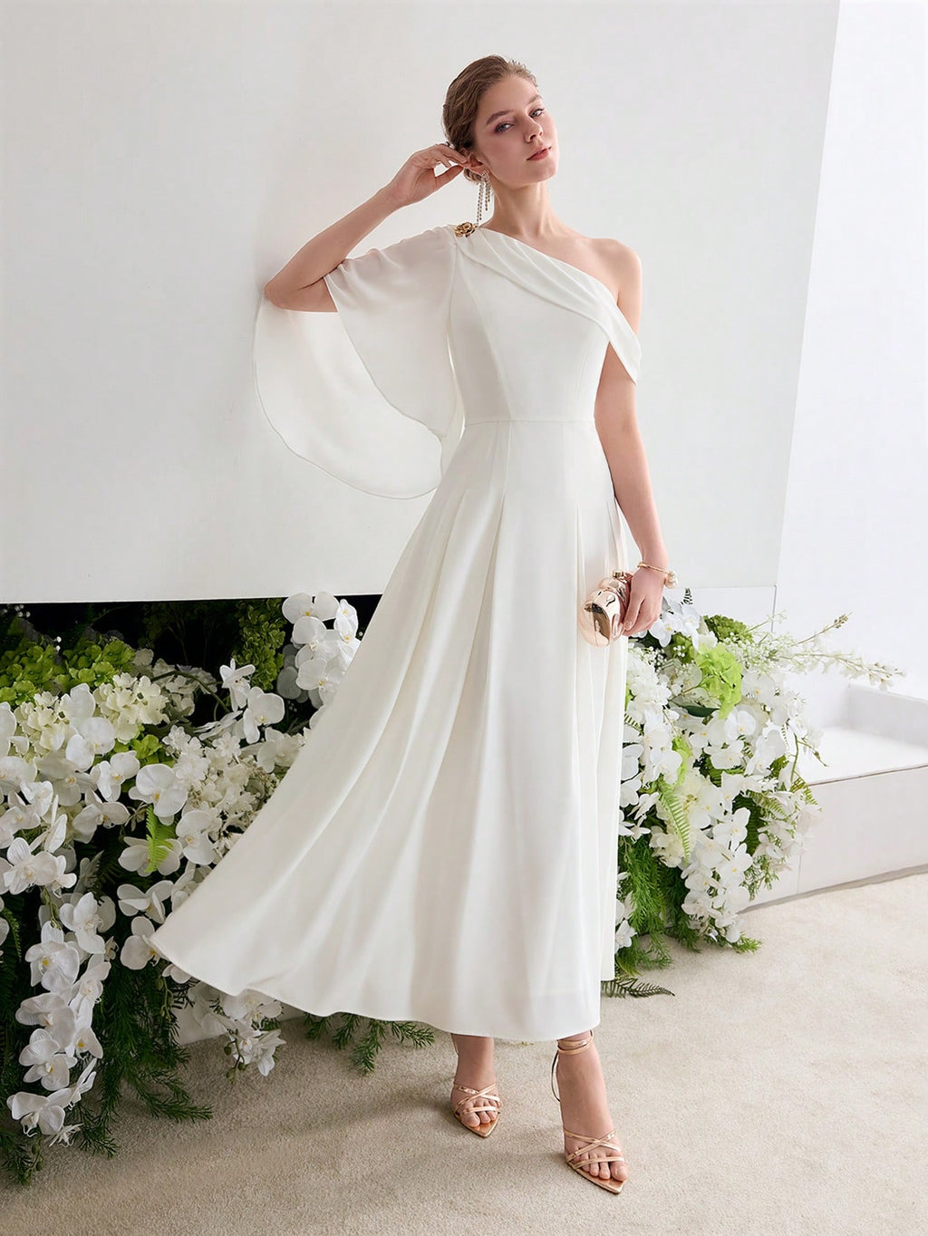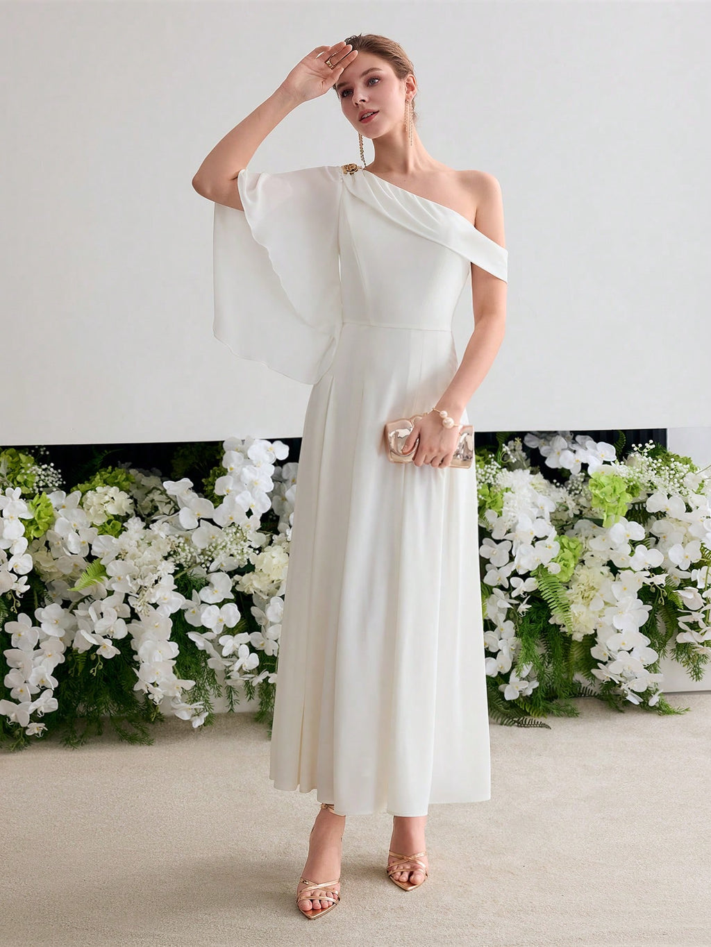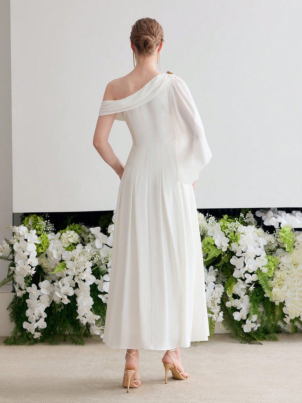 MIU ASYMMETRICAL NECK FOLD PLEATED COCKTAIL DRESS