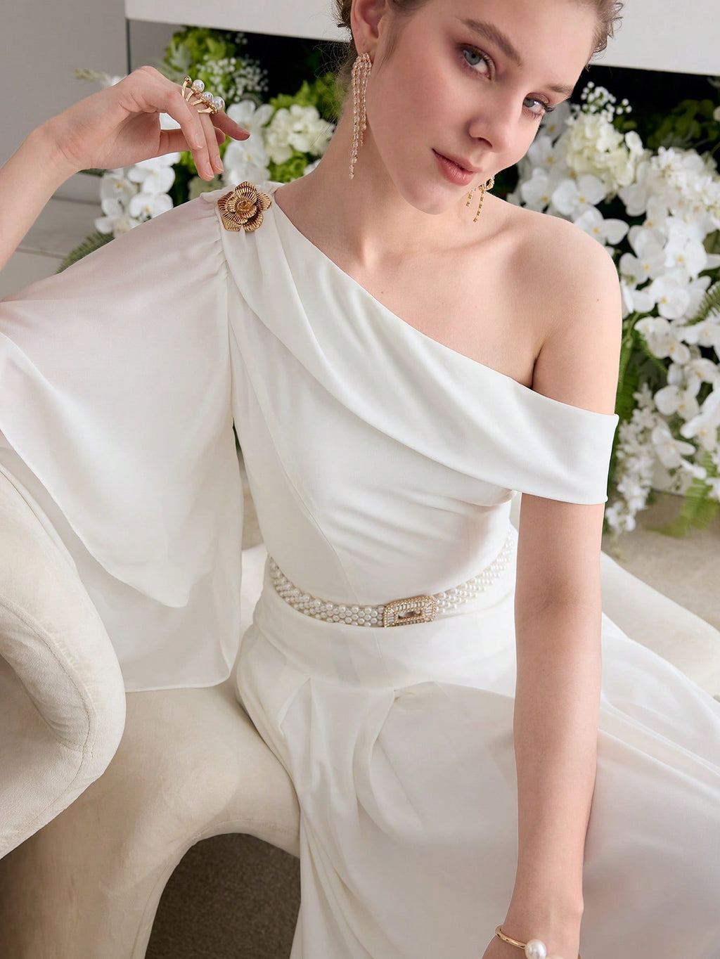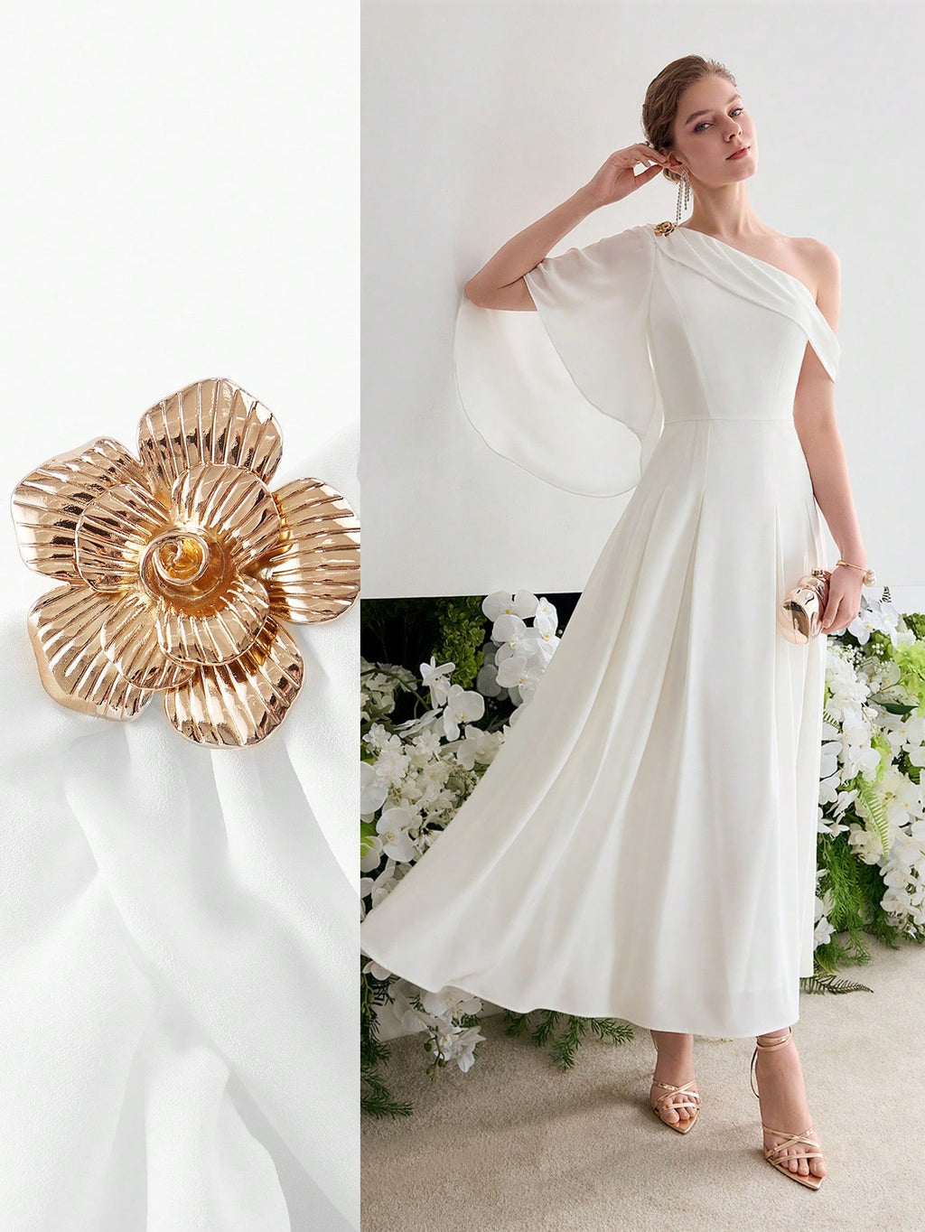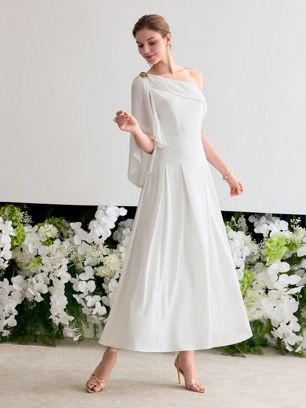 MIU ASYMMETRICAL NECK FOLD PLEATED COCKTAIL DRESS