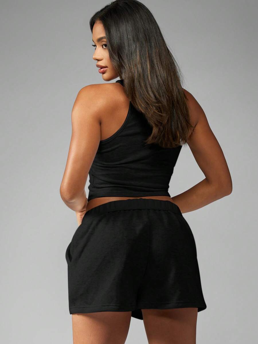 MIU Athletic Drawstring Sweat Shorts Loungewear ComFortable High Waist Running Workout Jogging Exercise Athleisure Summer Sport Training Shorts With Pockets