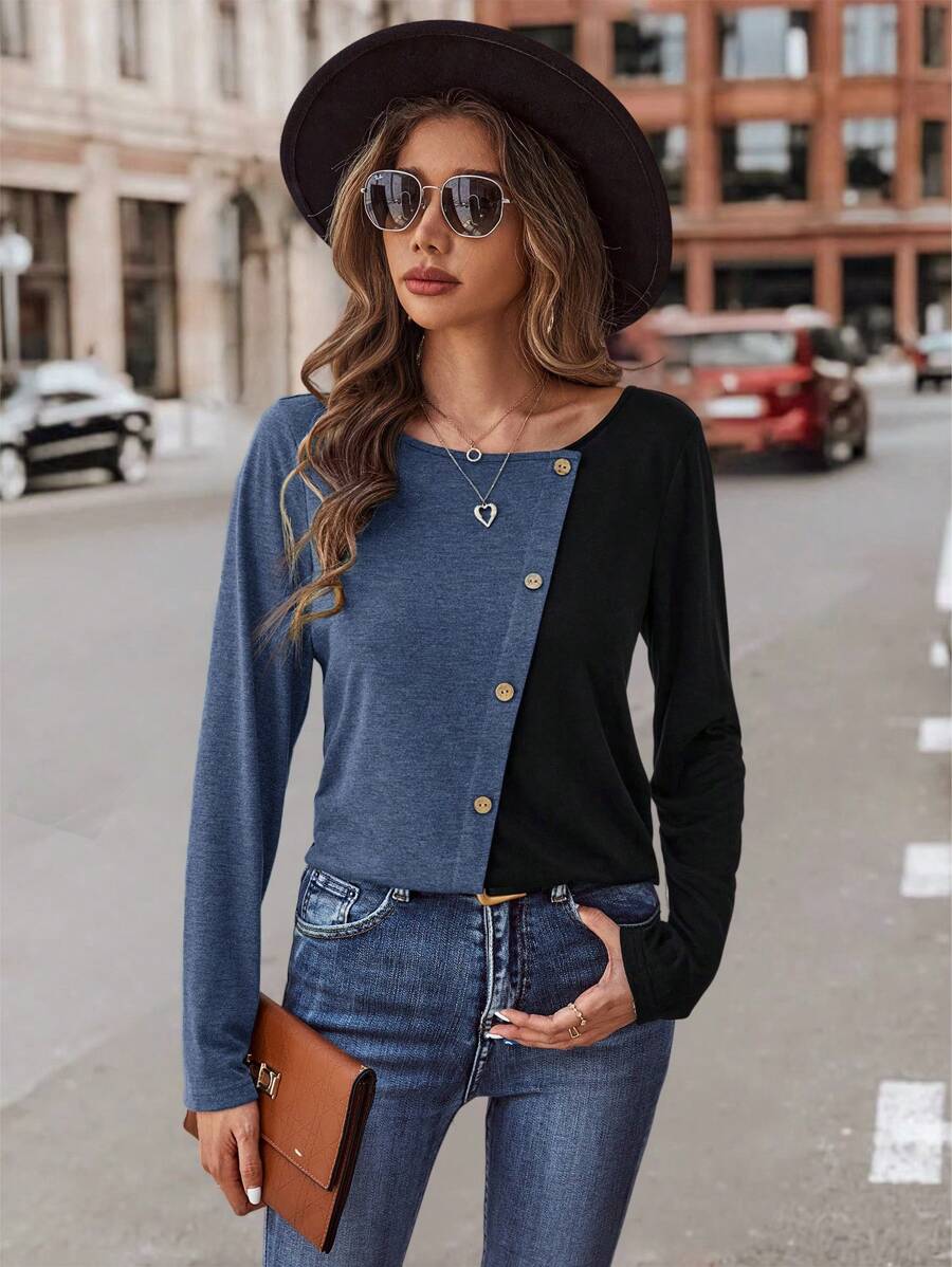 MIU AZRA Dvodijelni Puknuti Detalj Trič Džemper sa Asimetričnim Džepom za Žene sa Dugim Rukavima