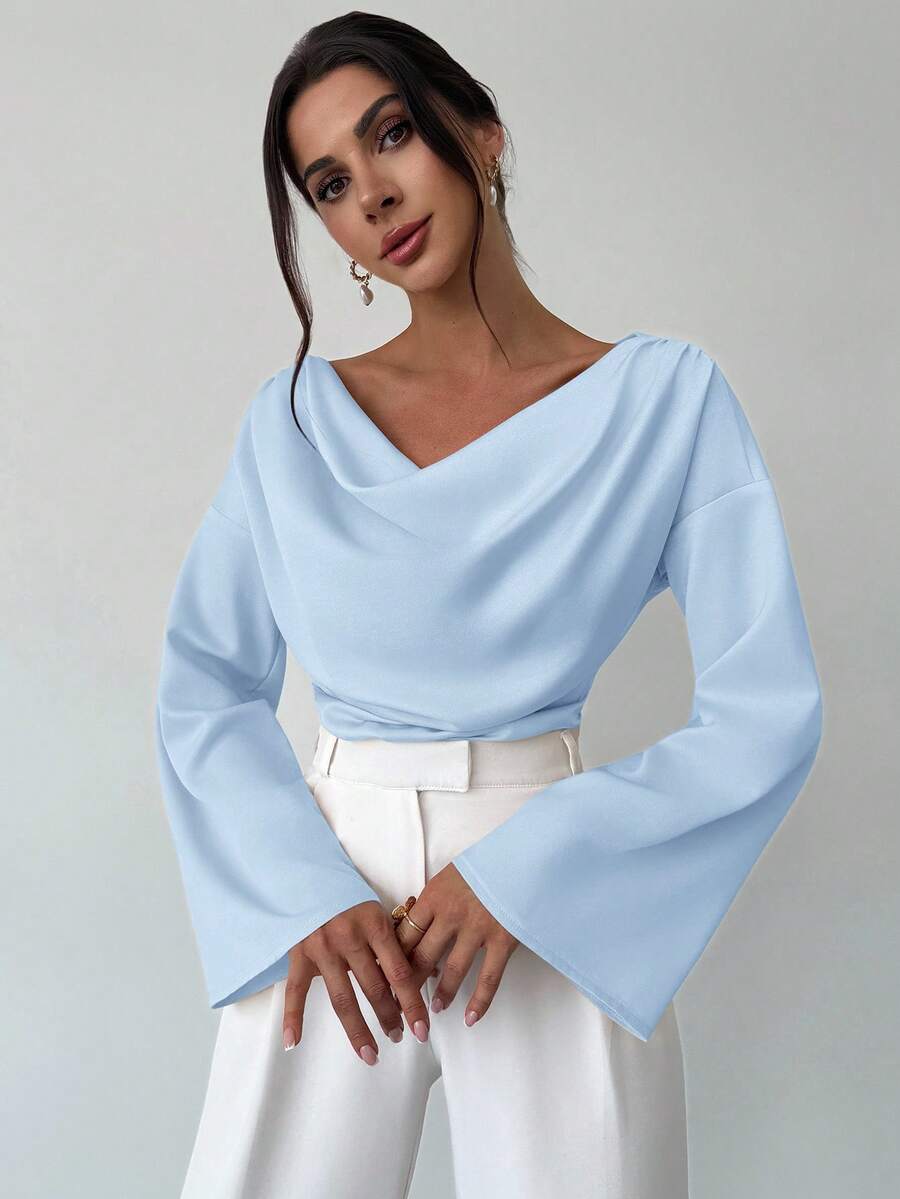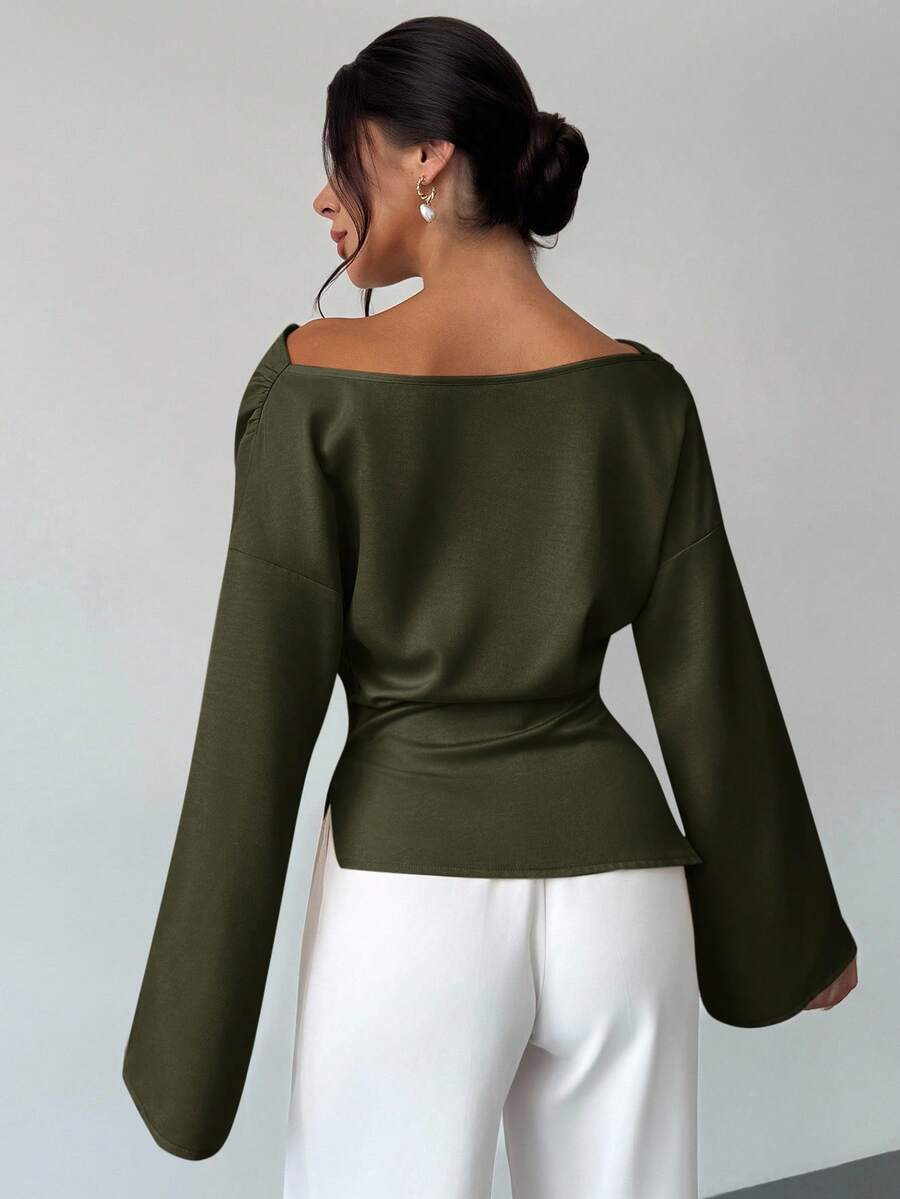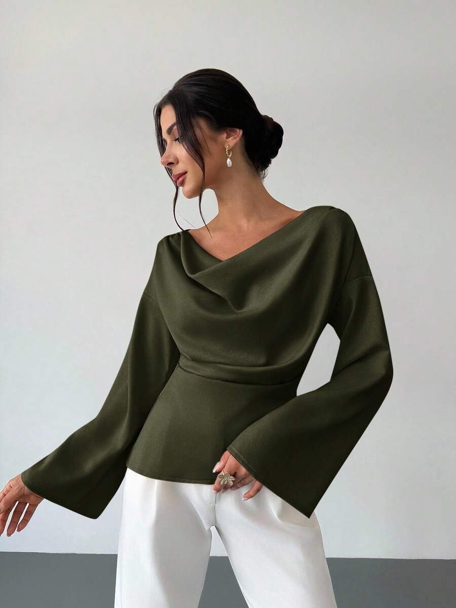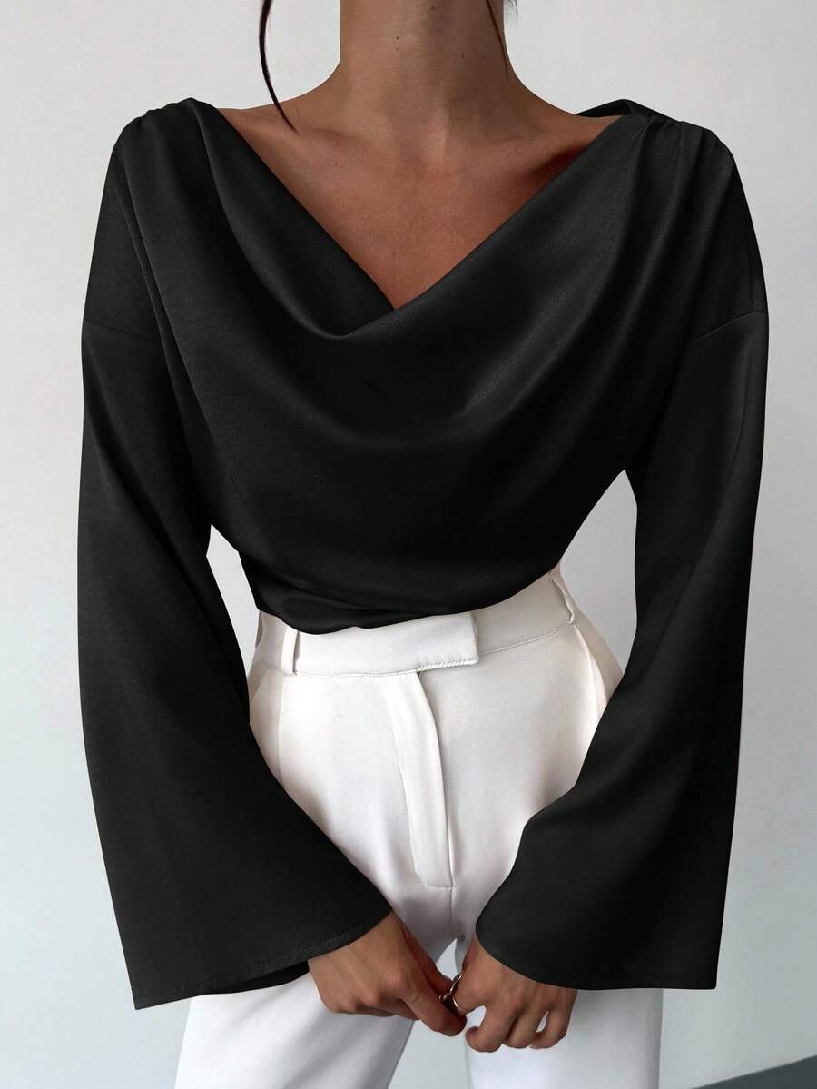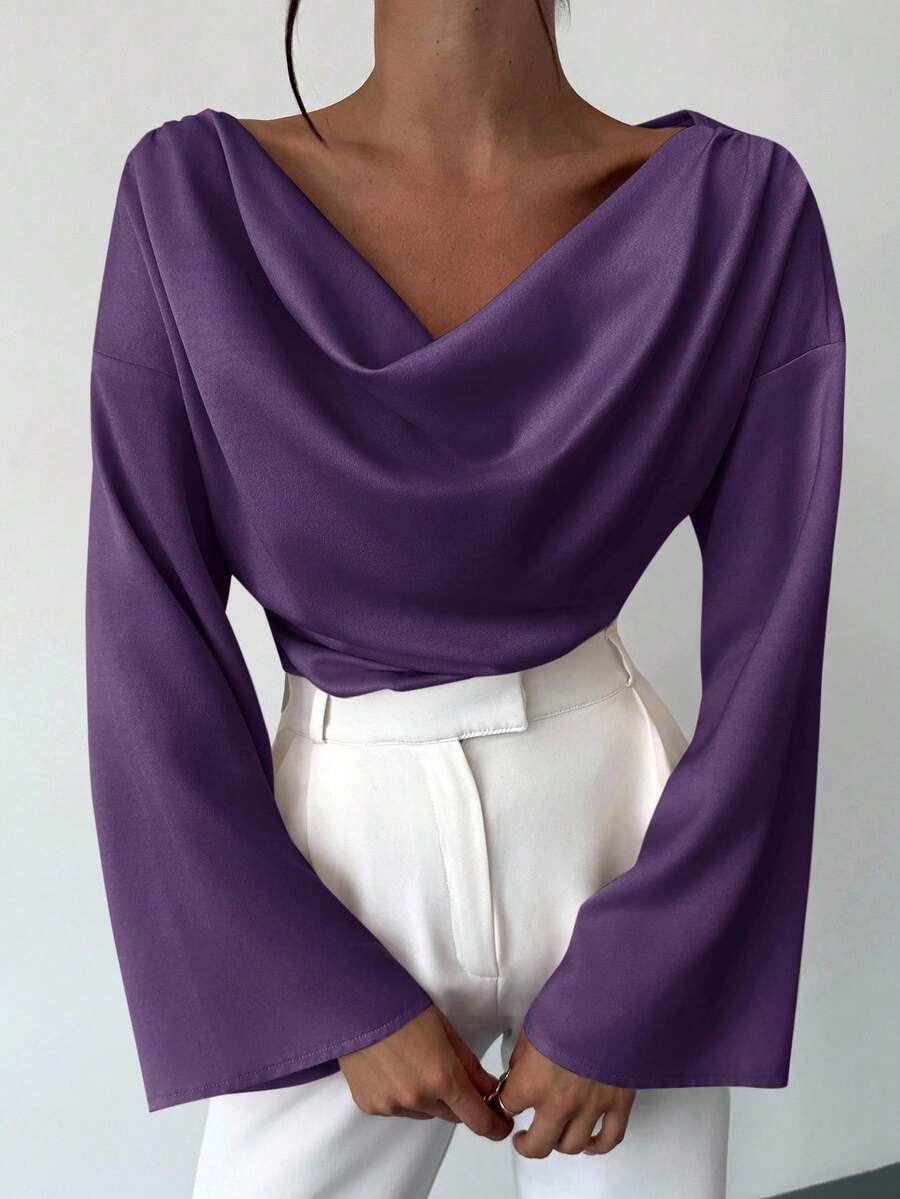 MIU AZRA Firerie Bluzica s Ovratnikom i Rukavima s Odozgo, Minimalistički Elegantna Bluzica za Svakodnevno Nošenje