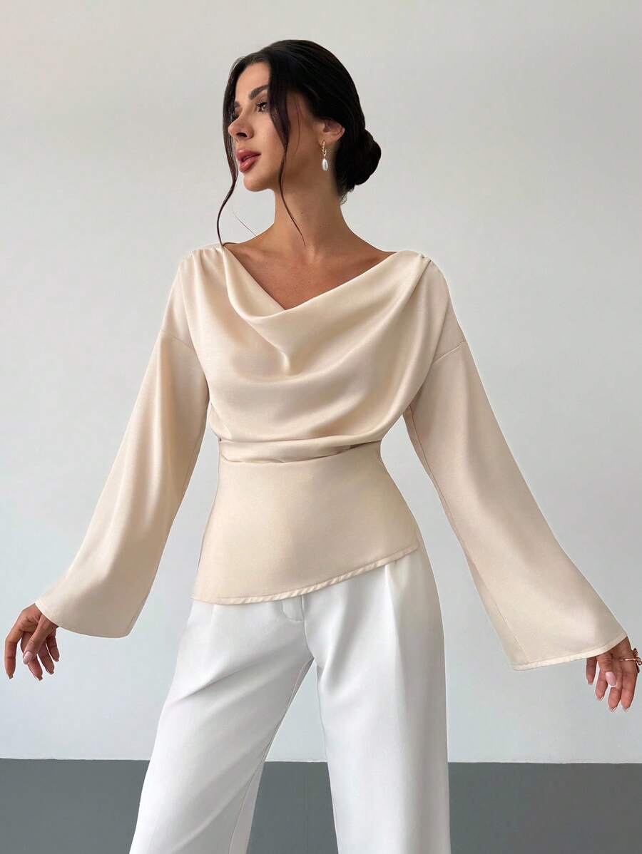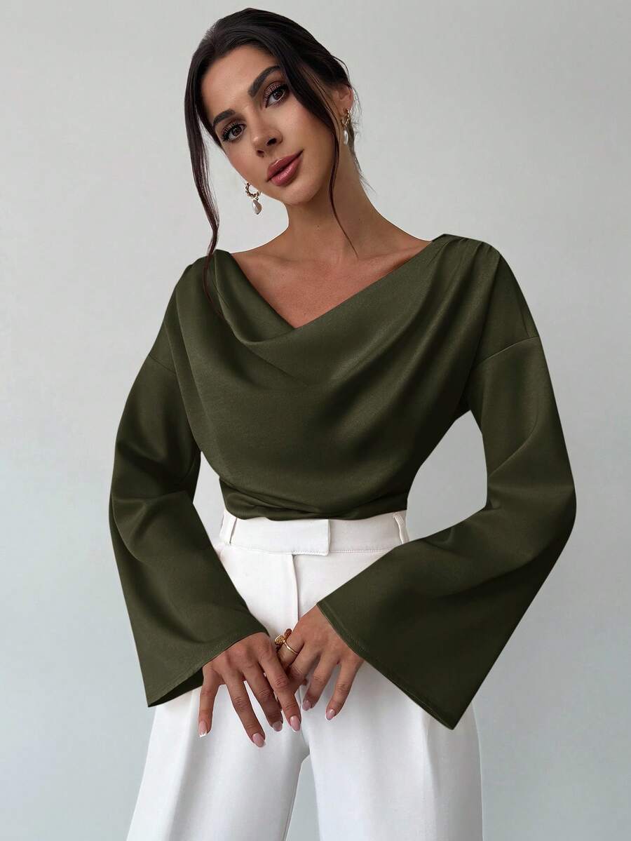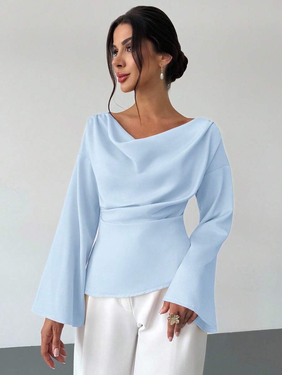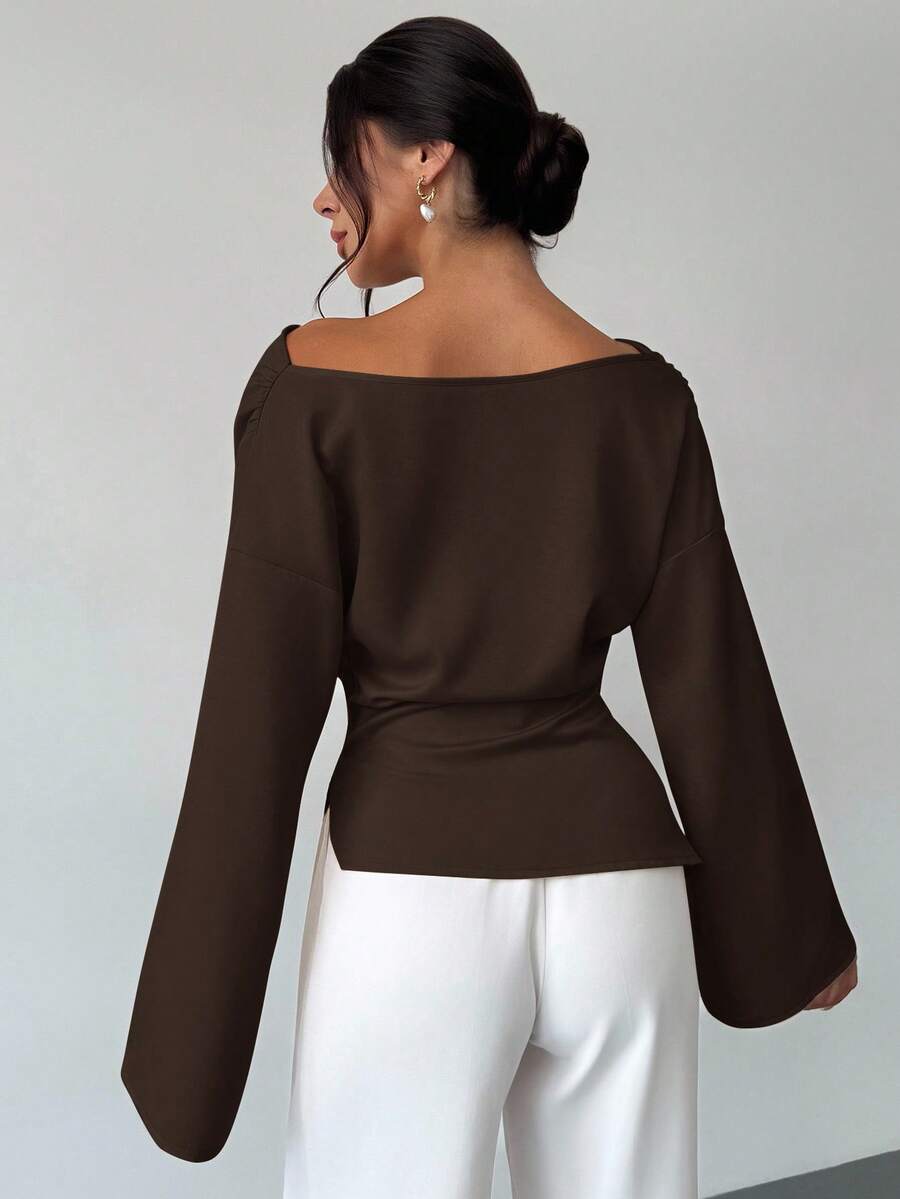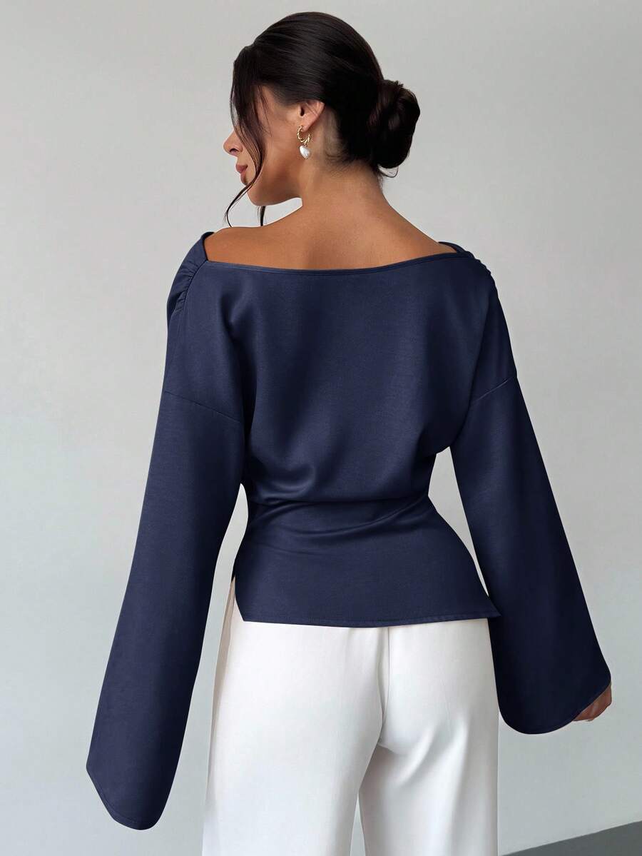 MIU AZRA Firerie Bluzica s Ovratnikom i Rukavima s Odozgo, Minimalistički Elegantna Bluzica za Svakodnevno Nošenje
