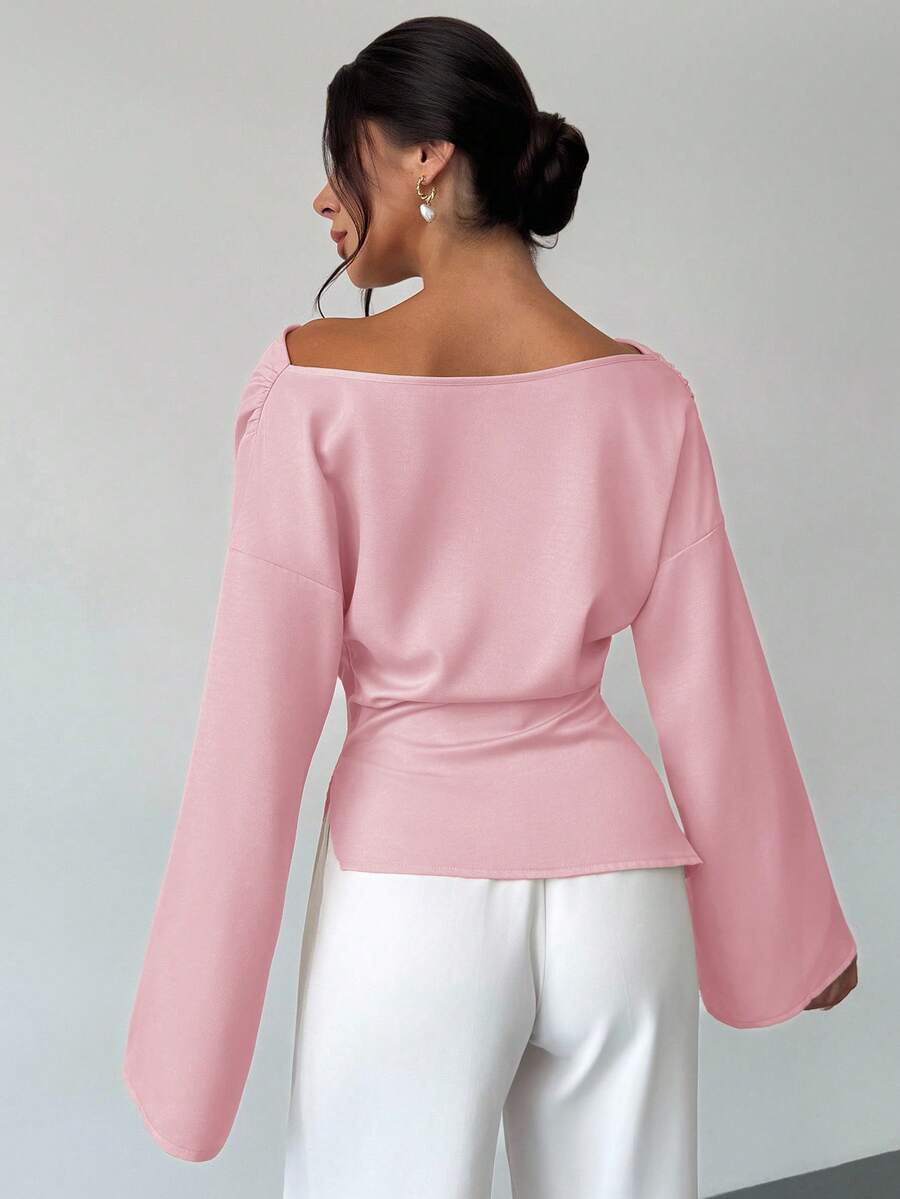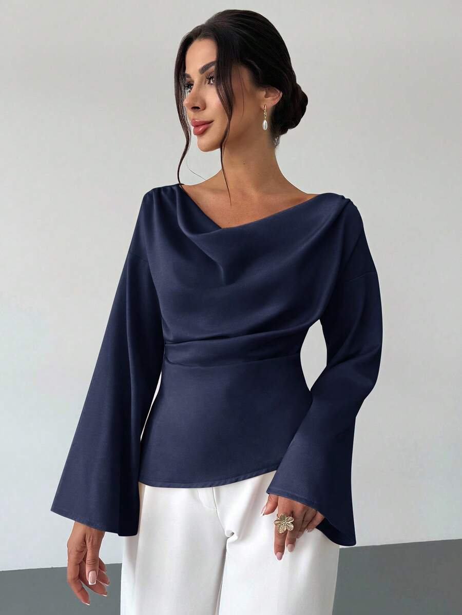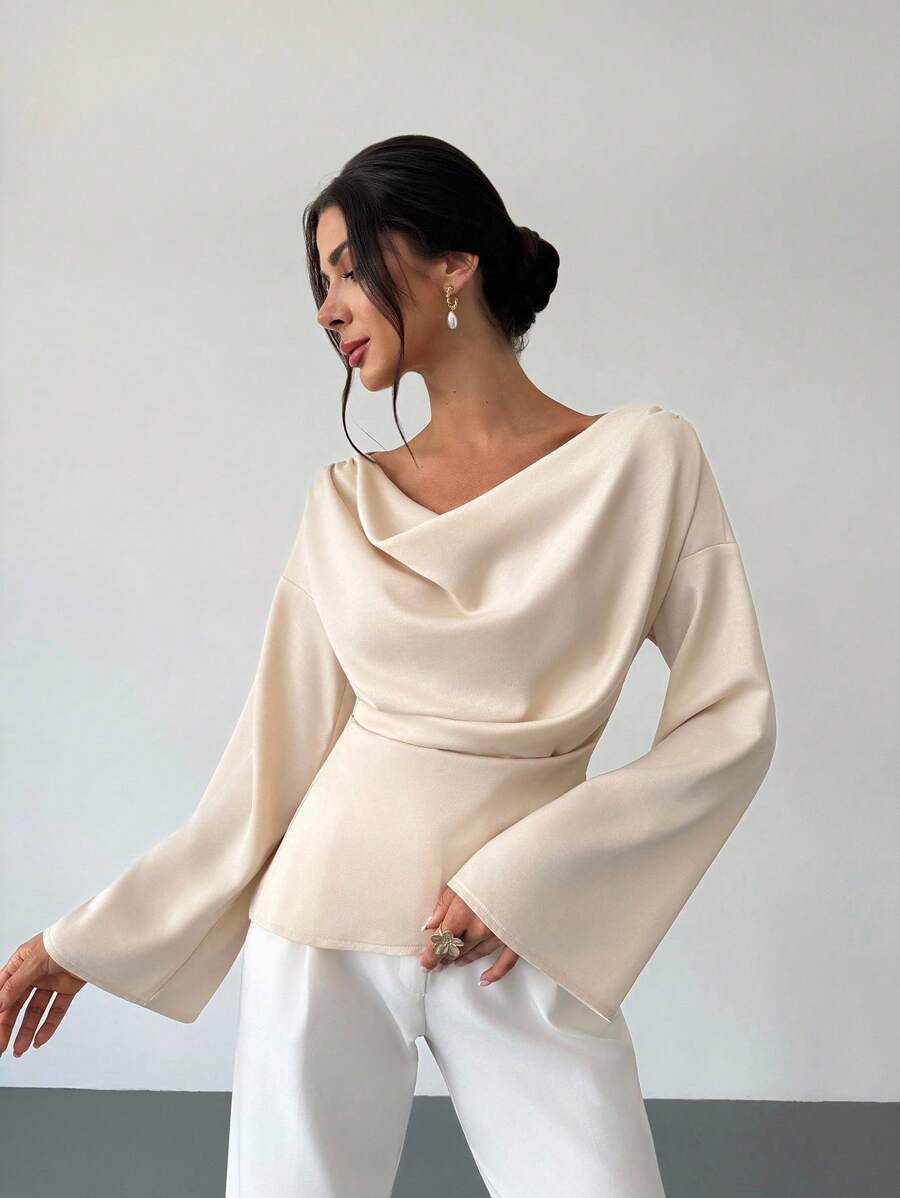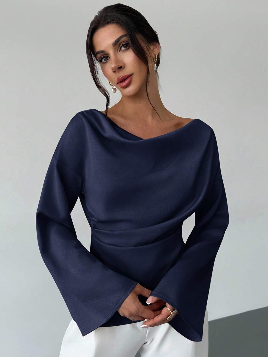 MIU AZRA Firerie Bluzica s Ovratnikom i Rukavima s Odozgo, Minimalistički Elegantna Bluzica za Svakodnevno Nošenje