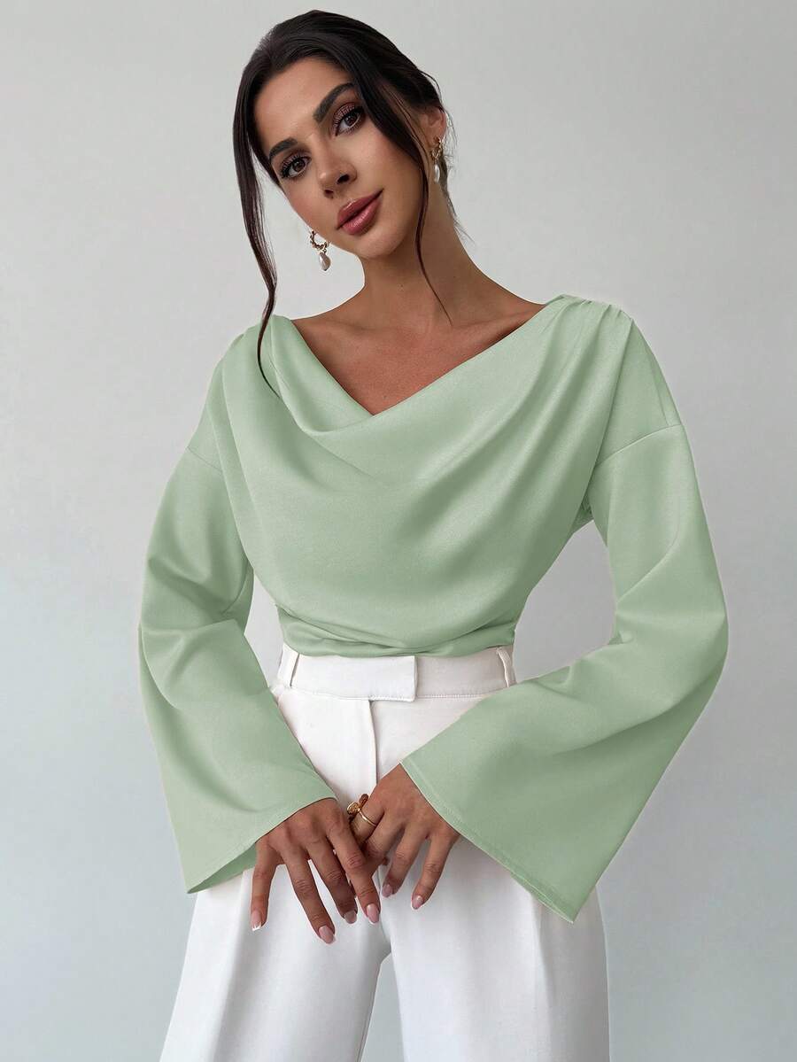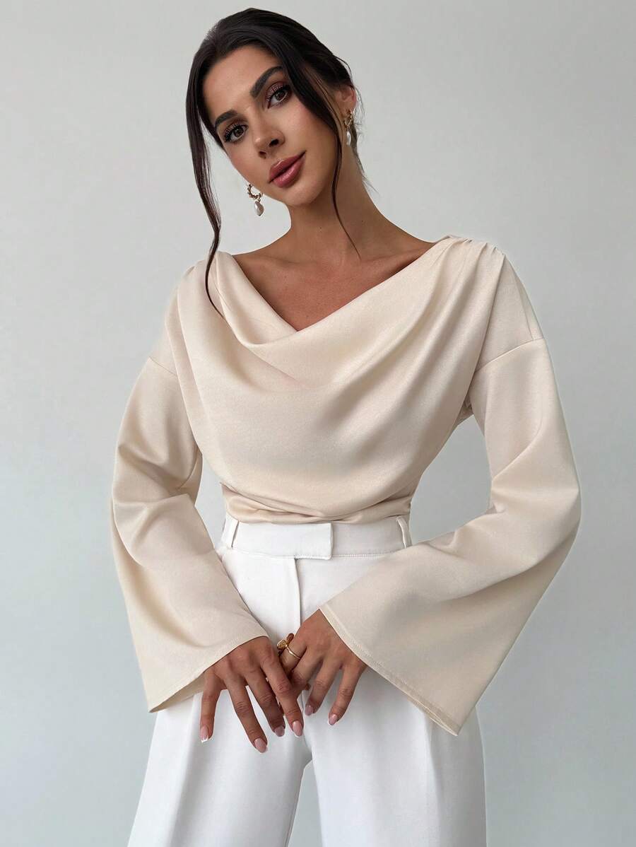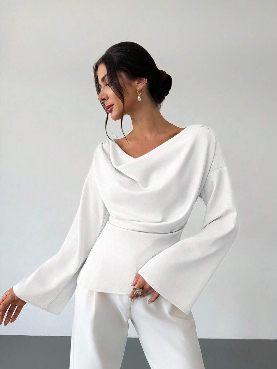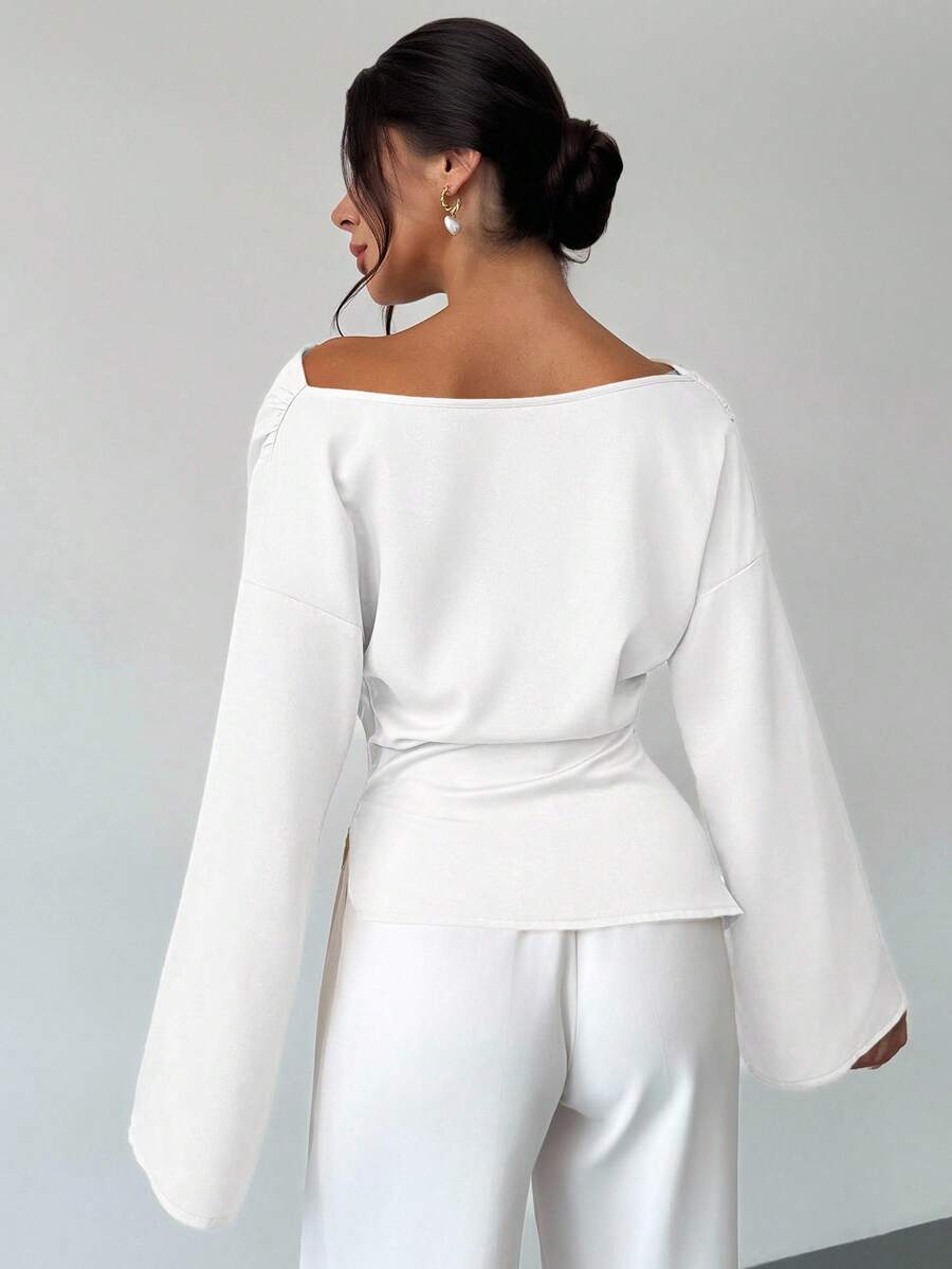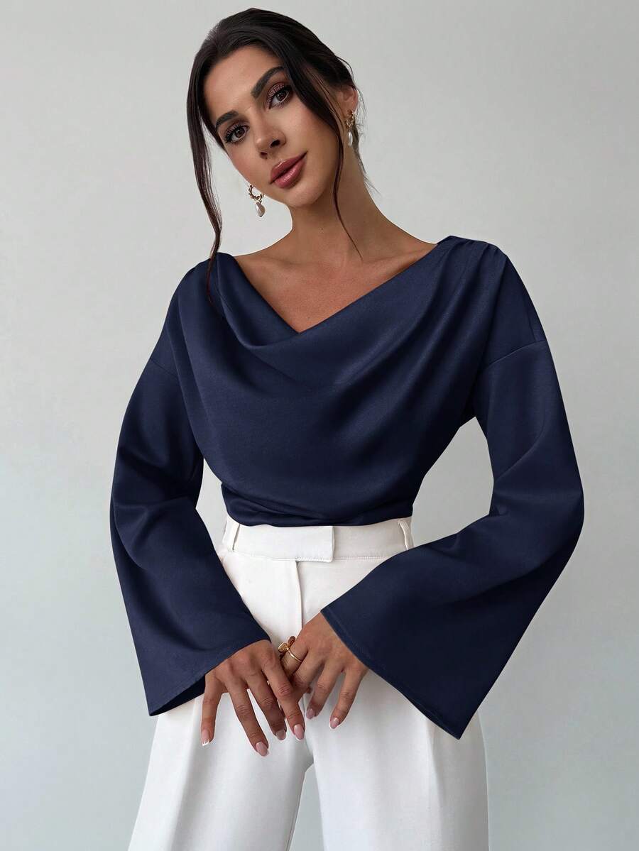 MIU AZRA Firerie Bluzica s Ovratnikom i Rukavima s Odozgo, Minimalistički Elegantna Bluzica za Svakodnevno Nošenje