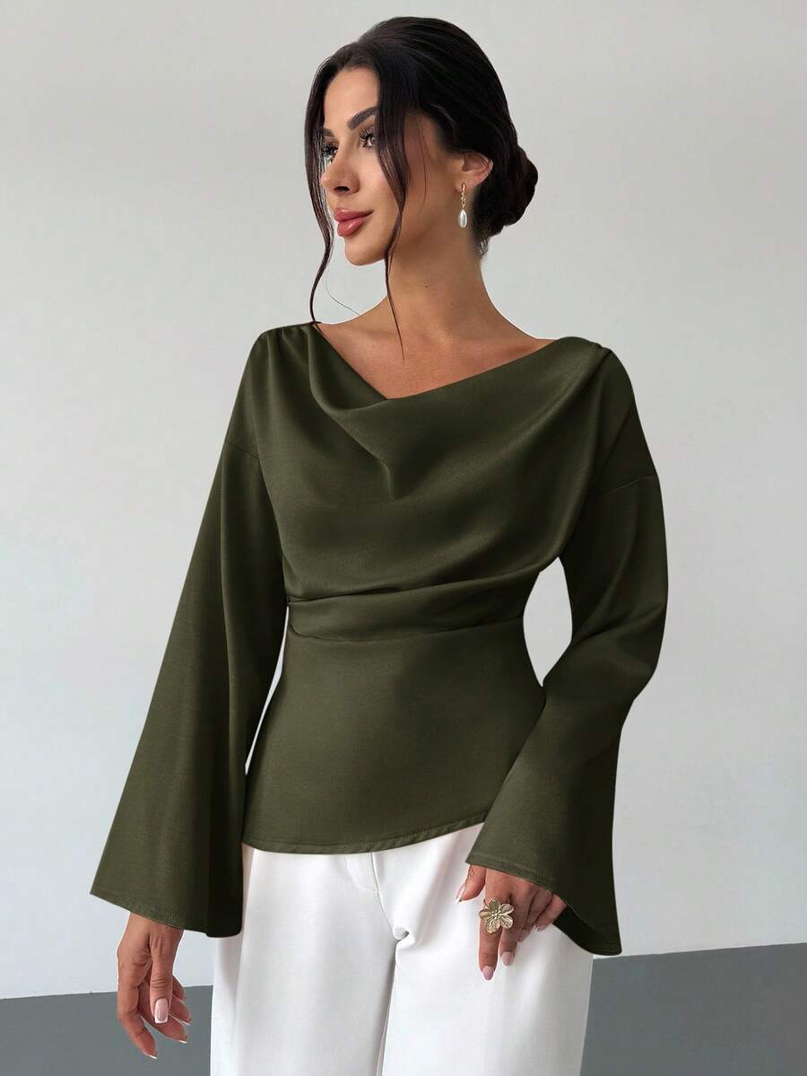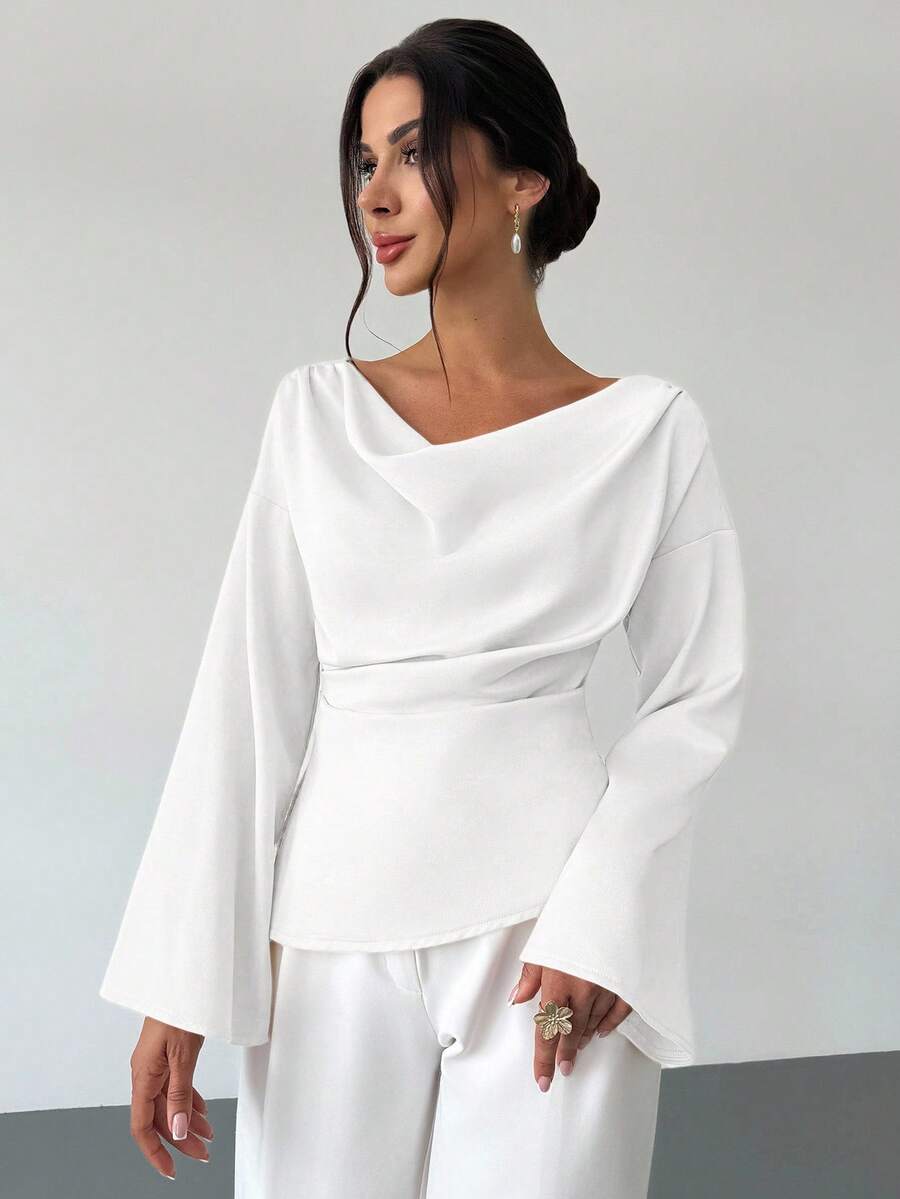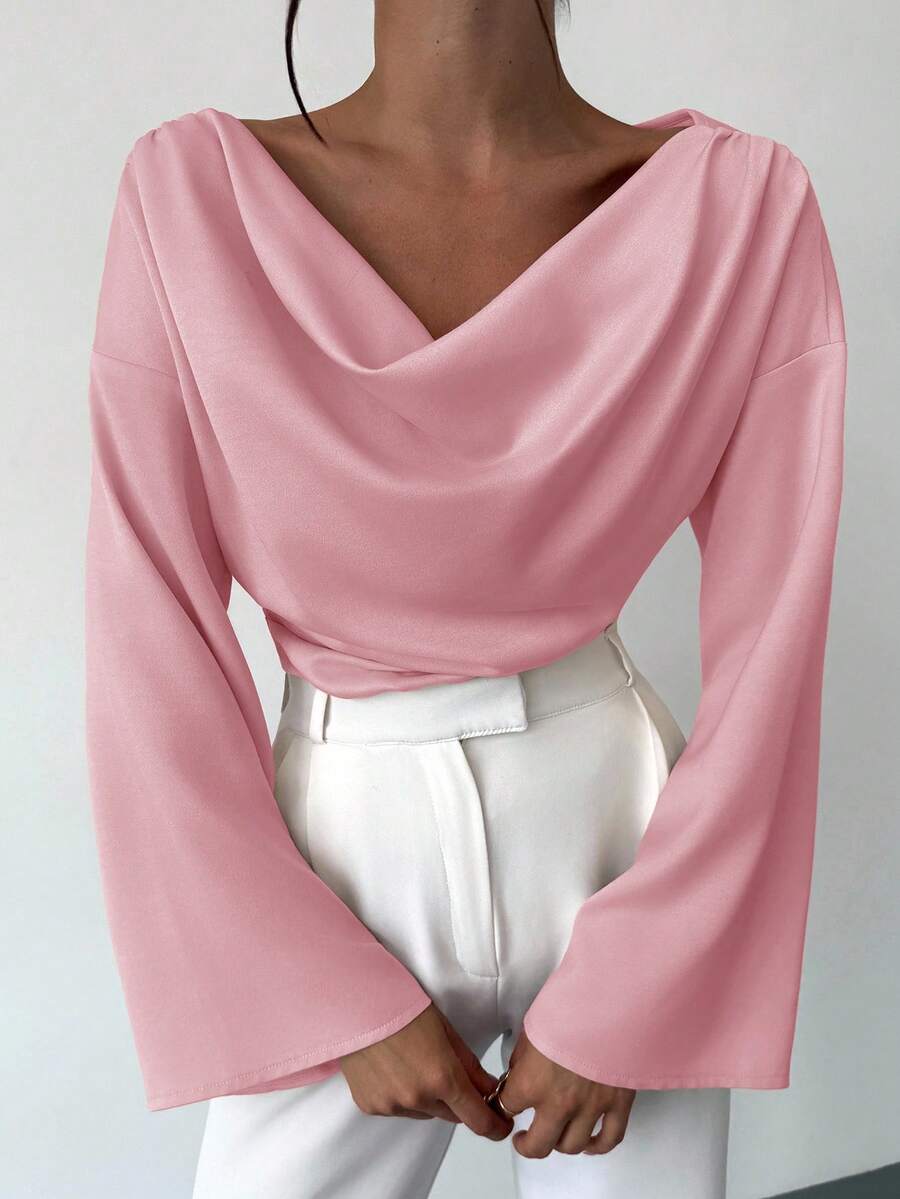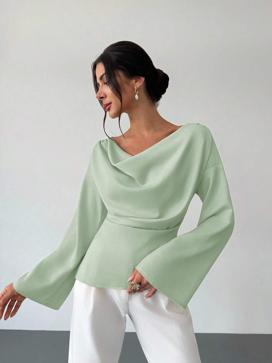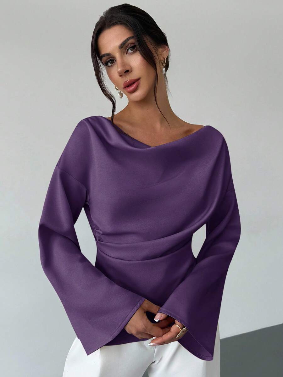 MIU AZRA Firerie Bluzica s Ovratnikom i Rukavima s Odozgo, Minimalistički Elegantna Bluzica za Svakodnevno Nošenje