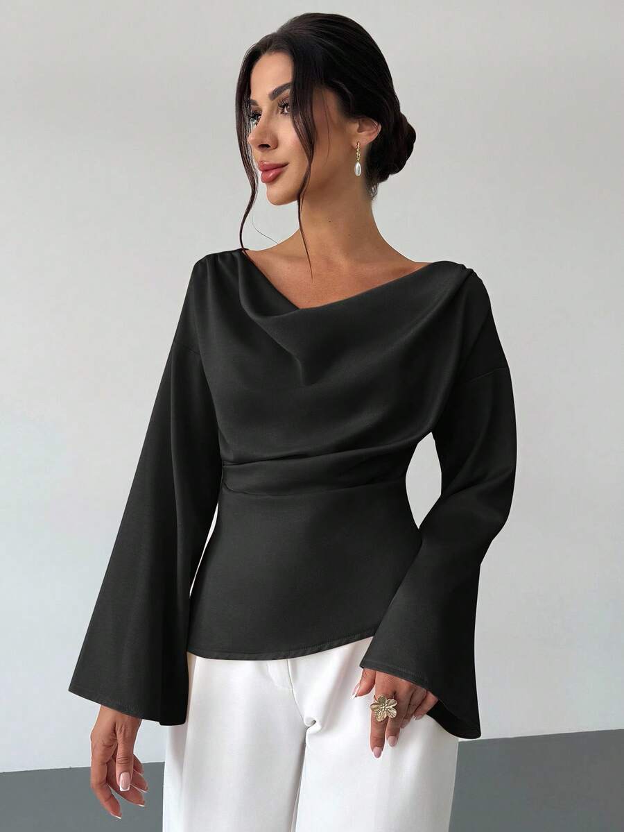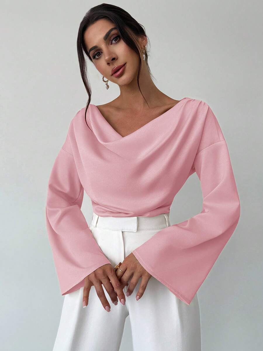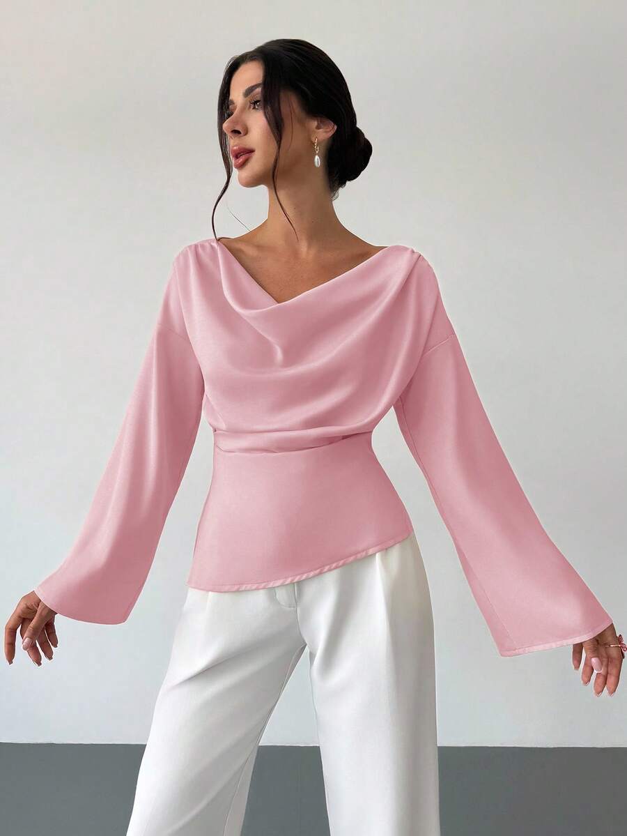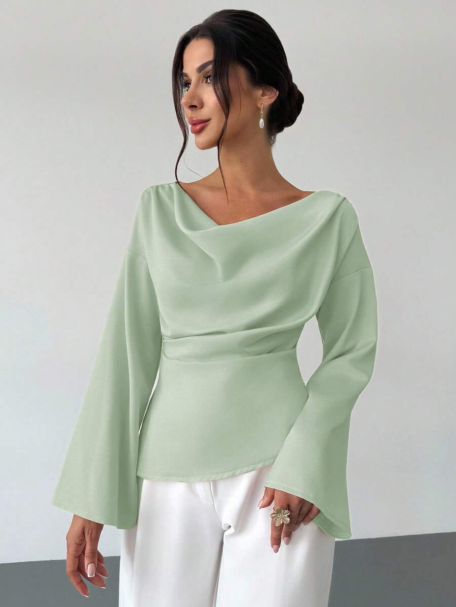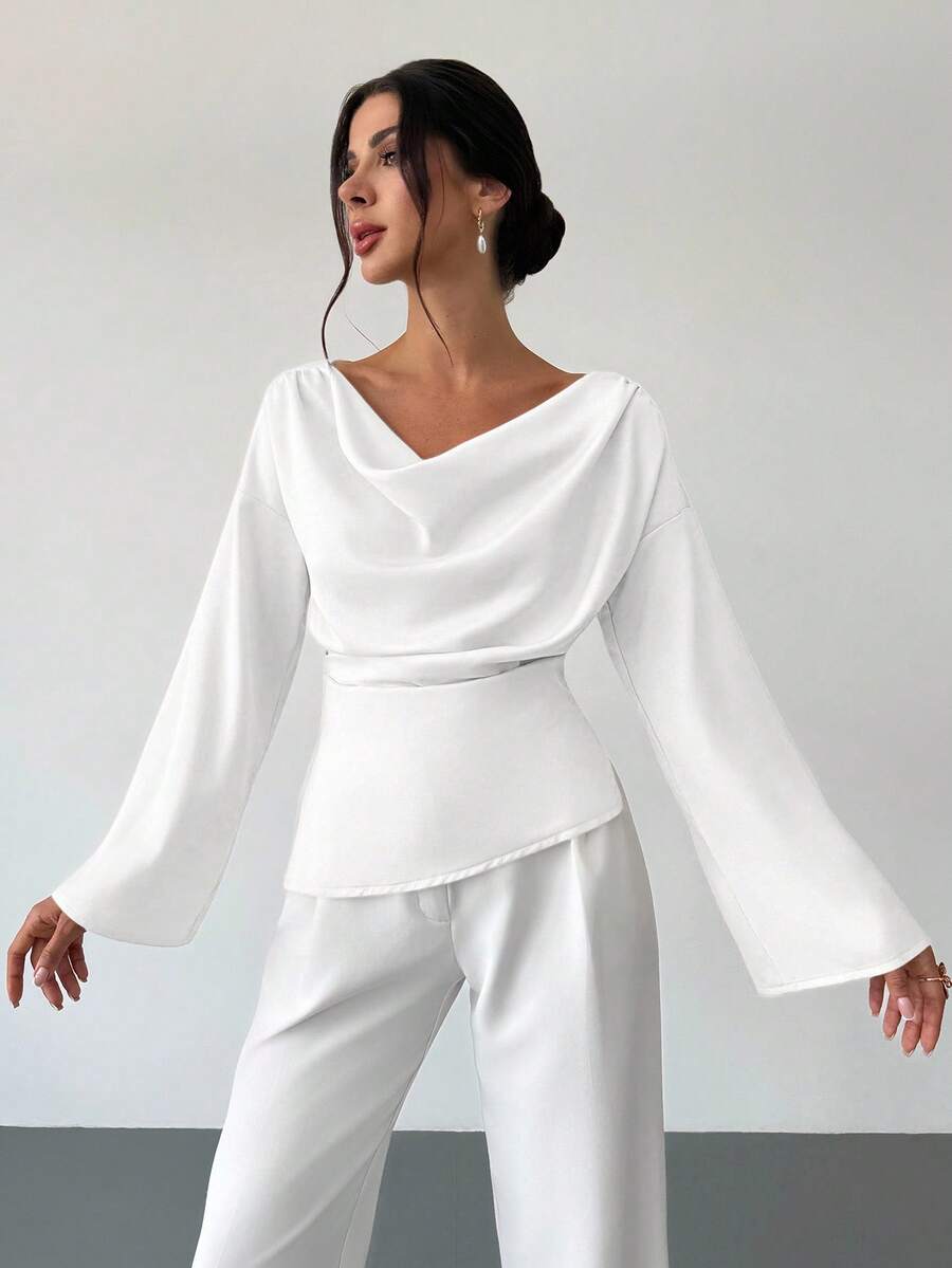 MIU AZRA Firerie Bluzica s Ovratnikom i Rukavima s Odozgo, Minimalistički Elegantna Bluzica za Svakodnevno Nošenje