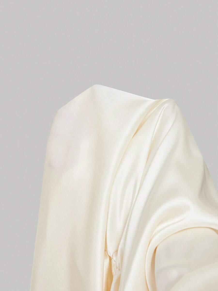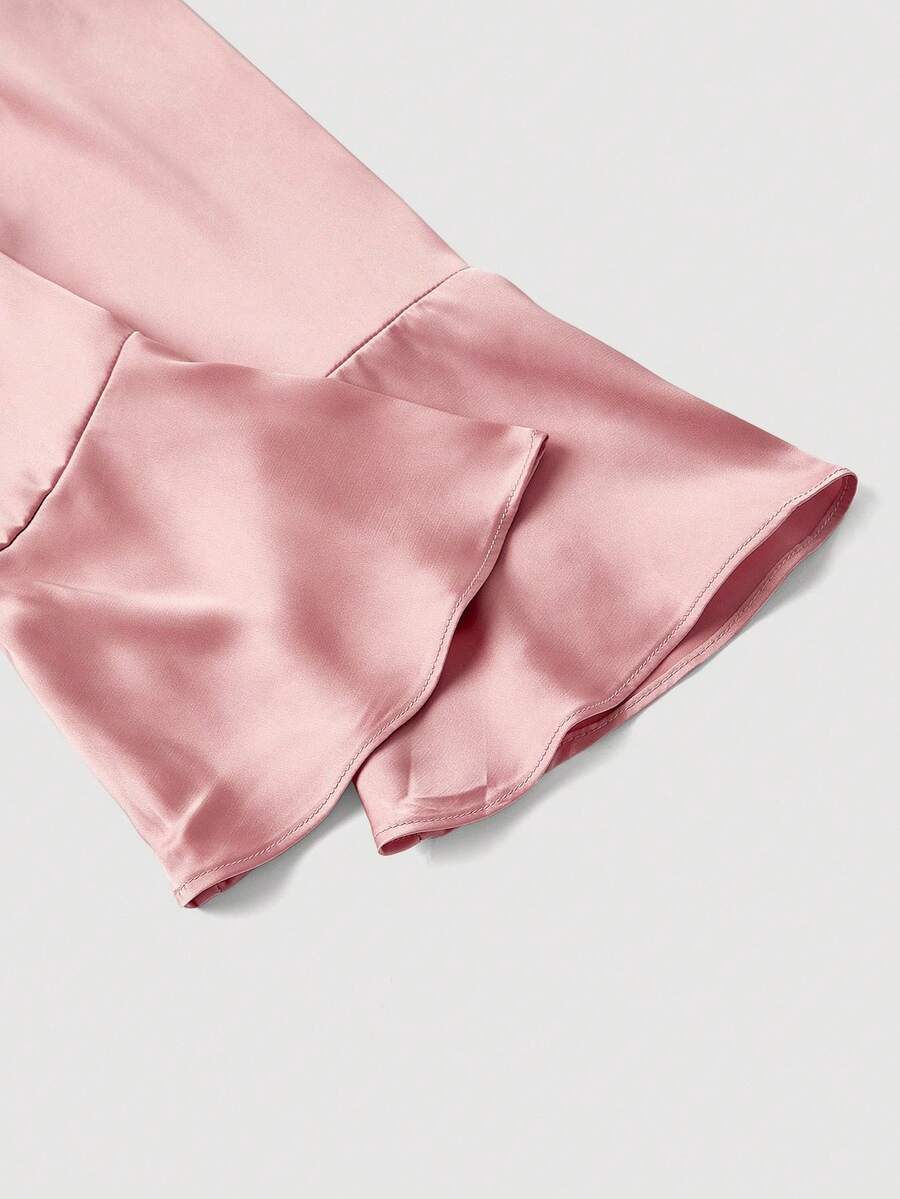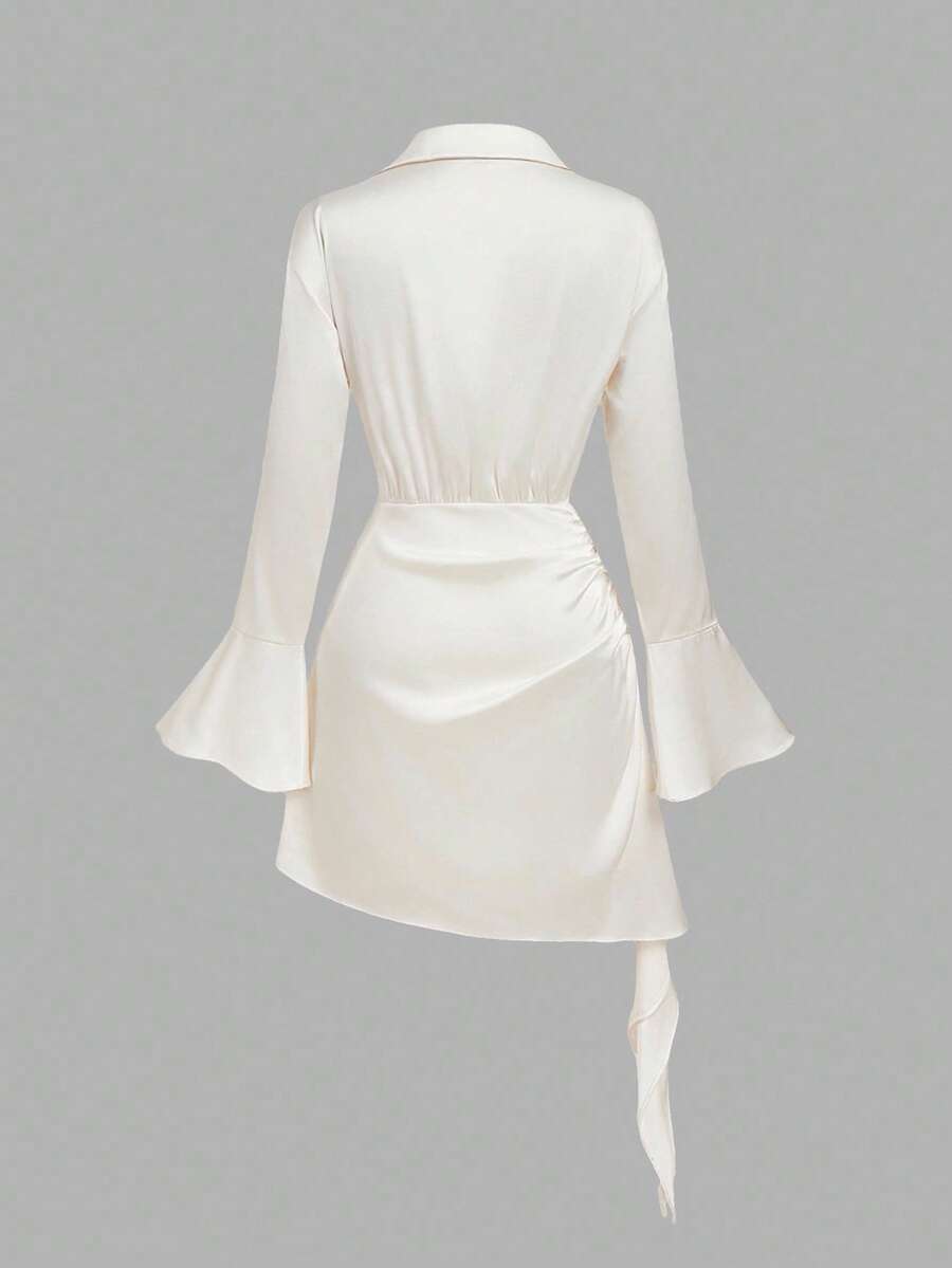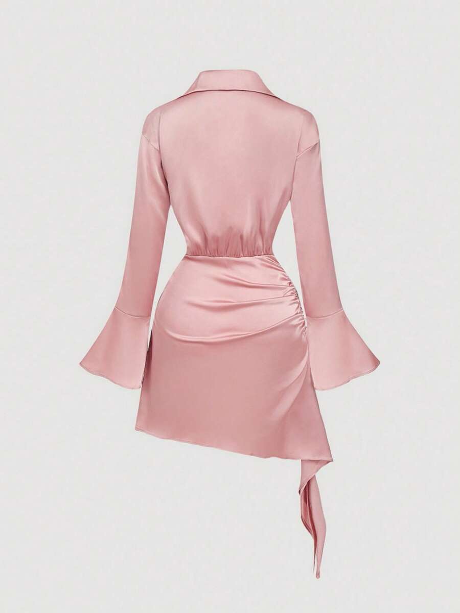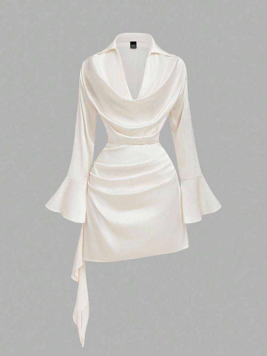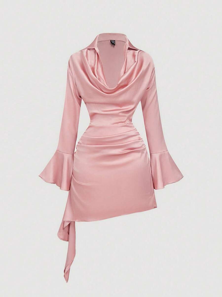 MIU AZRA Ženska Crna Crep Haljina sa Nabranom Ovratnikom i Rukavima u Zvonu