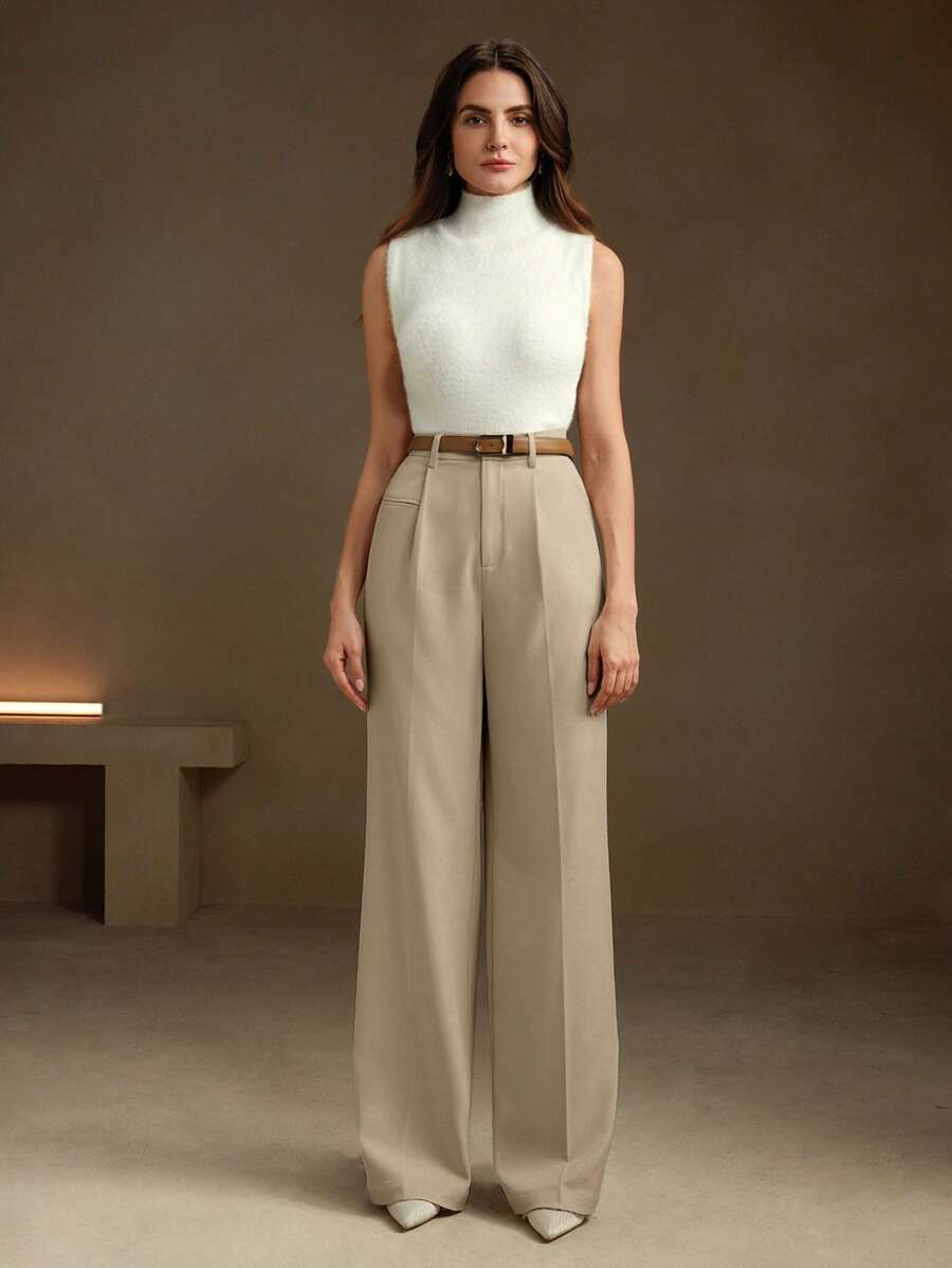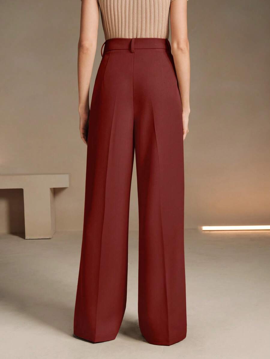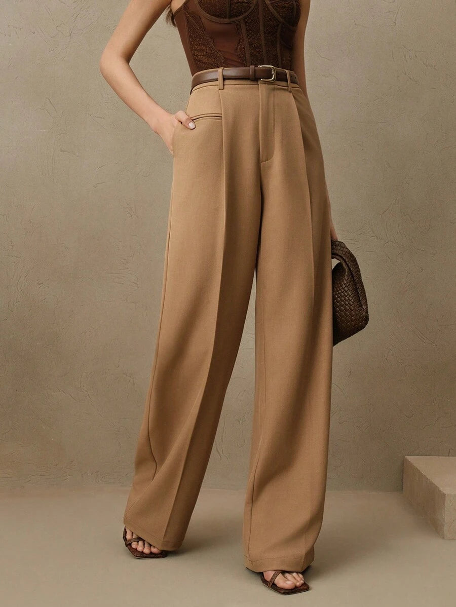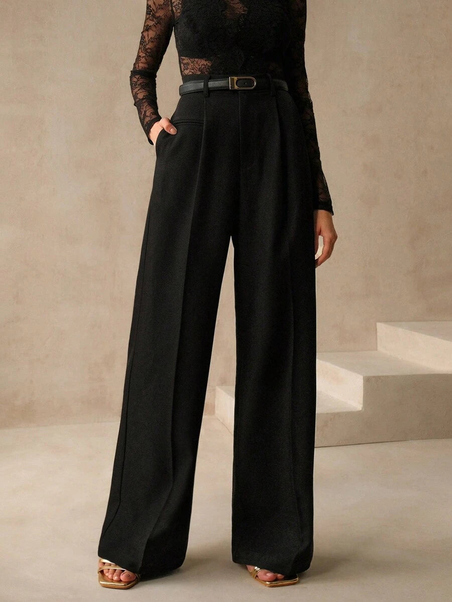 MIU Black Urban Chic Casual Loose Straight-Leg Belt Suit Pants