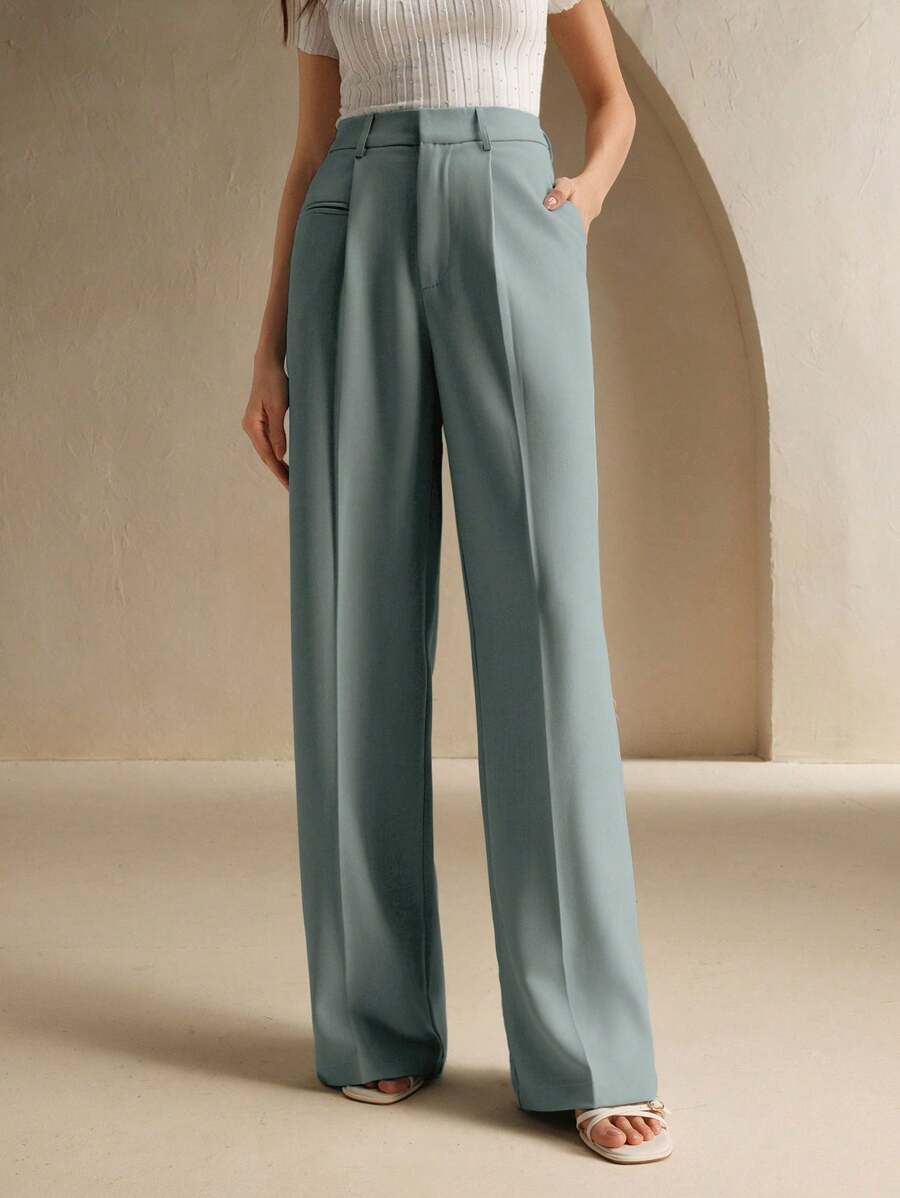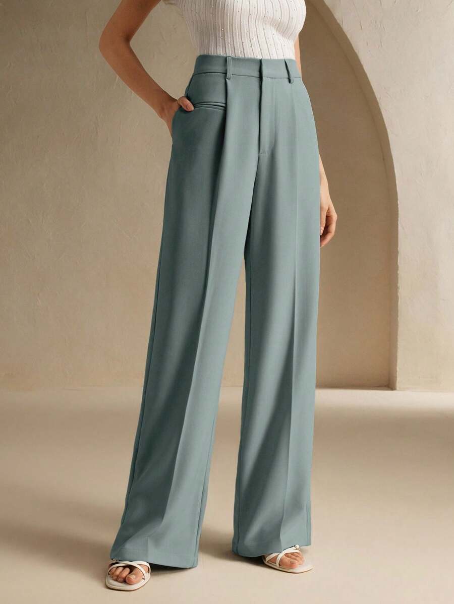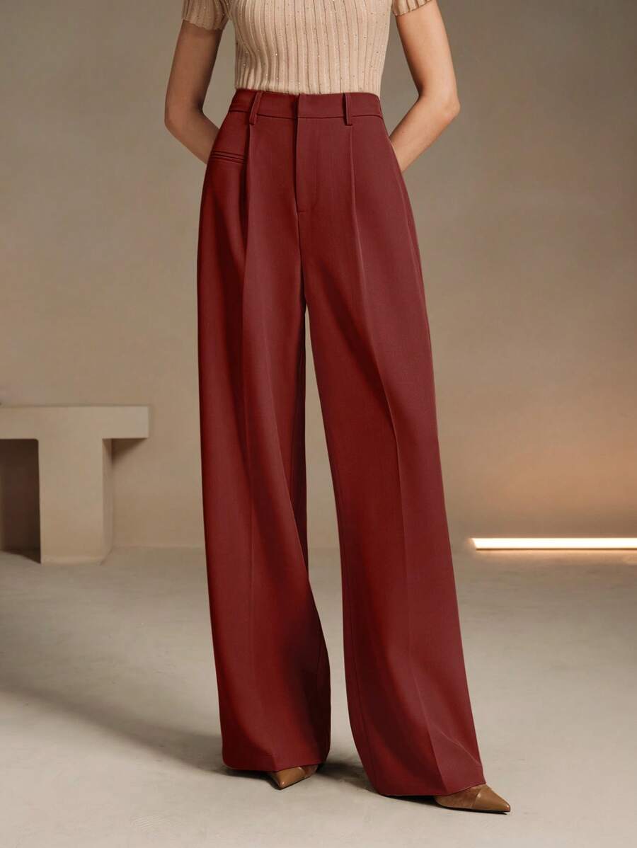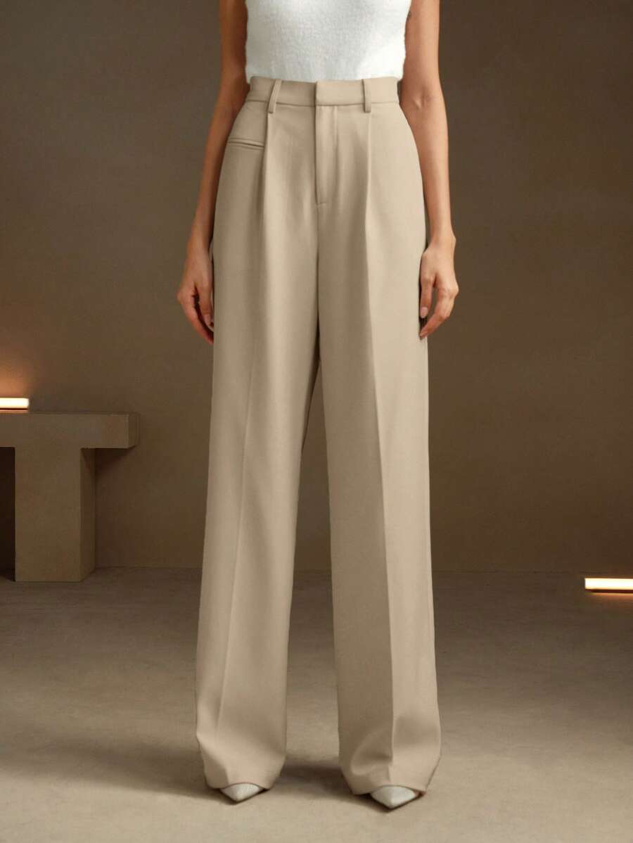 MIU Black Urban Chic Casual Loose Straight-Leg Belt Suit Pants