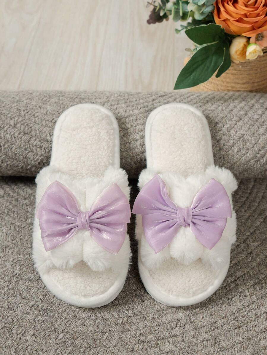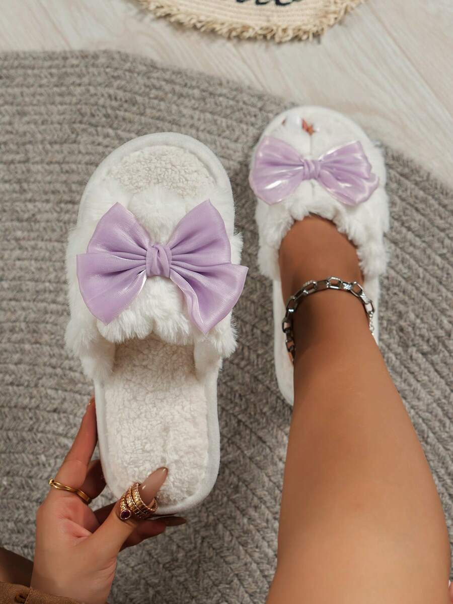 MIU Bow Knot Fuzzy Warm Slippers For Women, Comfy Indoor Home Shoes For All Seasons Valentines