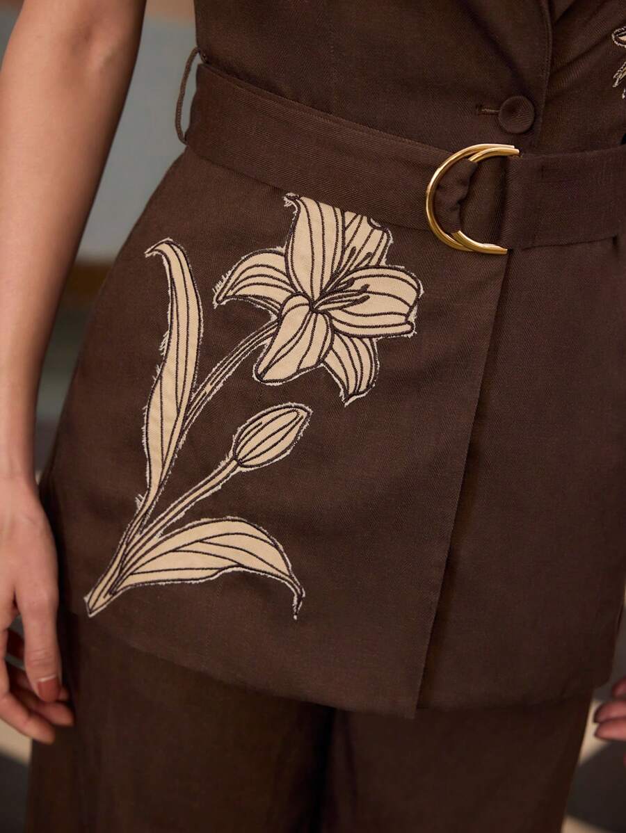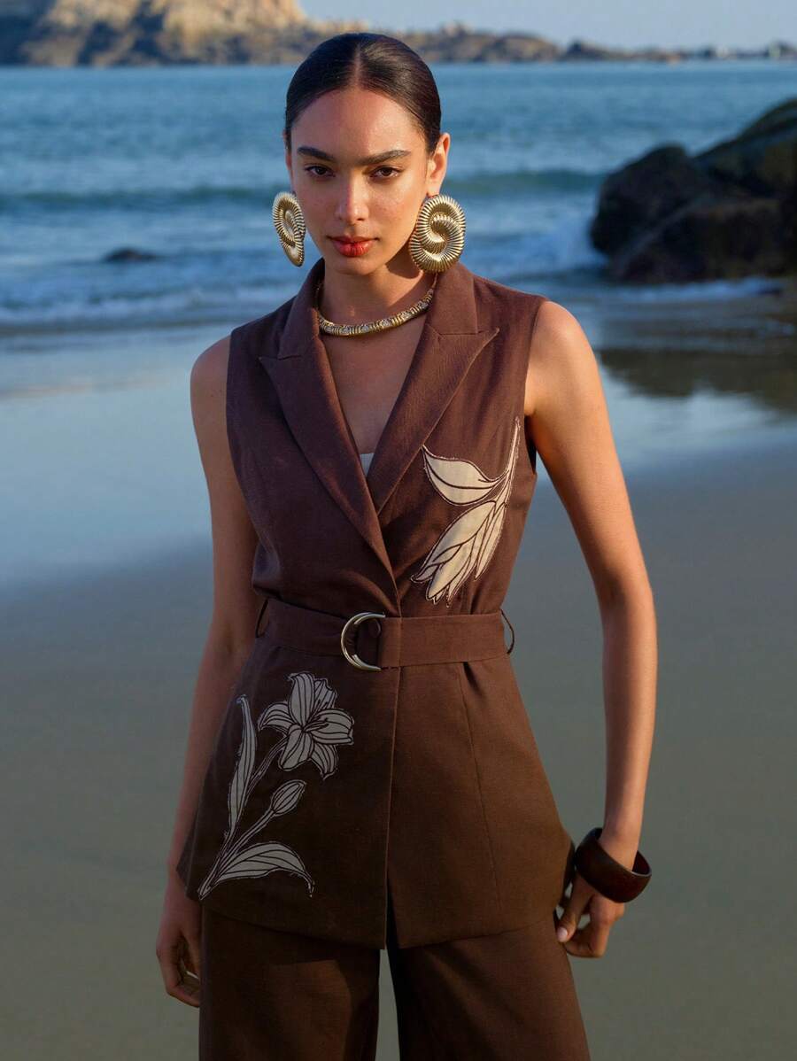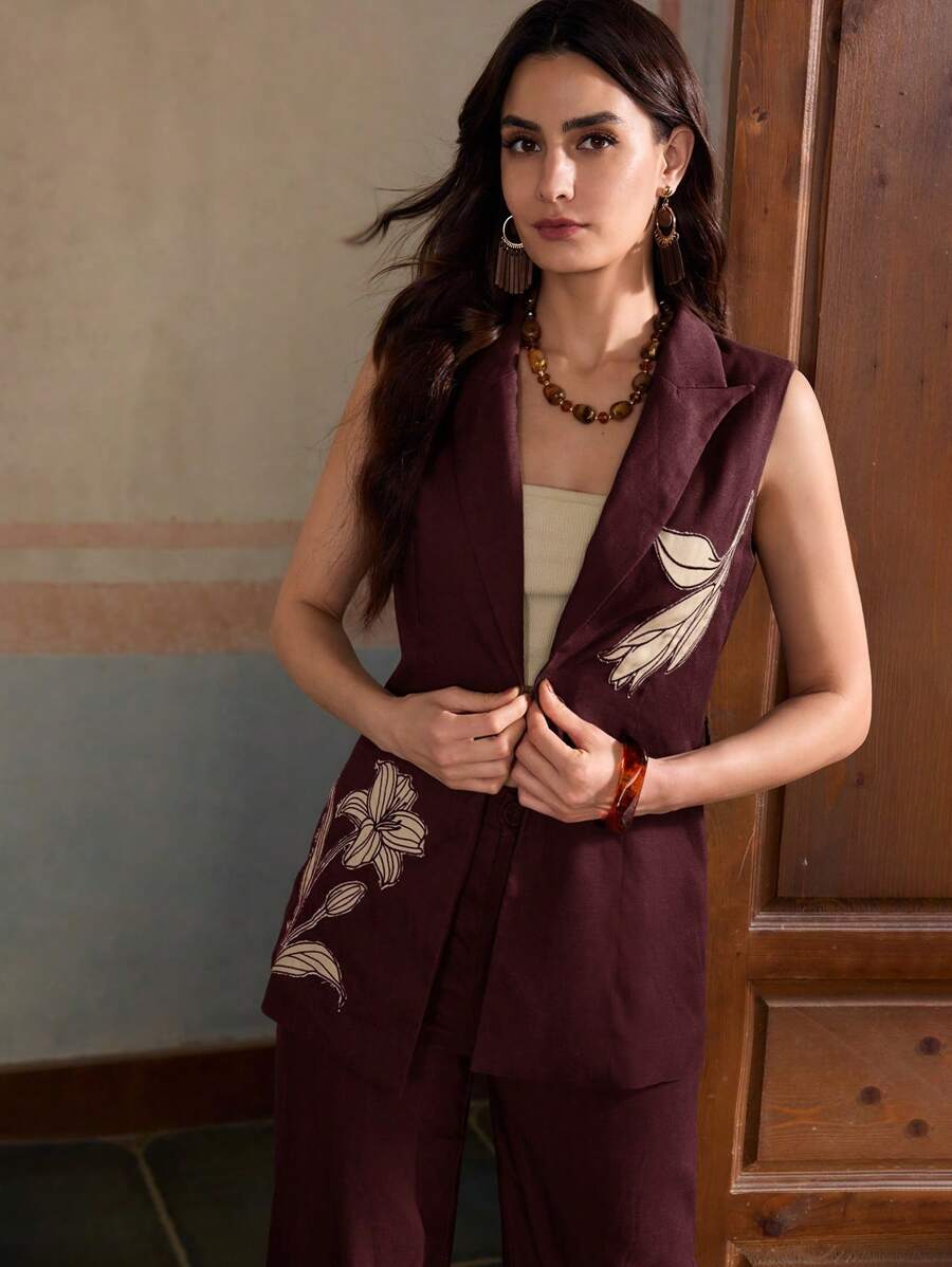 MIU Business Style Embroidered Linen Loose Fit Dual Breasted Suit Vest