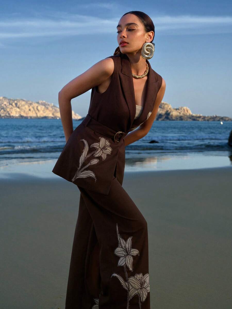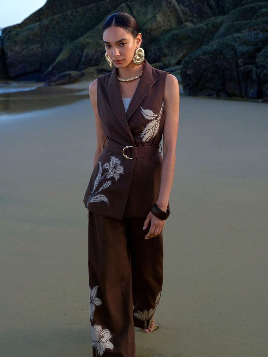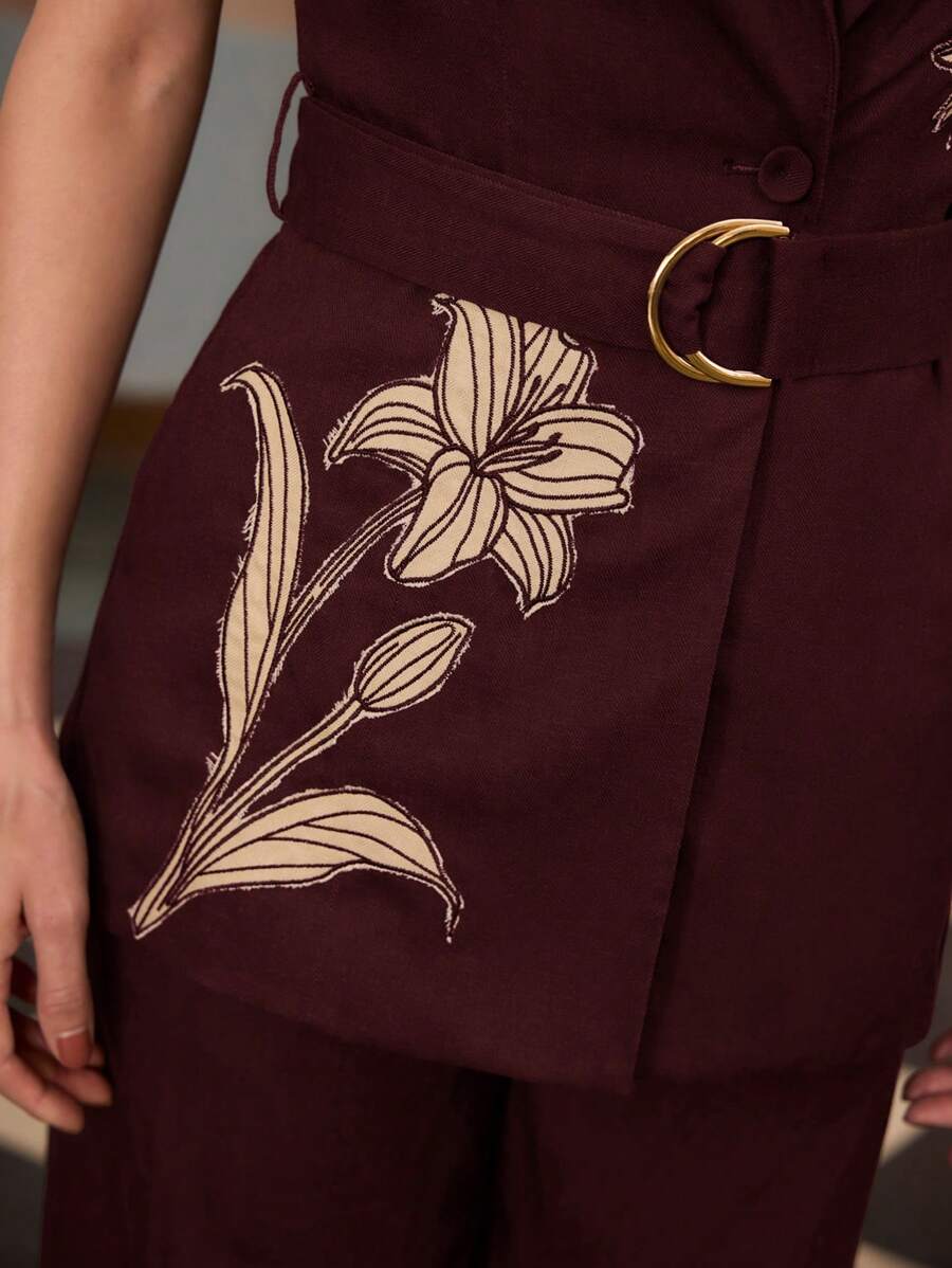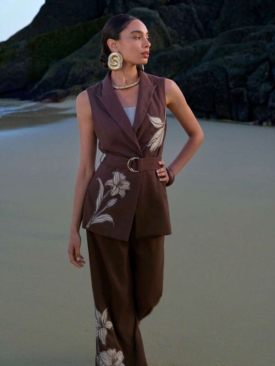 MIU Business Style Embroidered Linen Loose Fit Dual Breasted Suit Vest
