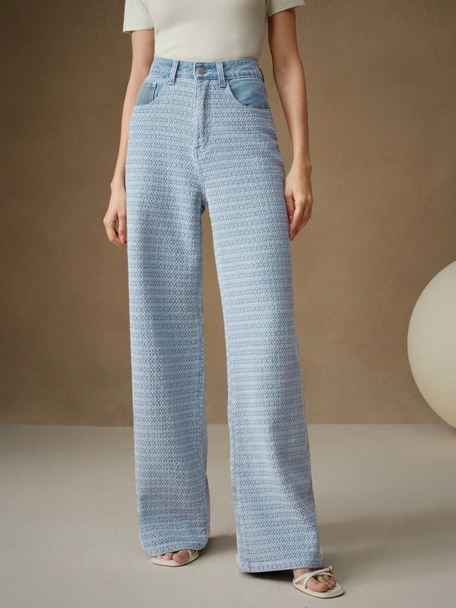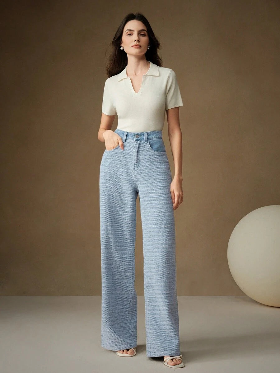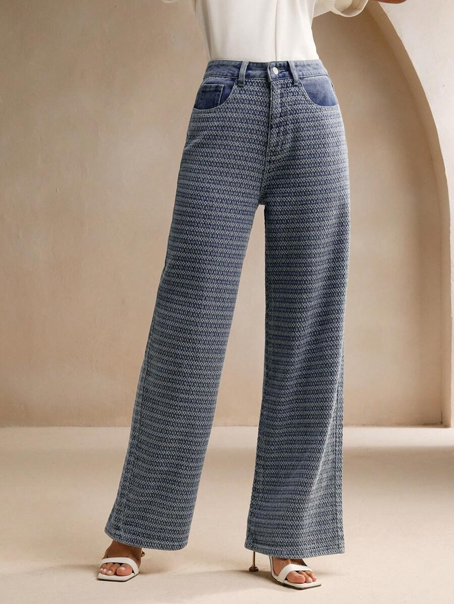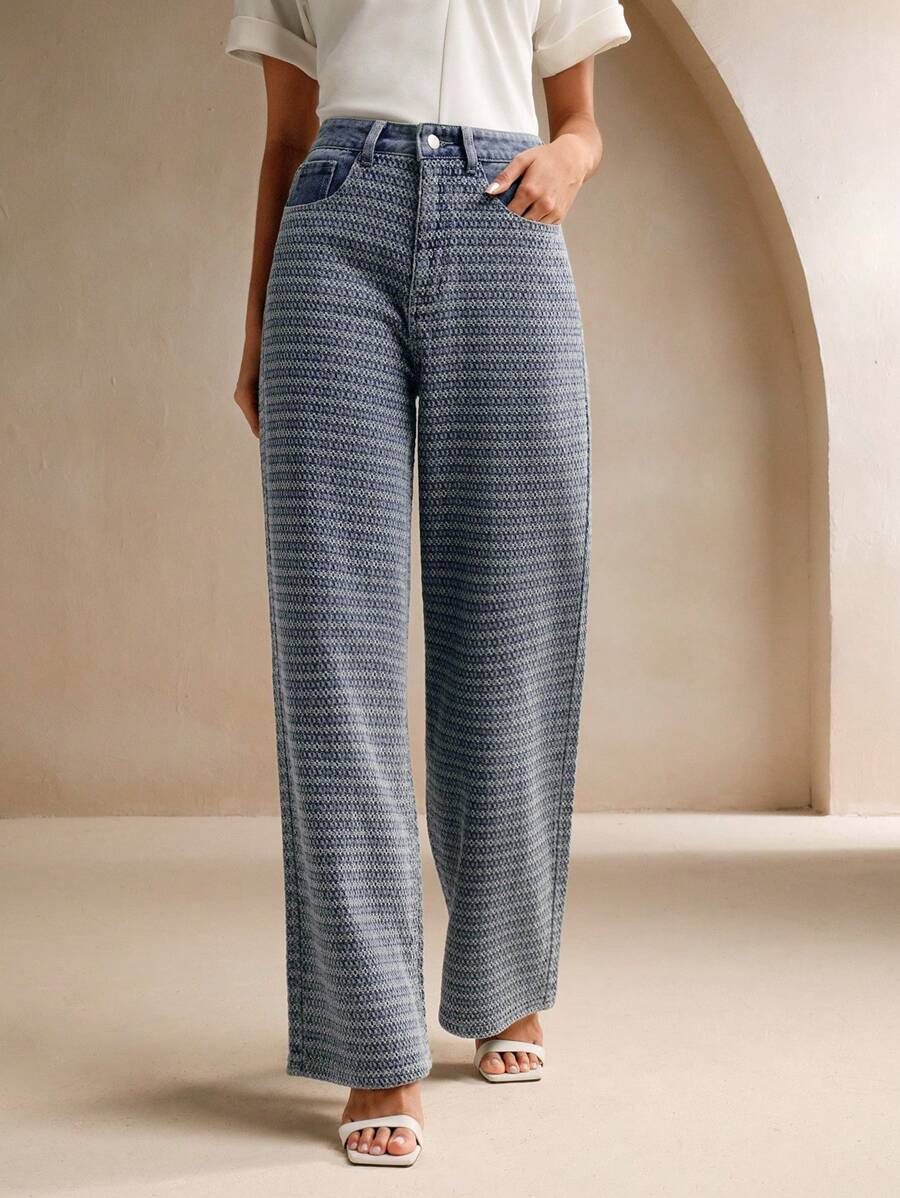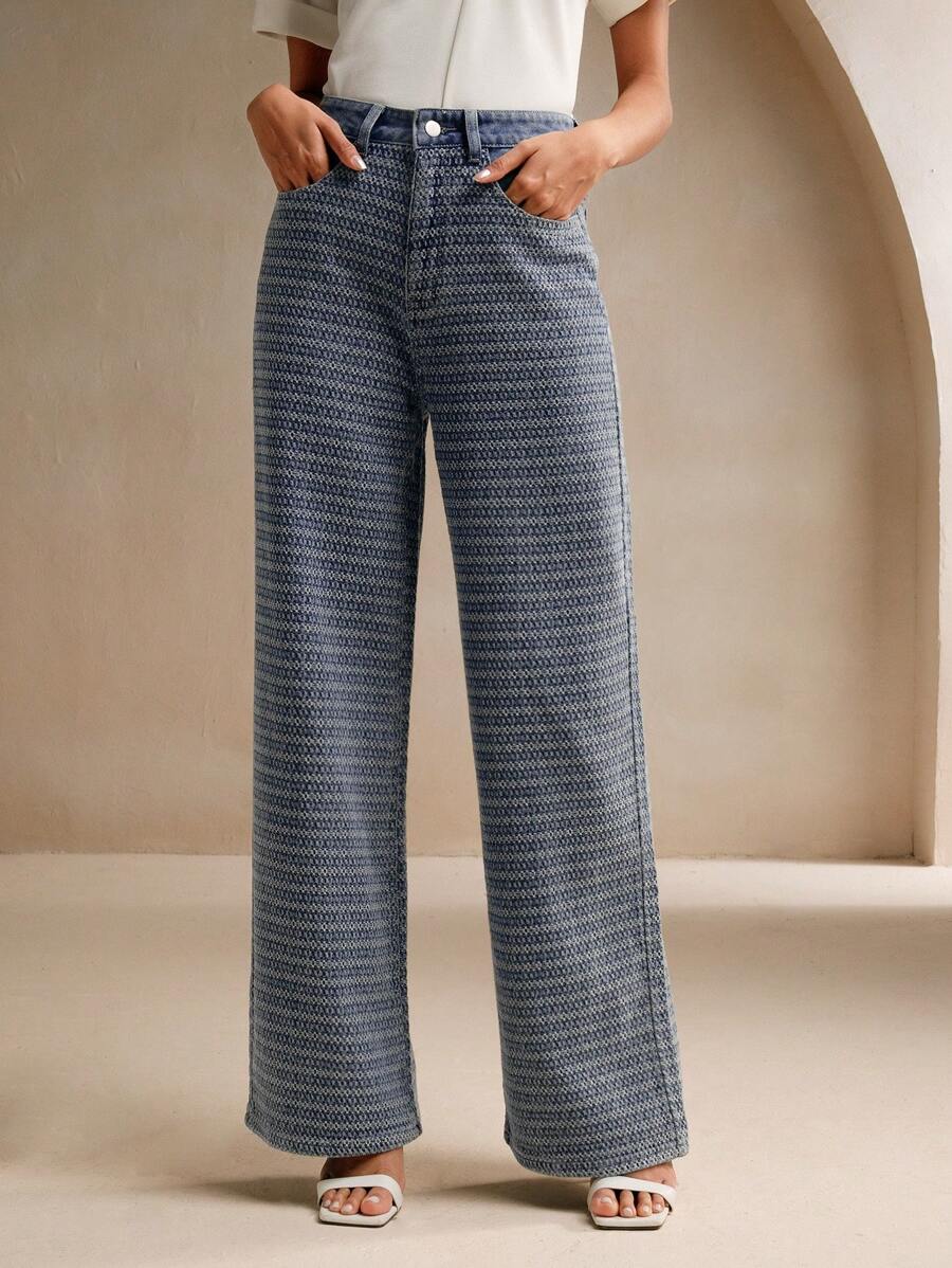 MIU Casual Commuting Jacquard Loose Wide-Leg Jeans