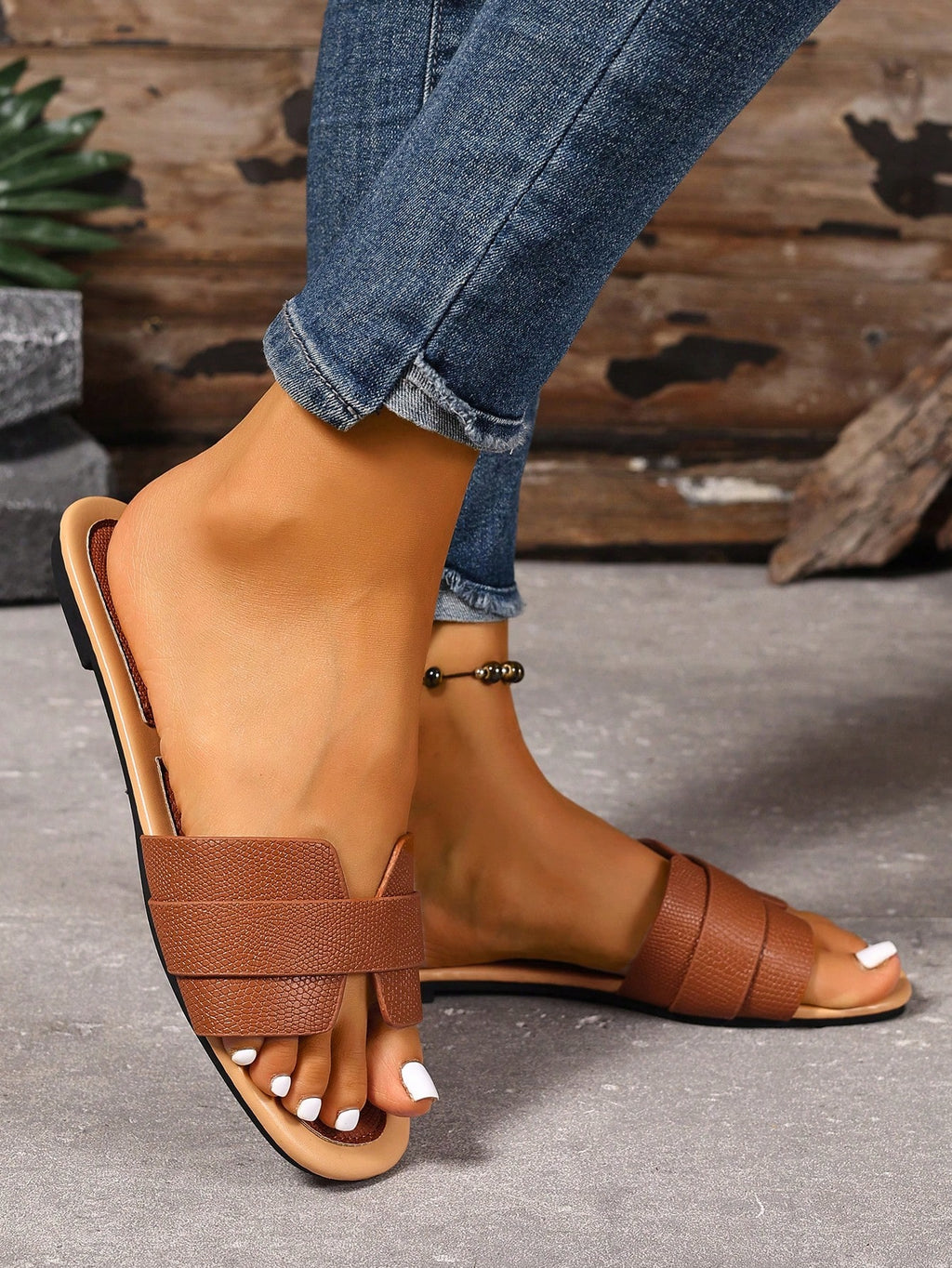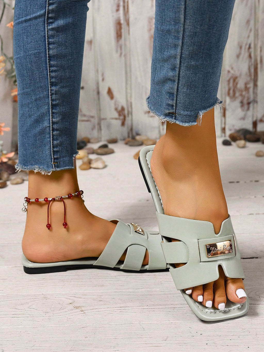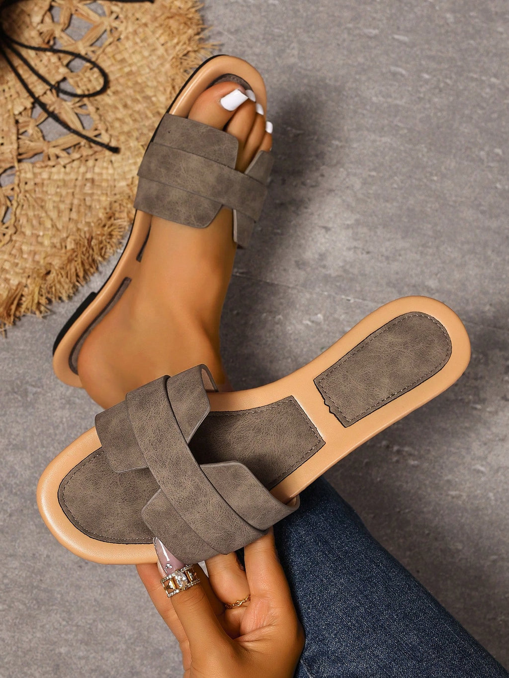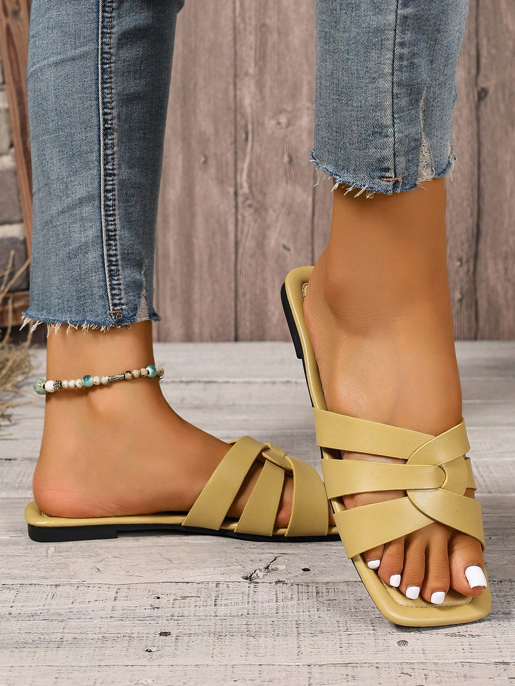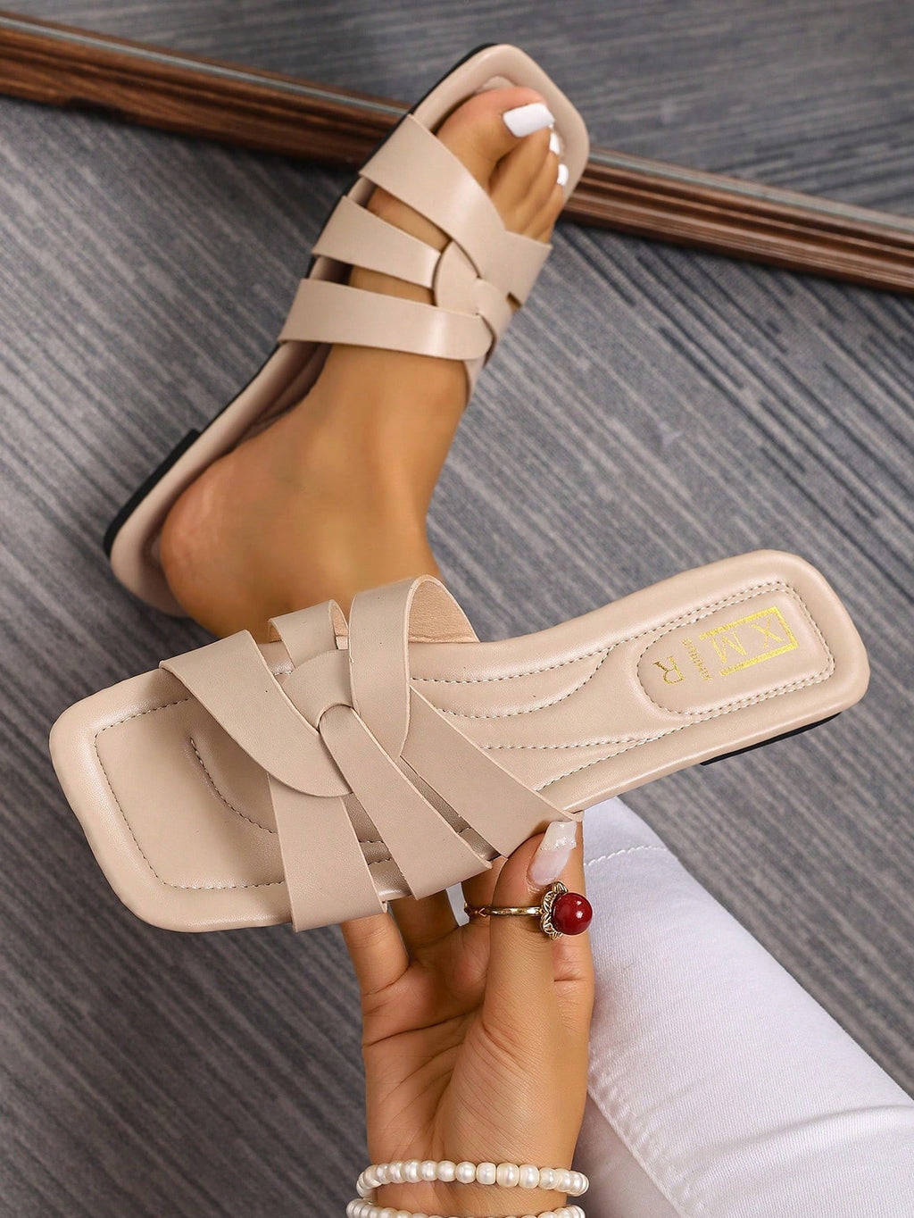 MIU Casual Flat Slide Sandals For Women, Open Toe, Woven Roman Style, Suitable For Spring, Summer