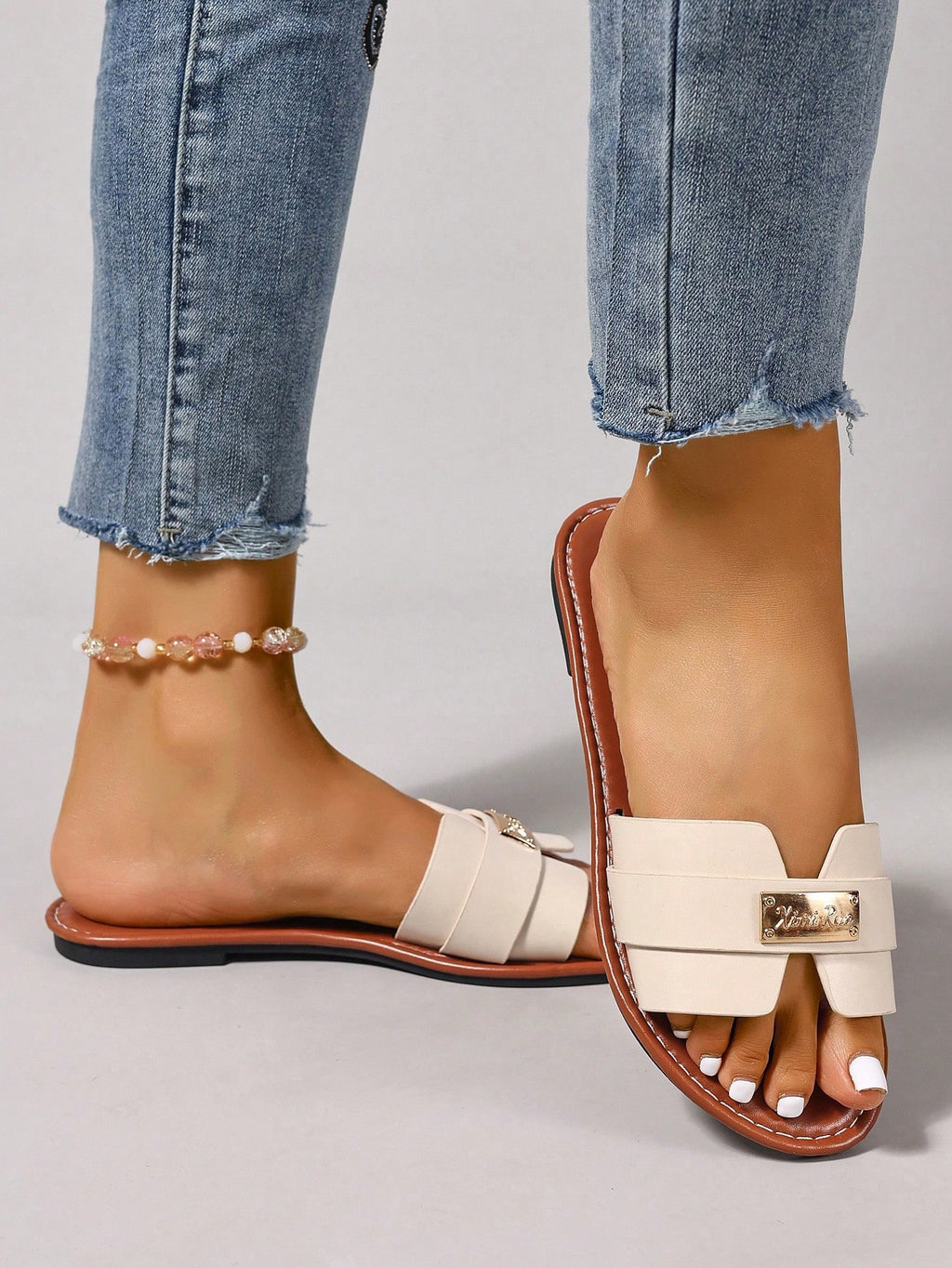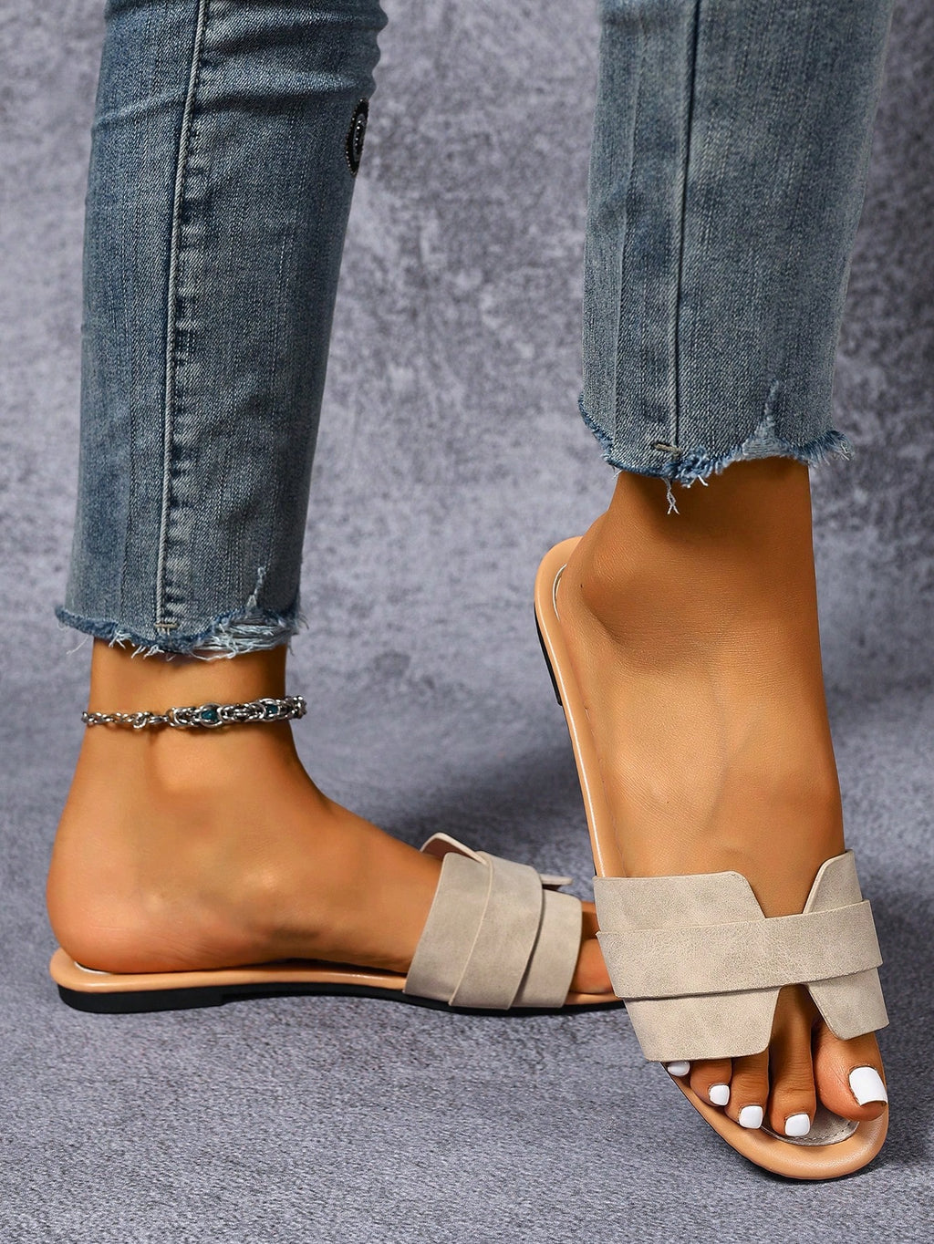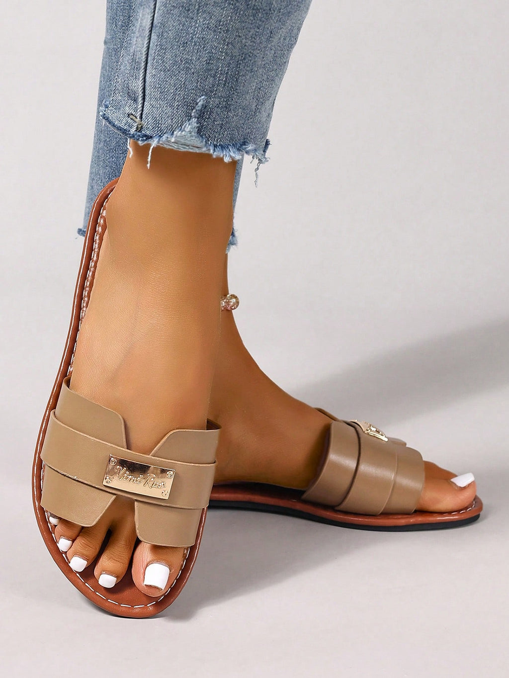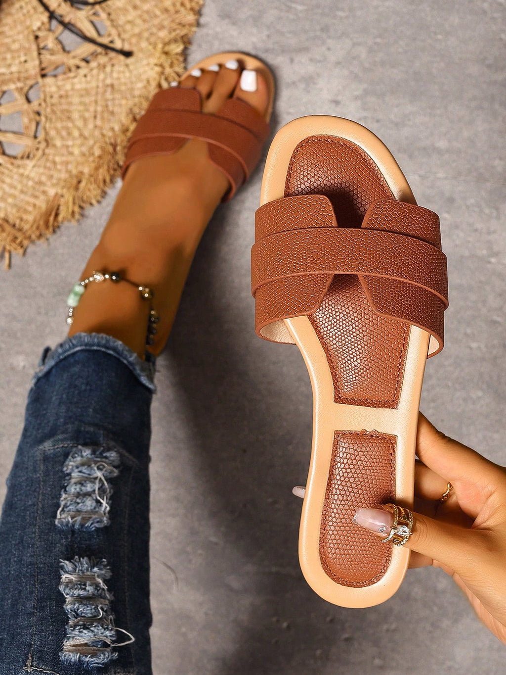 MIU Casual Flat Slide Sandals For Women, Open Toe, Woven Roman Style, Suitable For Spring, Summer
