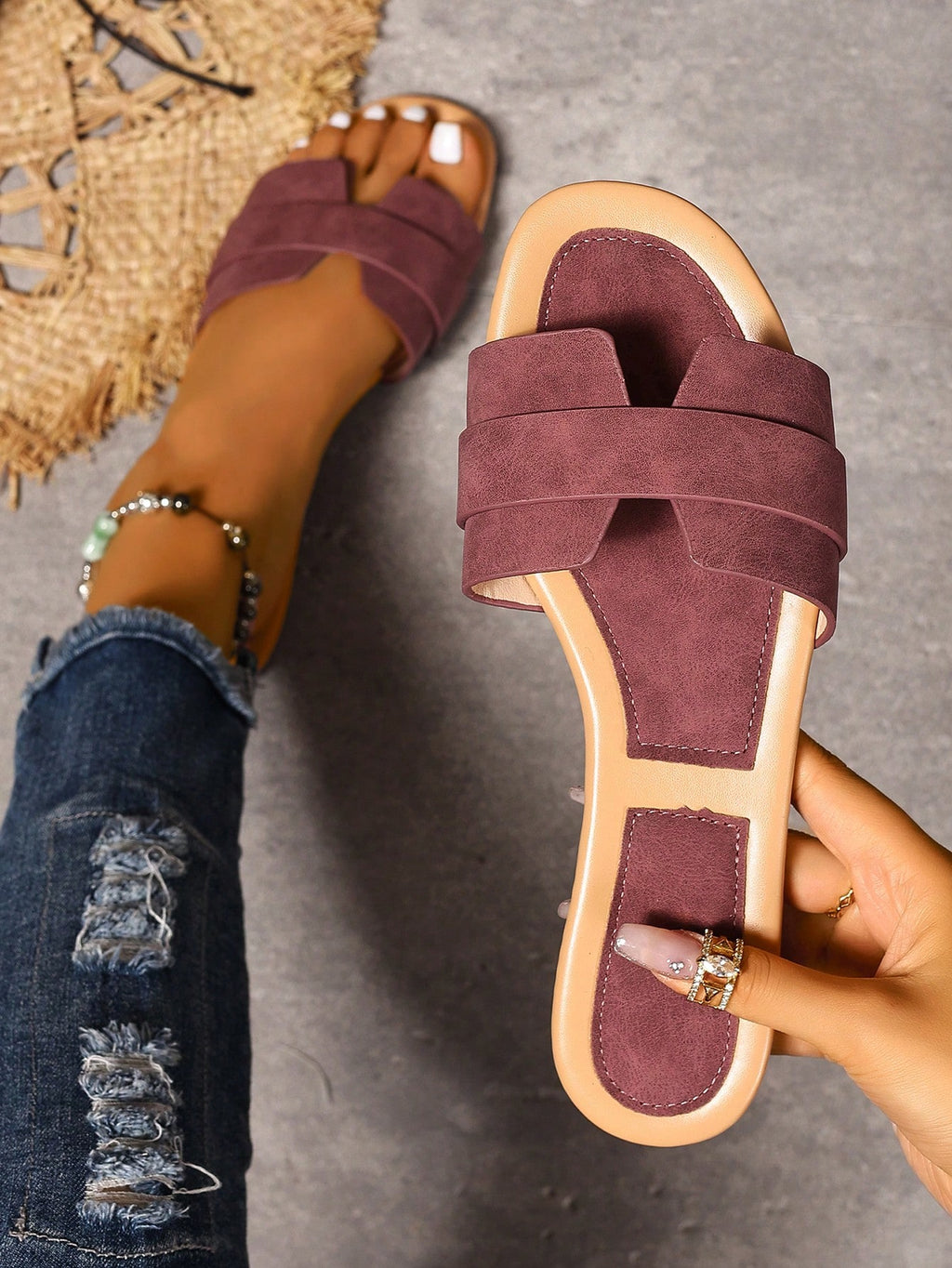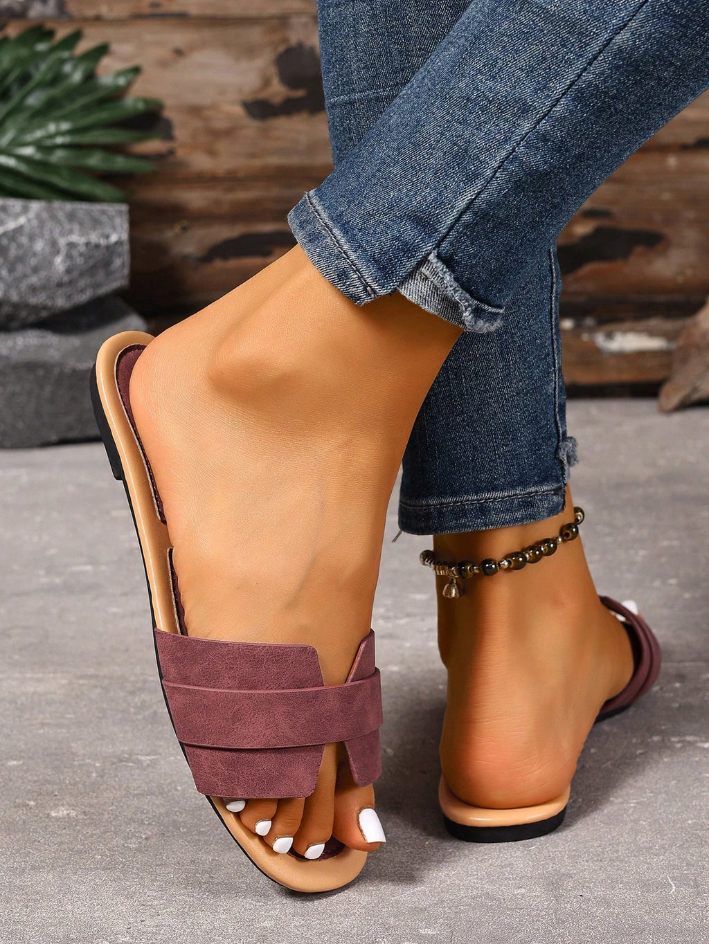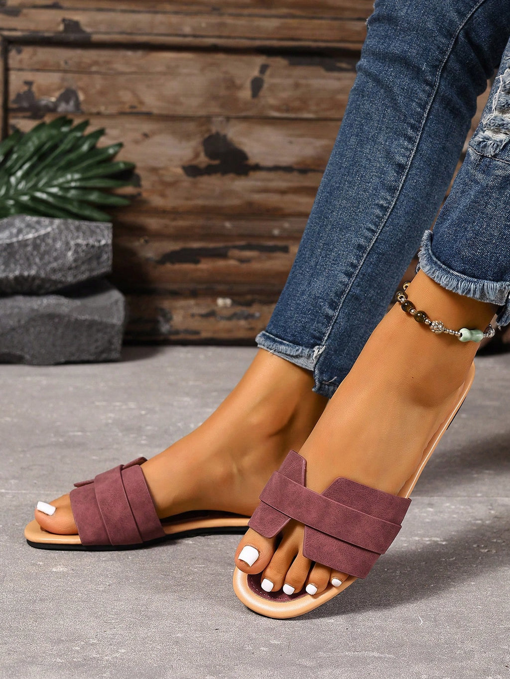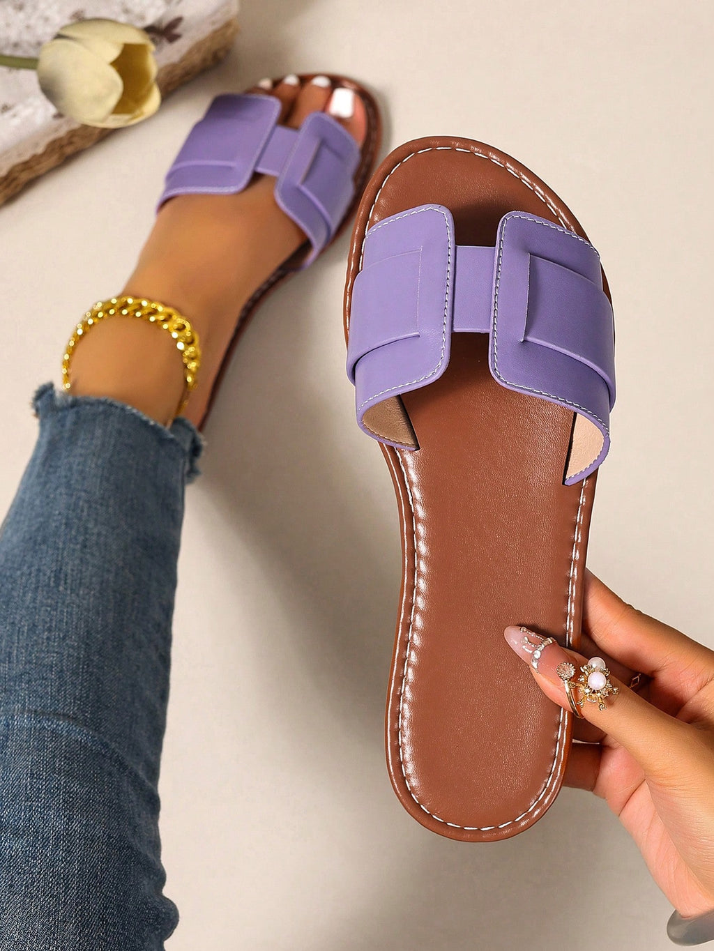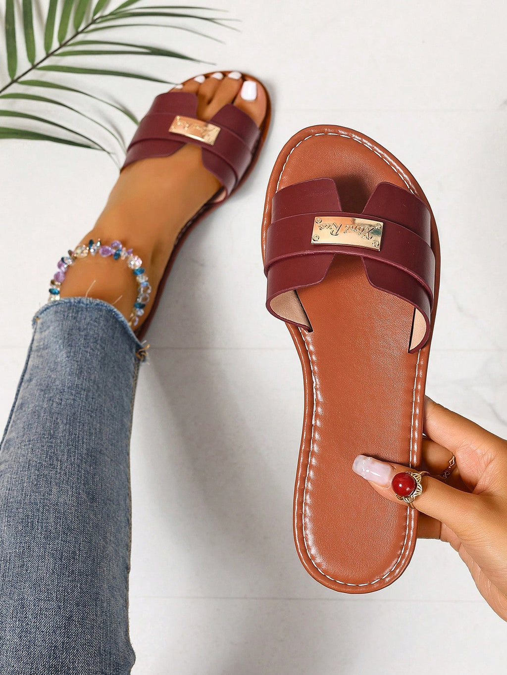 MIU Casual Flat Slide Sandals For Women, Open Toe, Woven Roman Style, Suitable For Spring, Summer