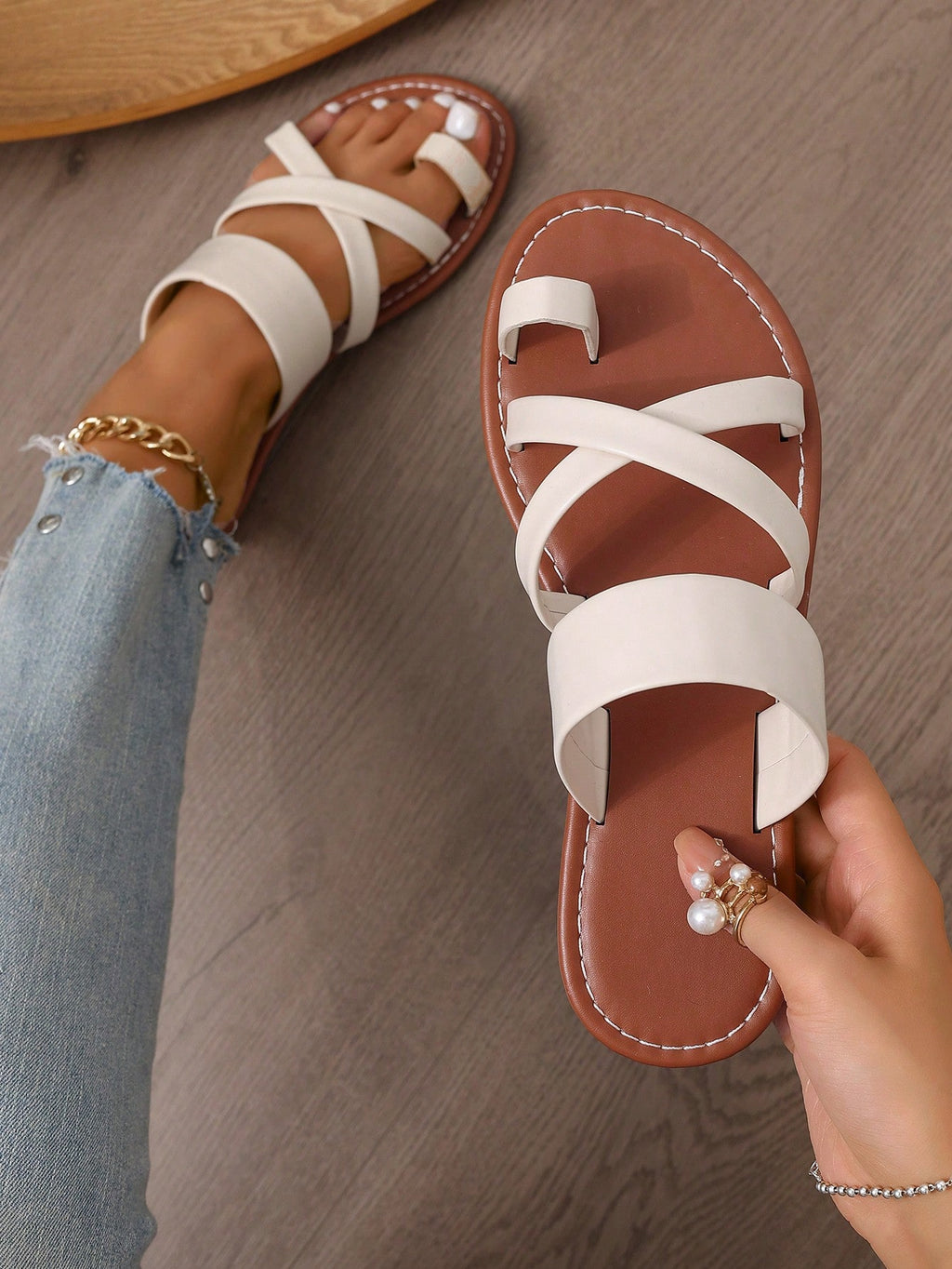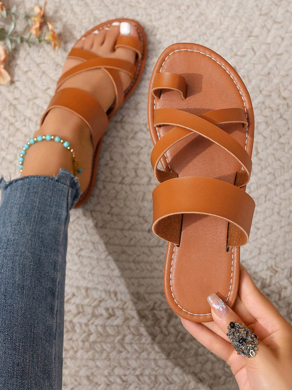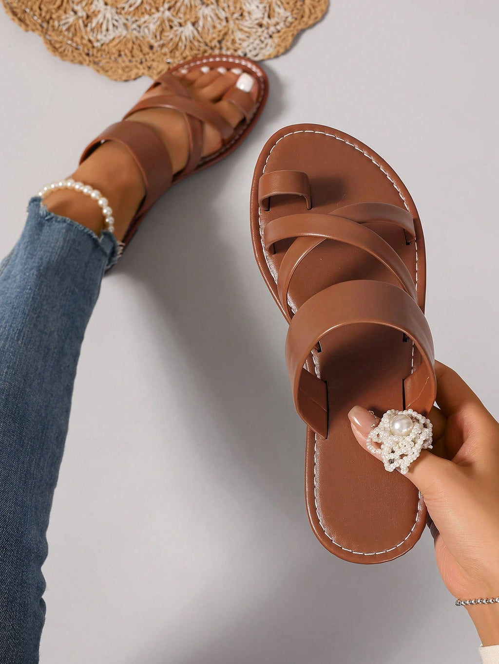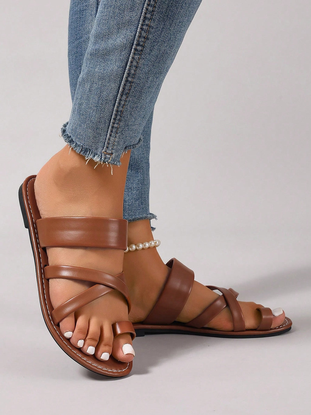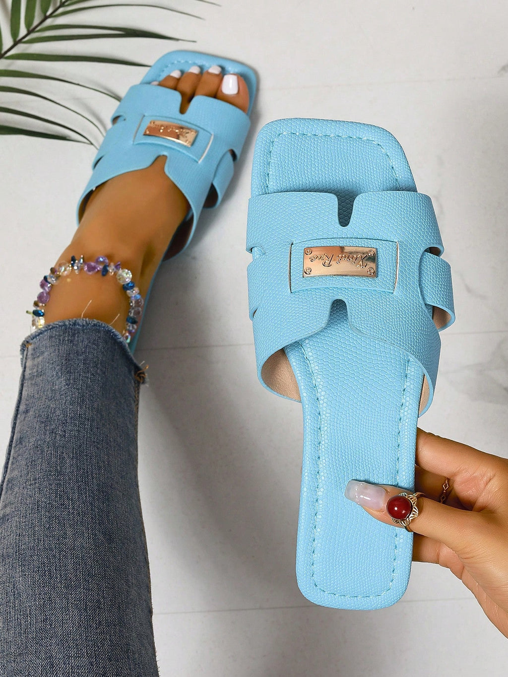 MIU Casual Flat Slide Sandals For Women, Open Toe, Woven Roman Style, Suitable For Spring, Summer
