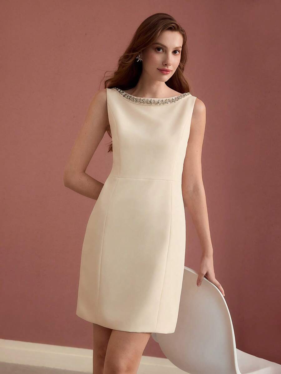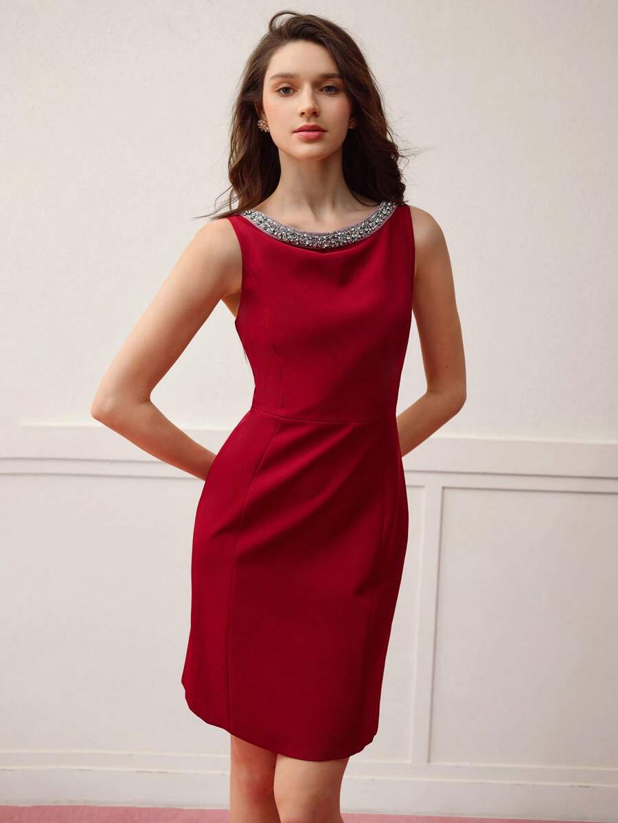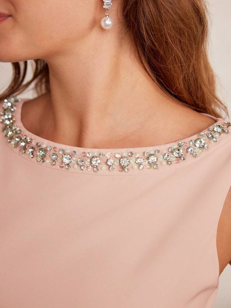 MIU Classy CLASSY RHINESTONE DETAIL SLEEVELESS MIDI DRESS
