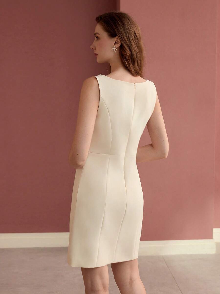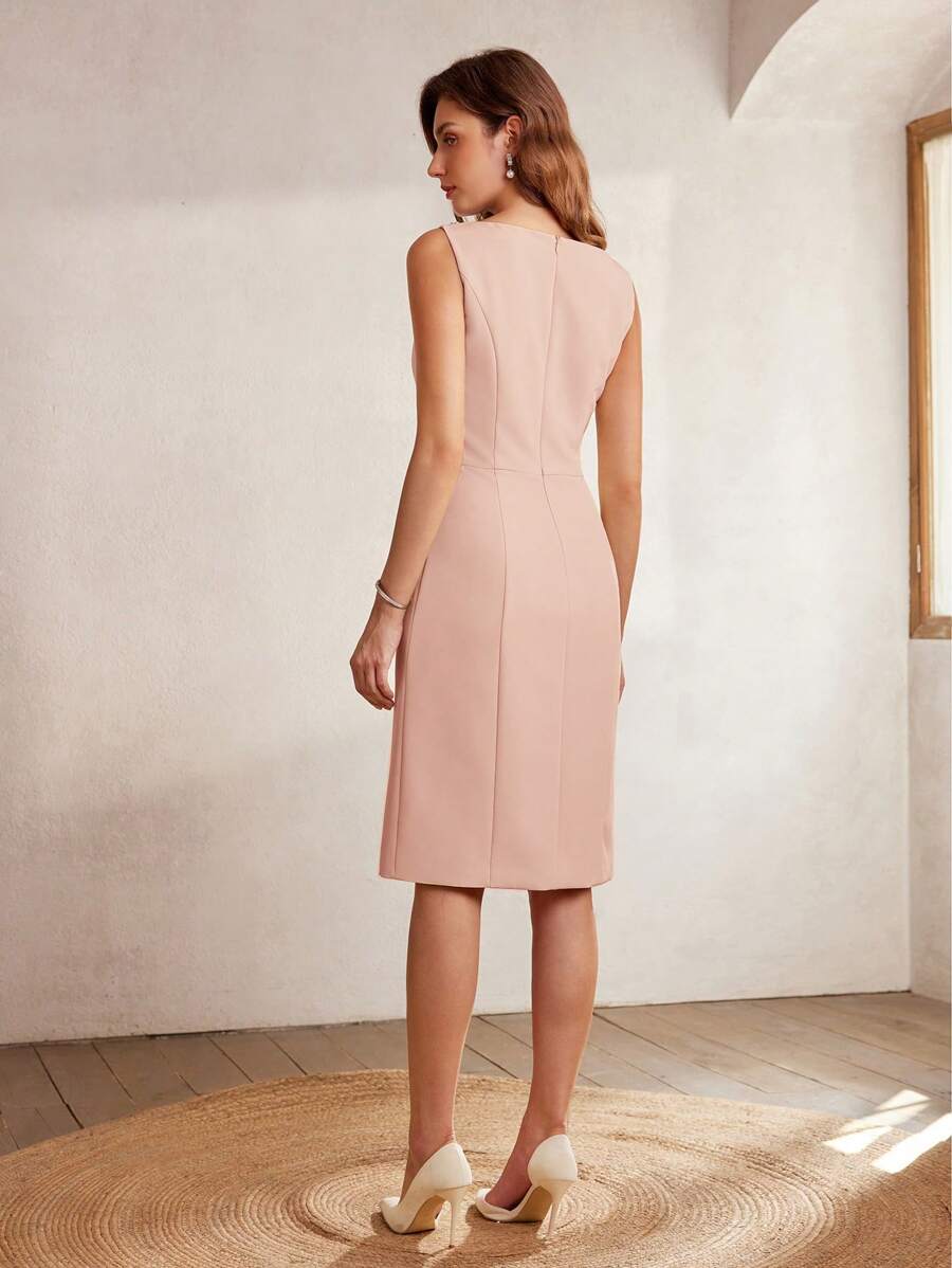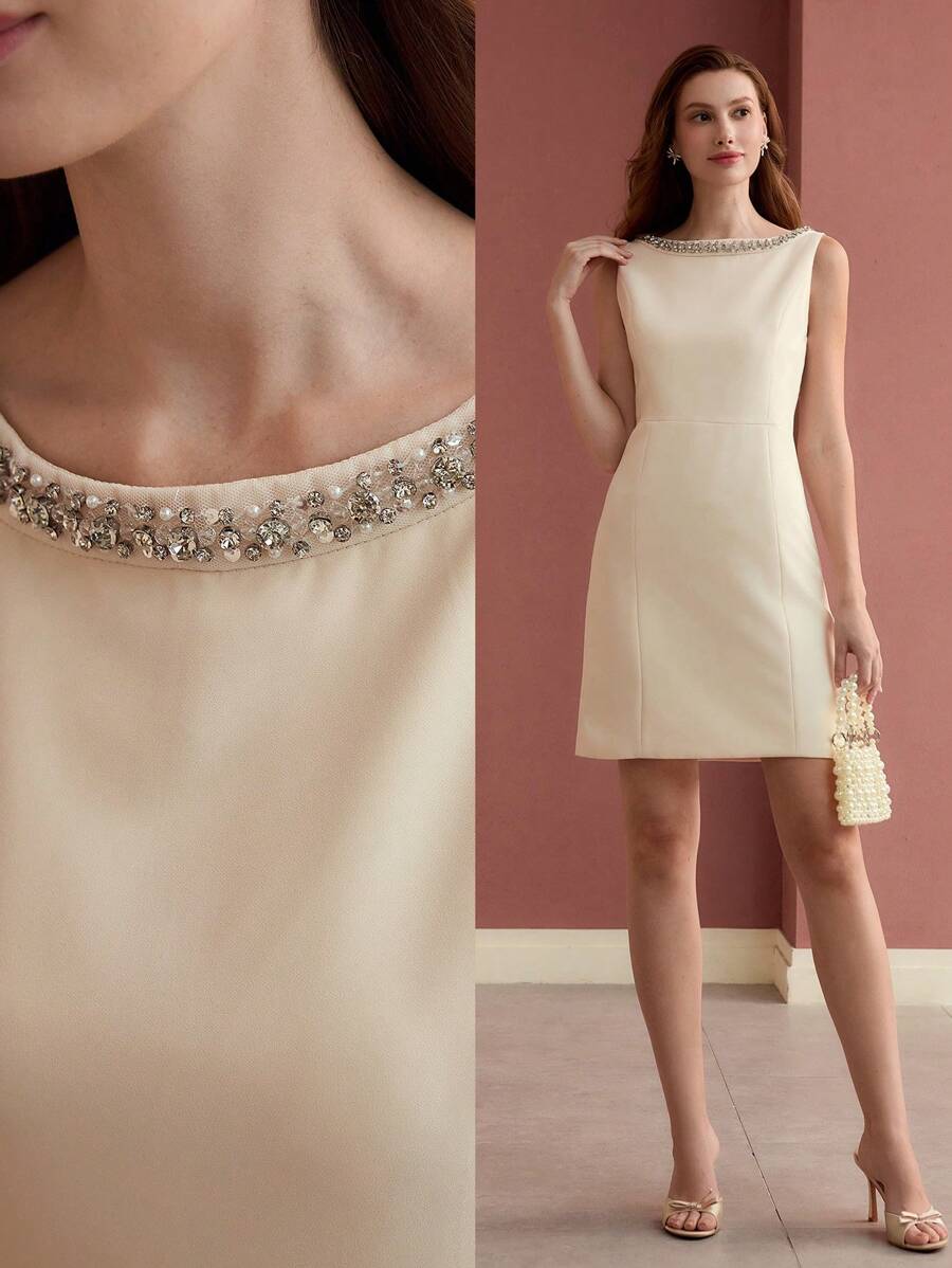 MIU Classy CLASSY RHINESTONE DETAIL SLEEVELESS MIDI DRESS