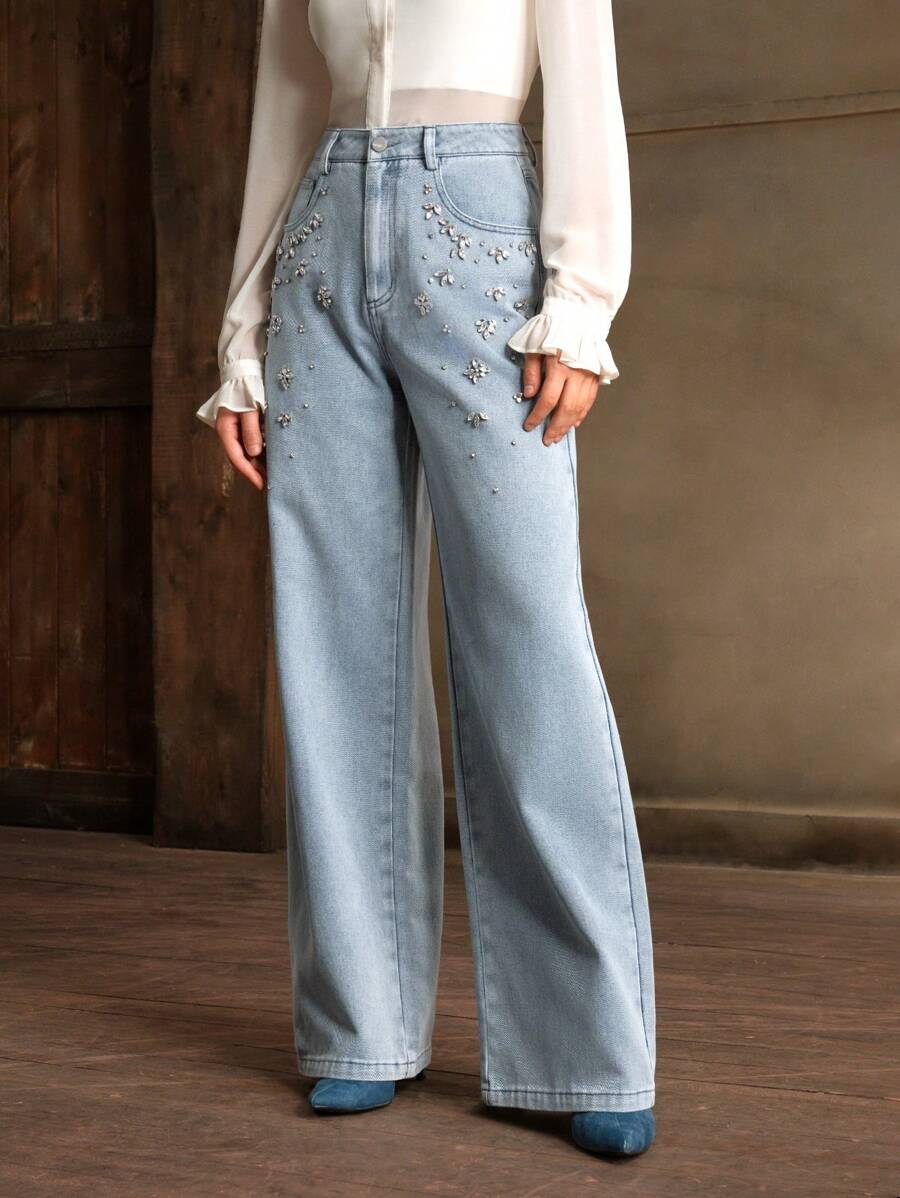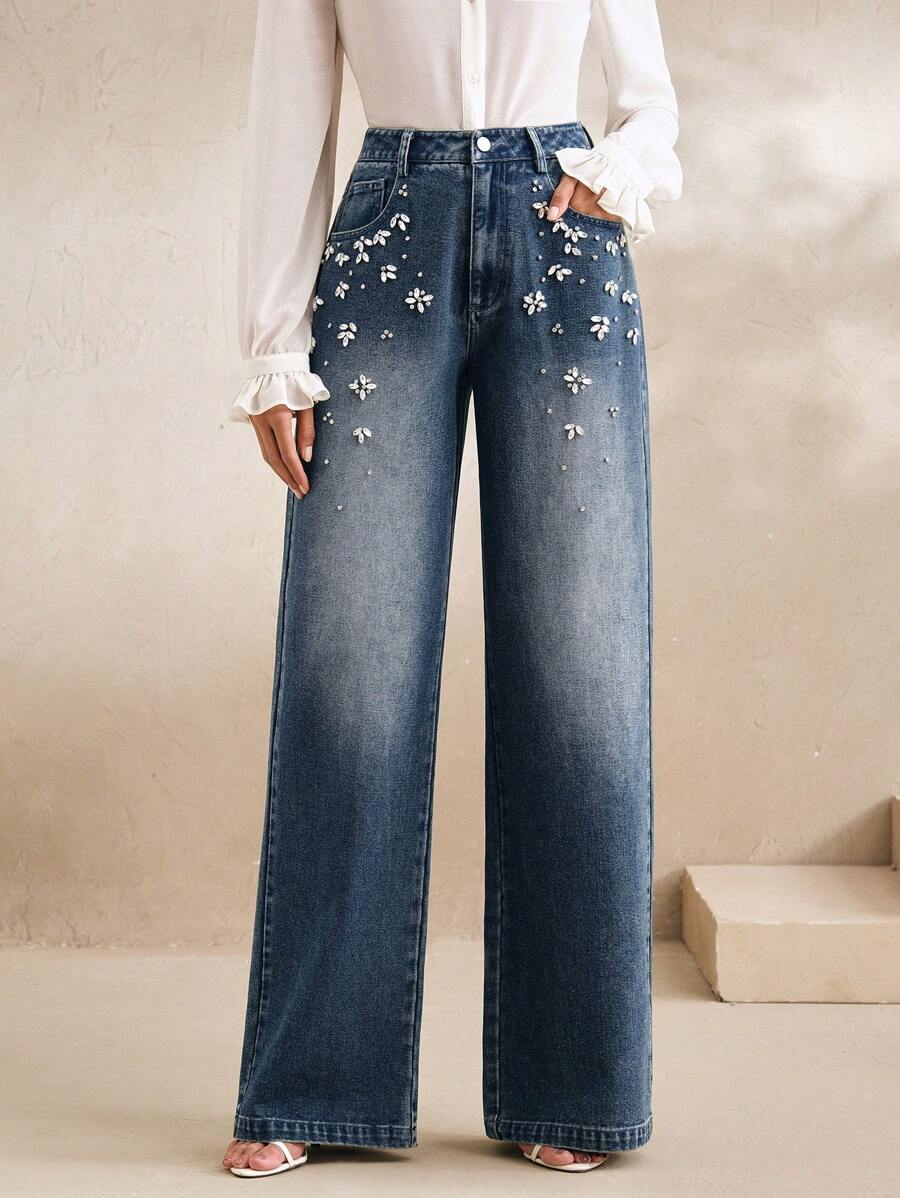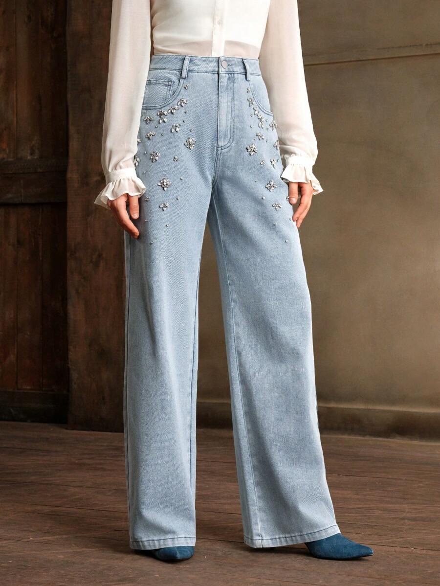MIU Commuting Fashionable Handmade Diamond Christmas Women's Straight Leg Jeans
